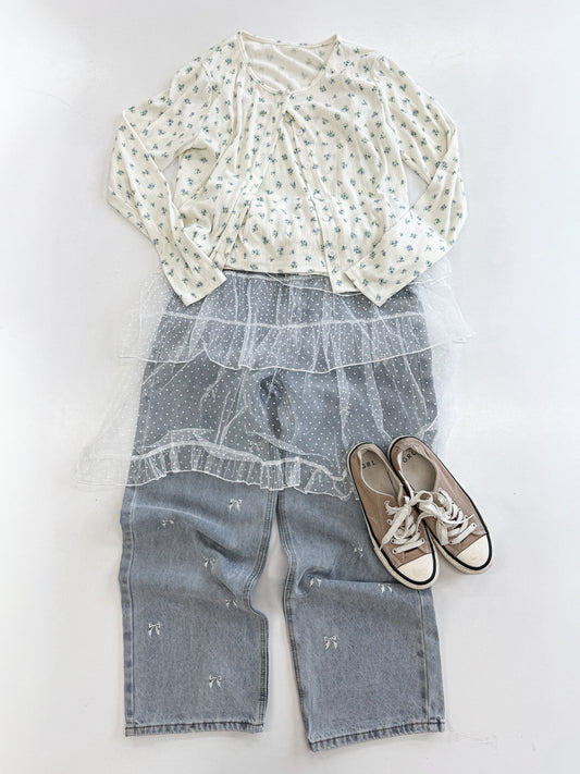 【Official限定価格】リボン刺繡デニムパンツ