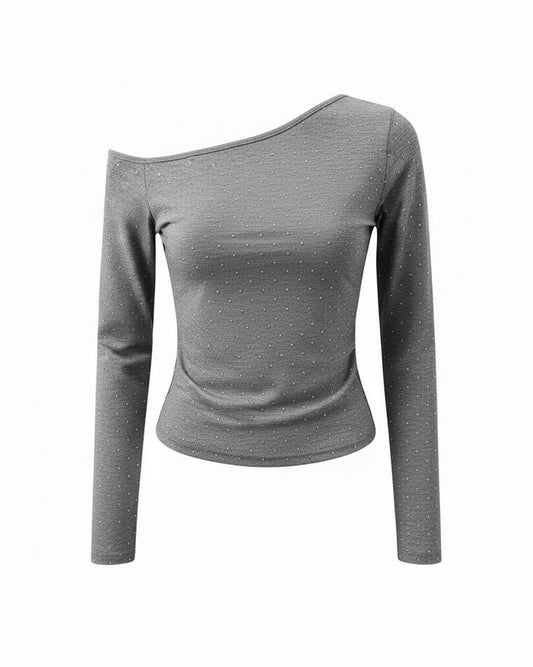 【Official限定価格】ラインストーンアシンメトリーネックT