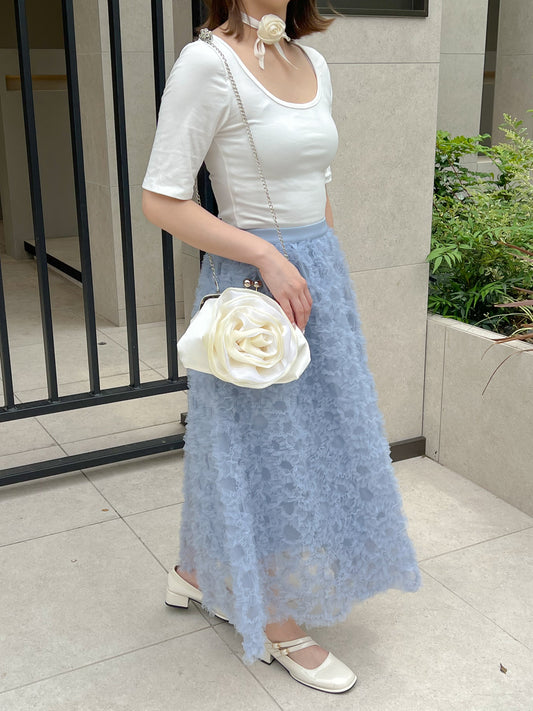 【Official限定価格】ビジュー付きローズ刺繡デニムパンツ