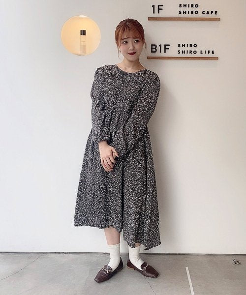Sale花柄シャーリングOP