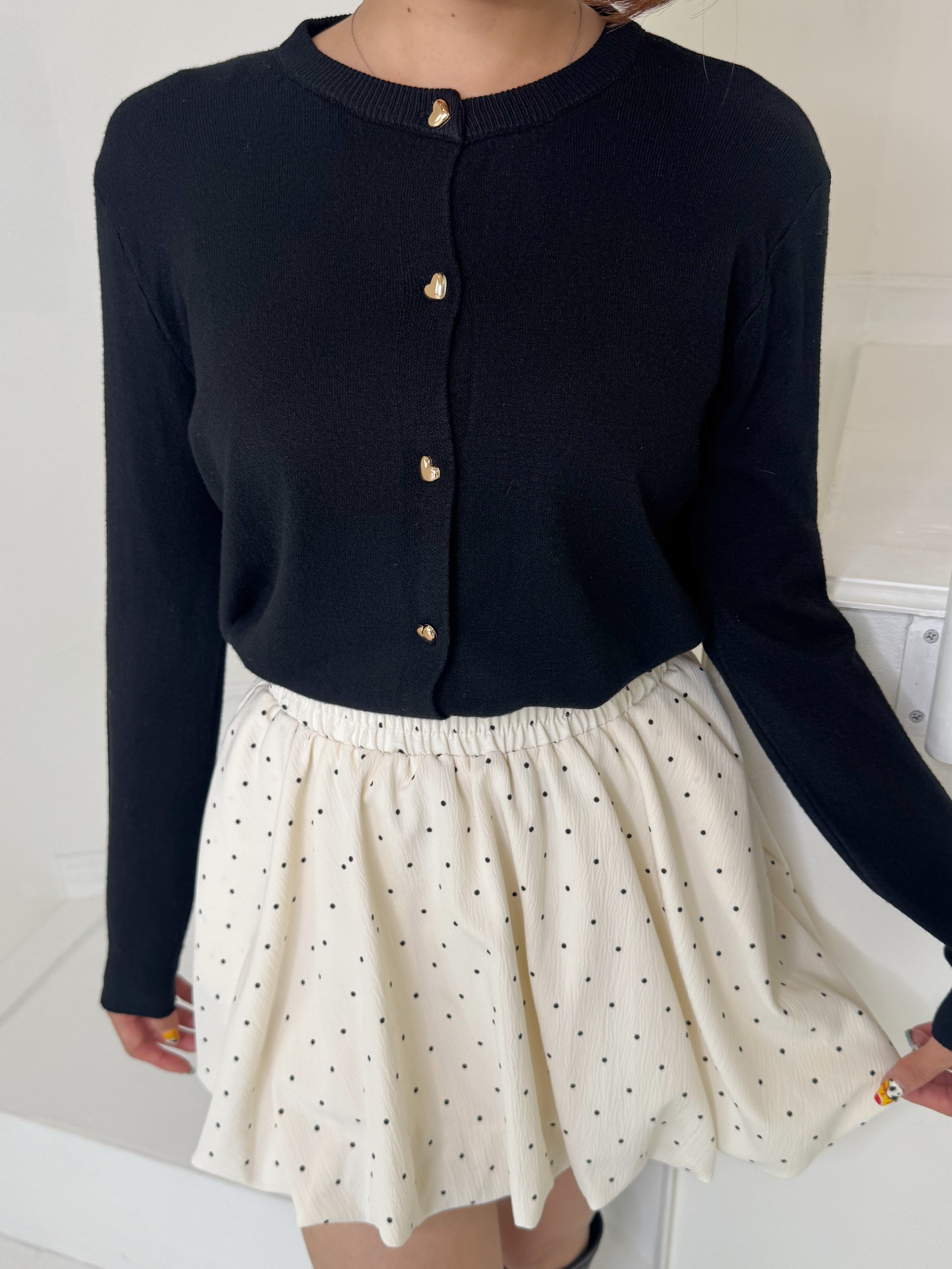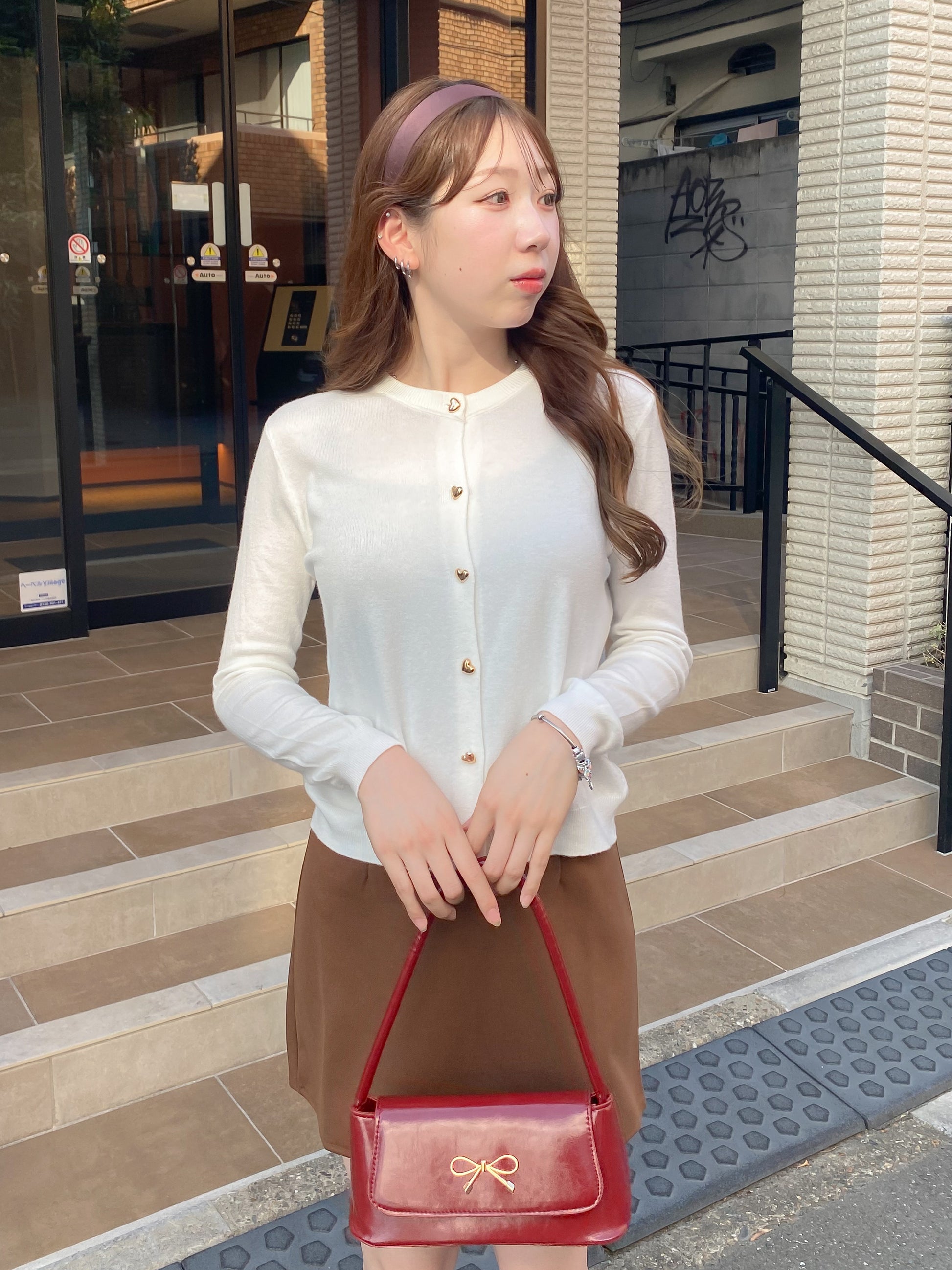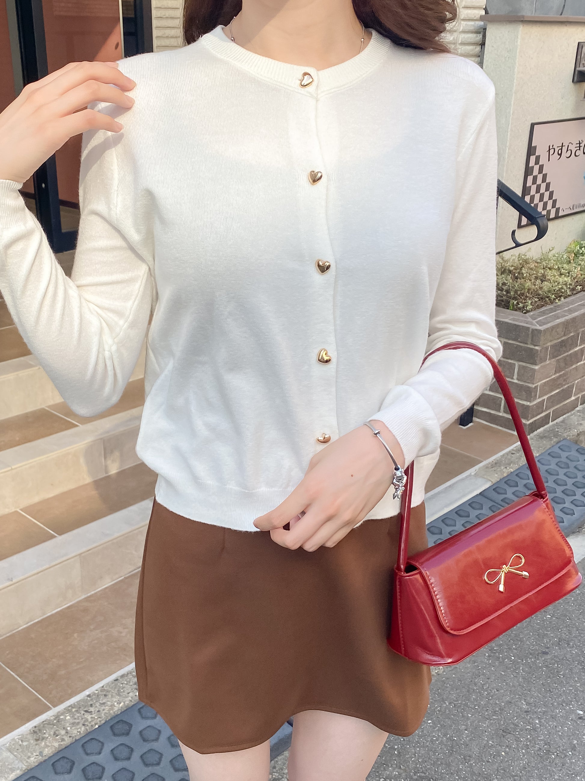 小さめのハートボタンがワンポイントで可愛いデザインです。