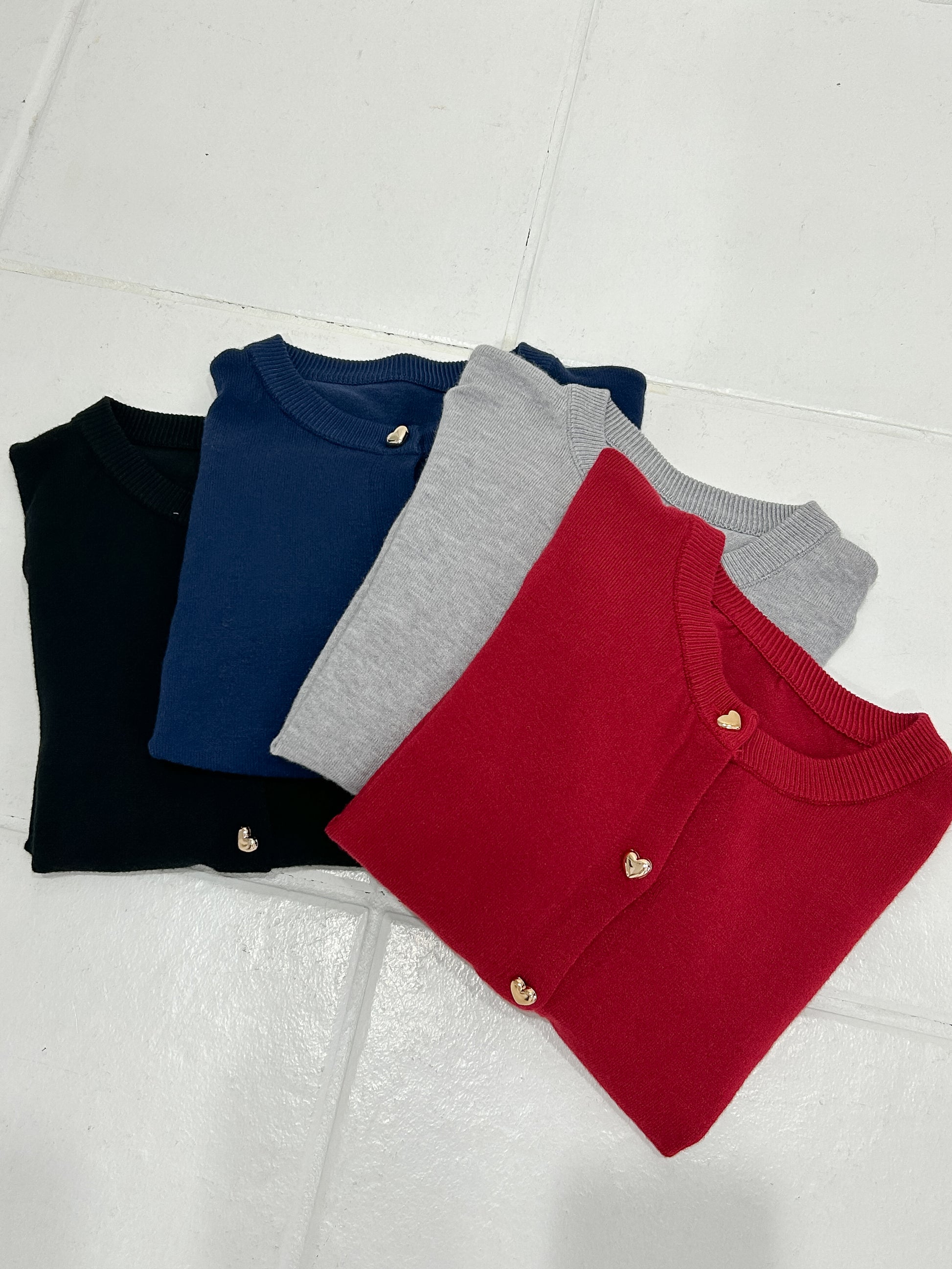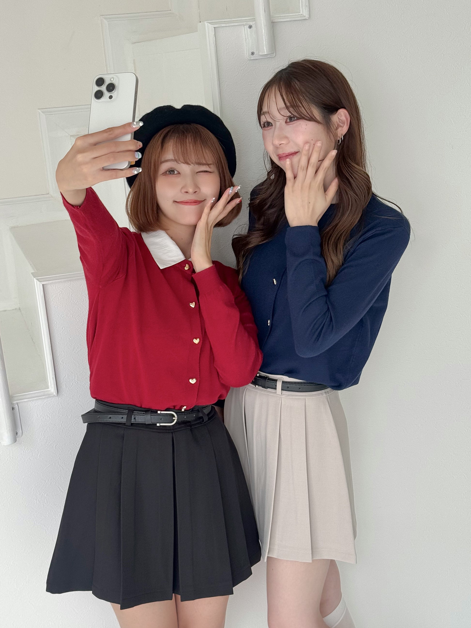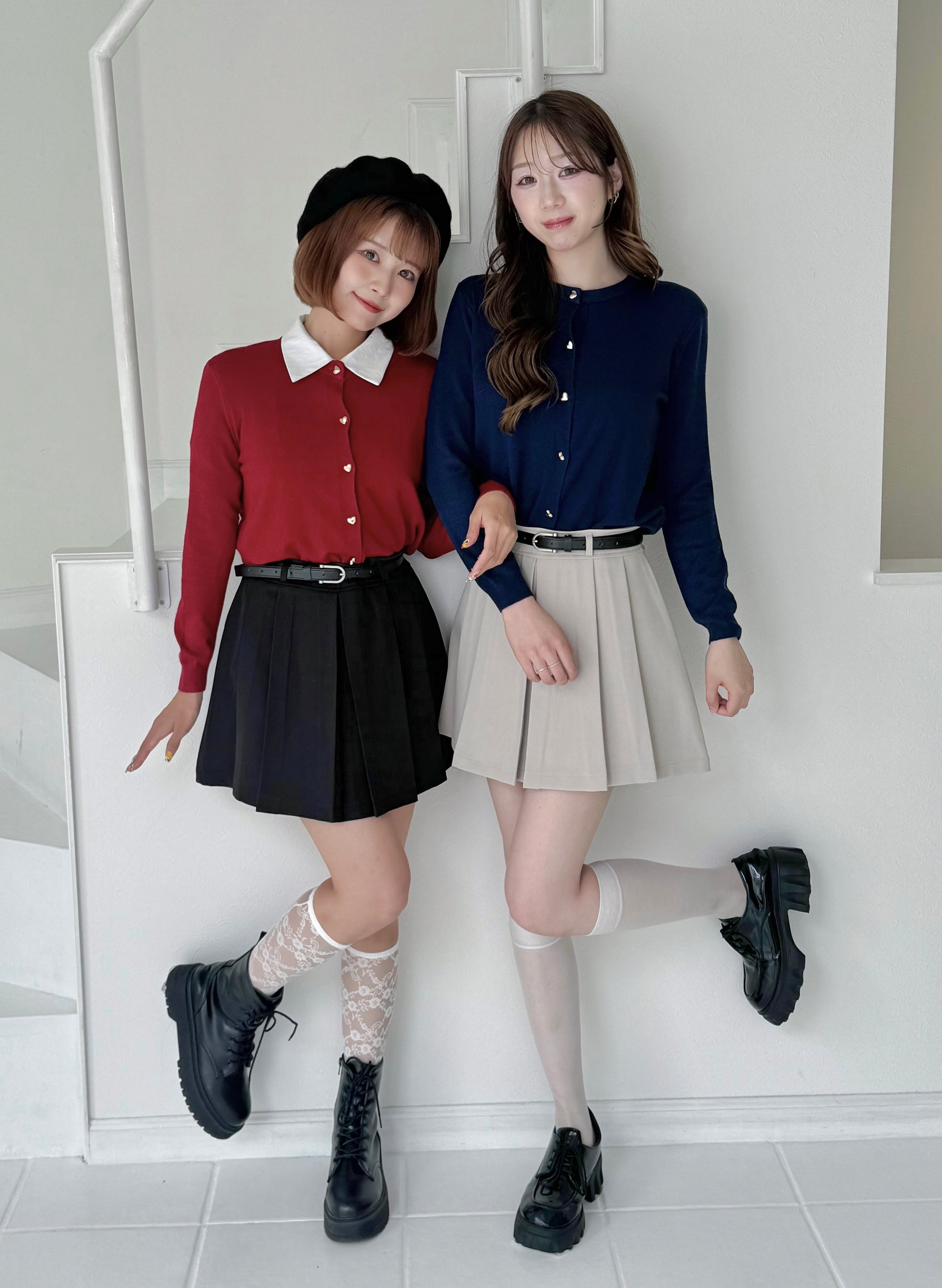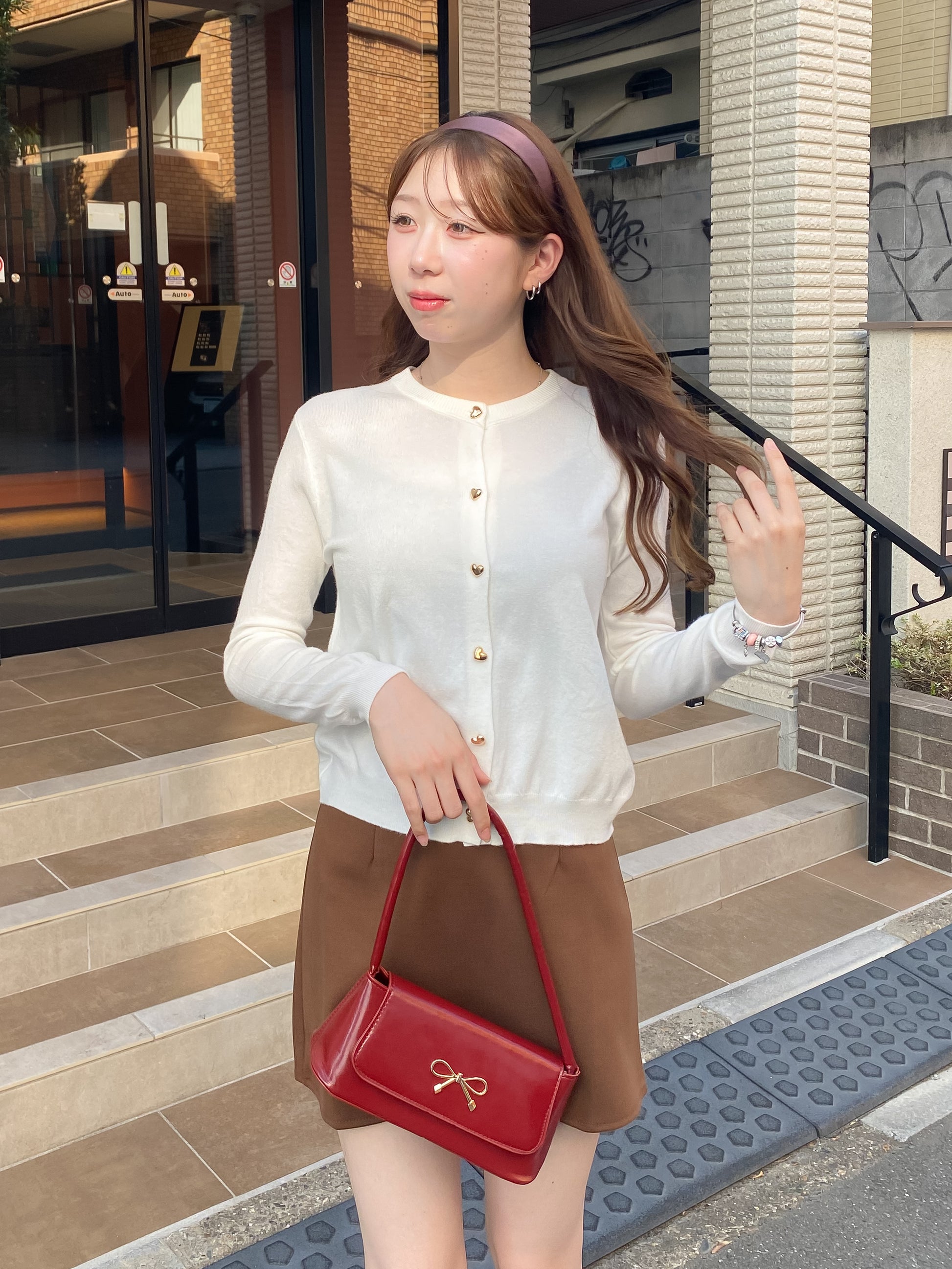 小さめのハートボタンがワンポイントで可愛いデザインです。