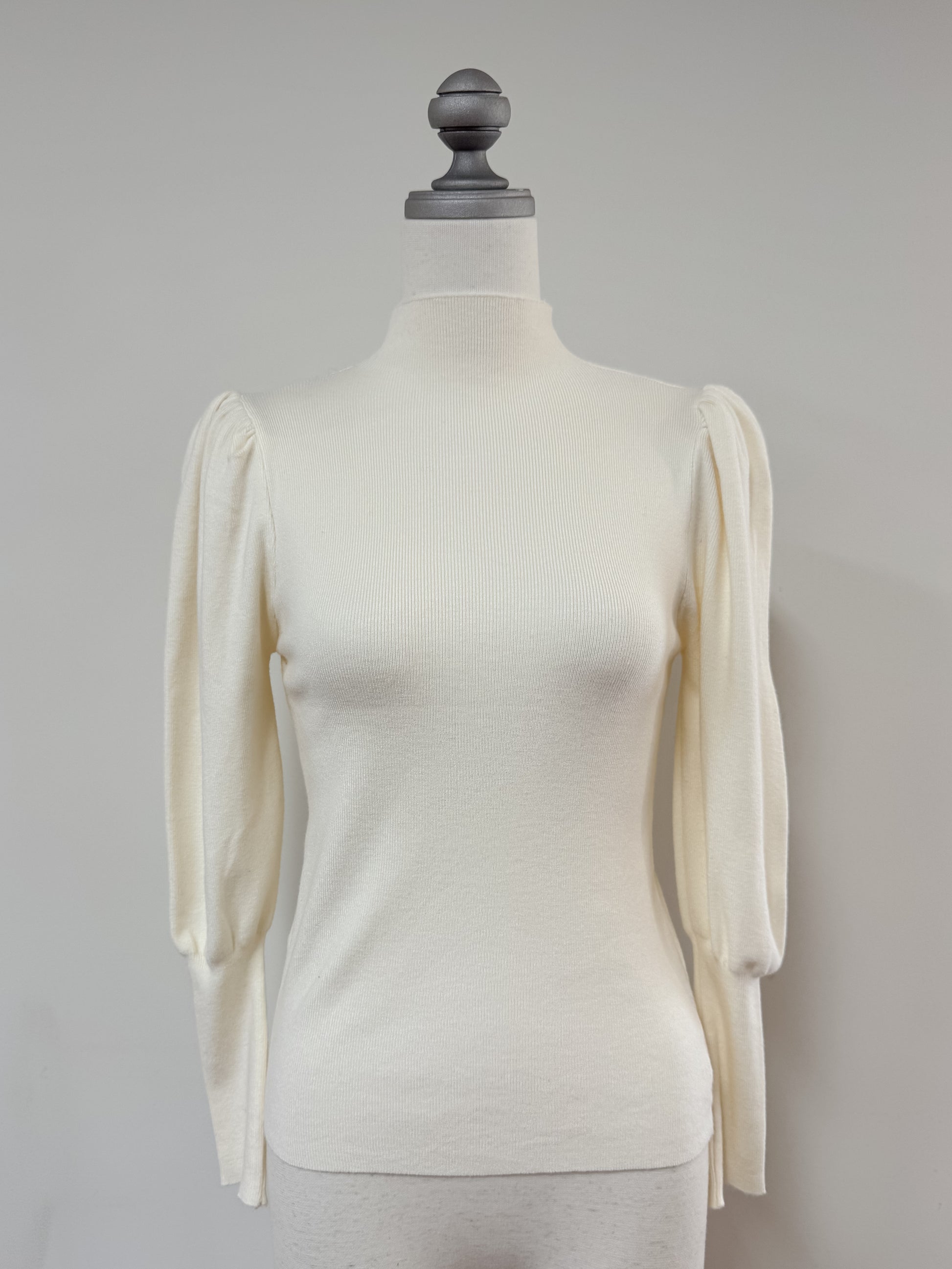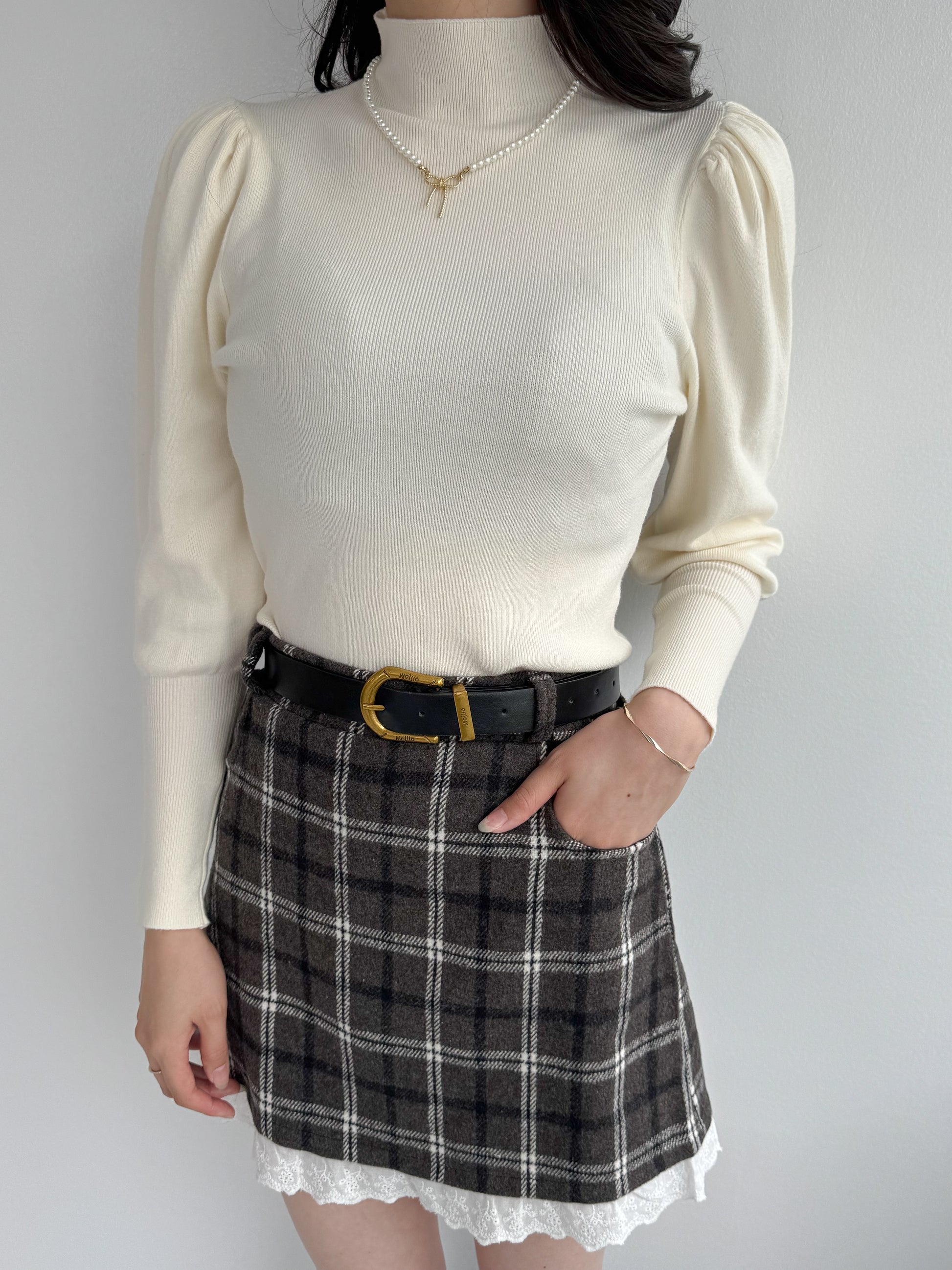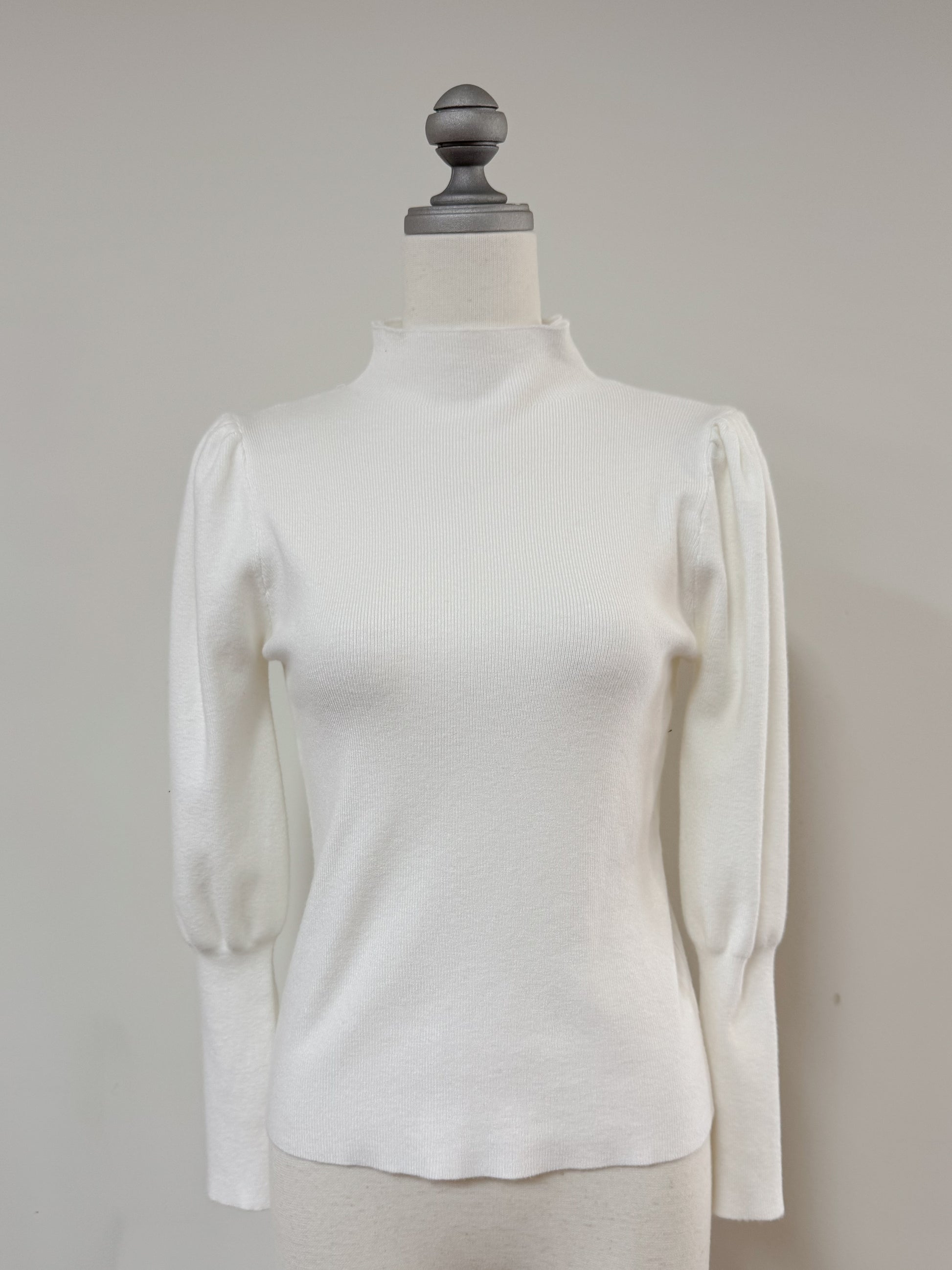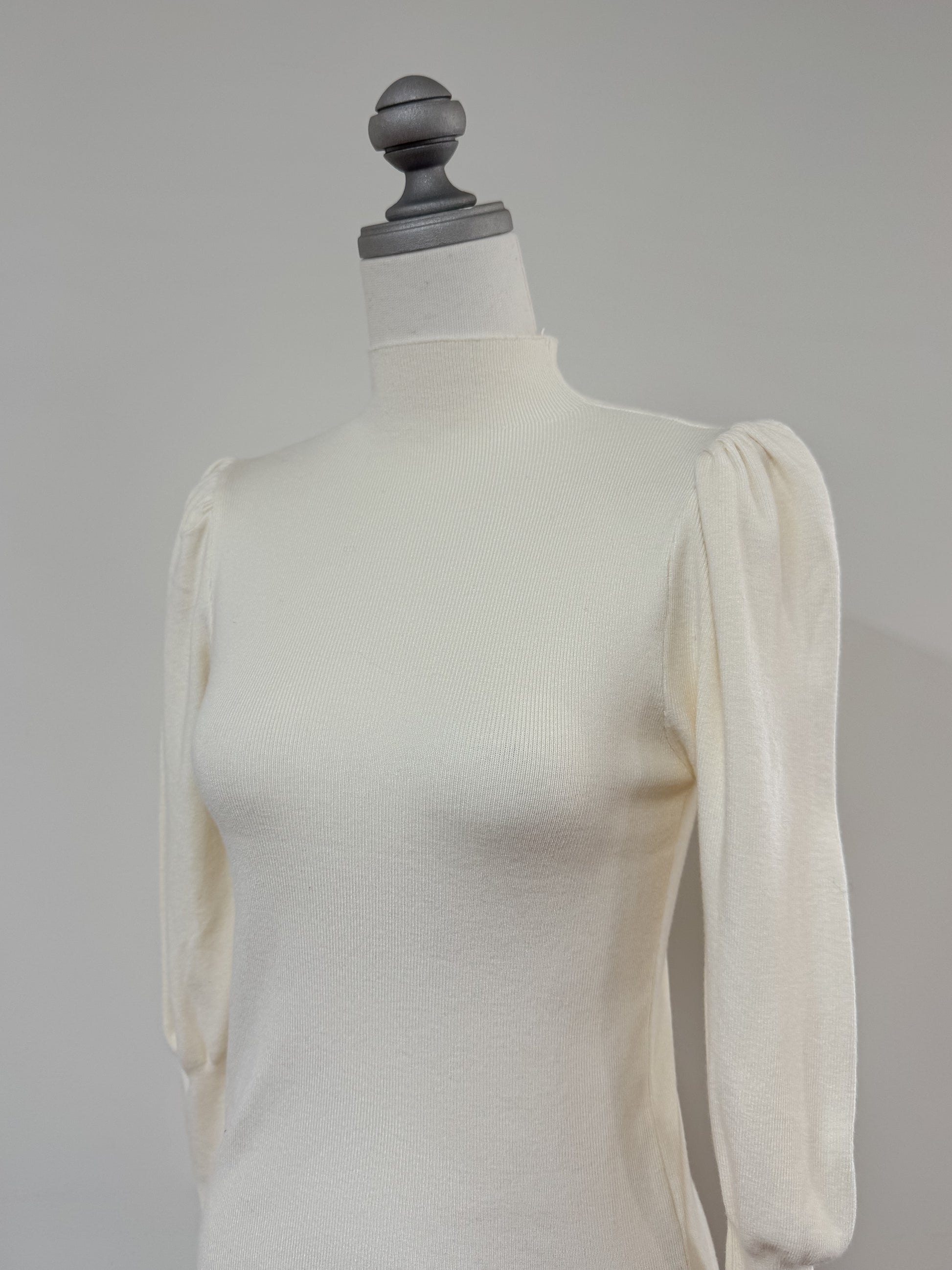 袖口が長めのリブでより袖のパフスリーブがワンポイントに。
