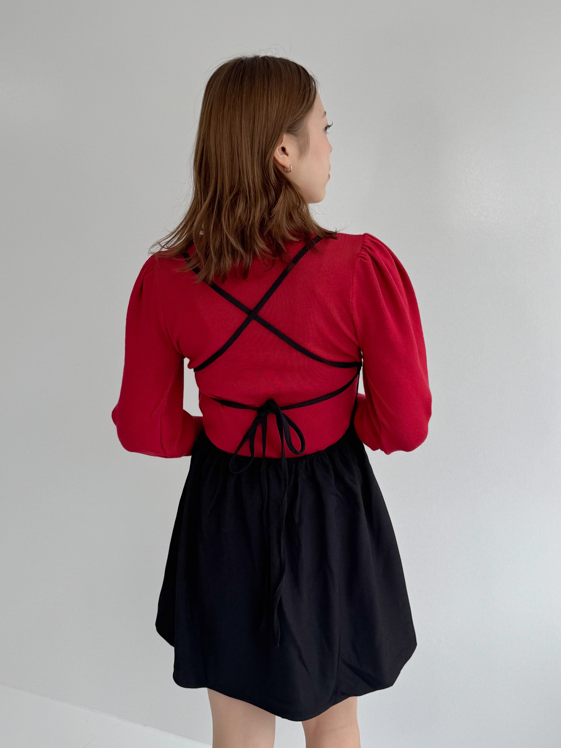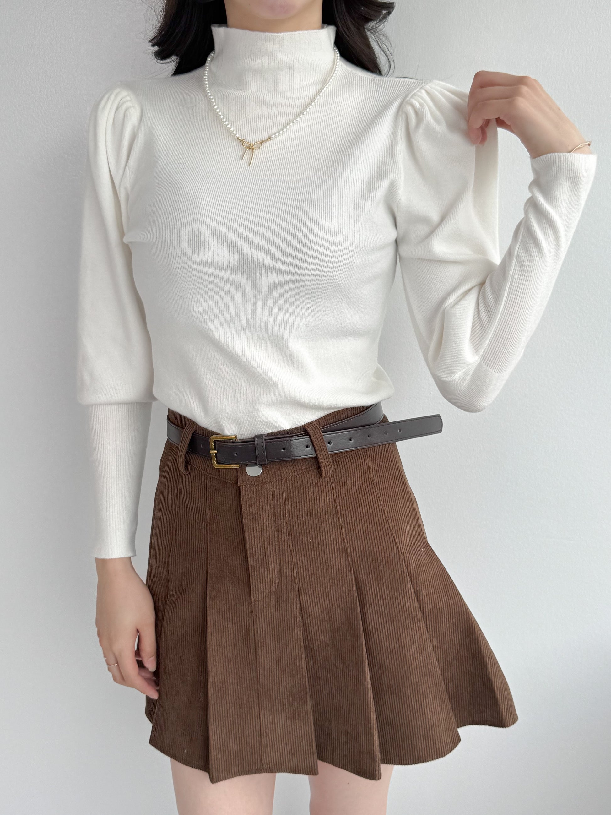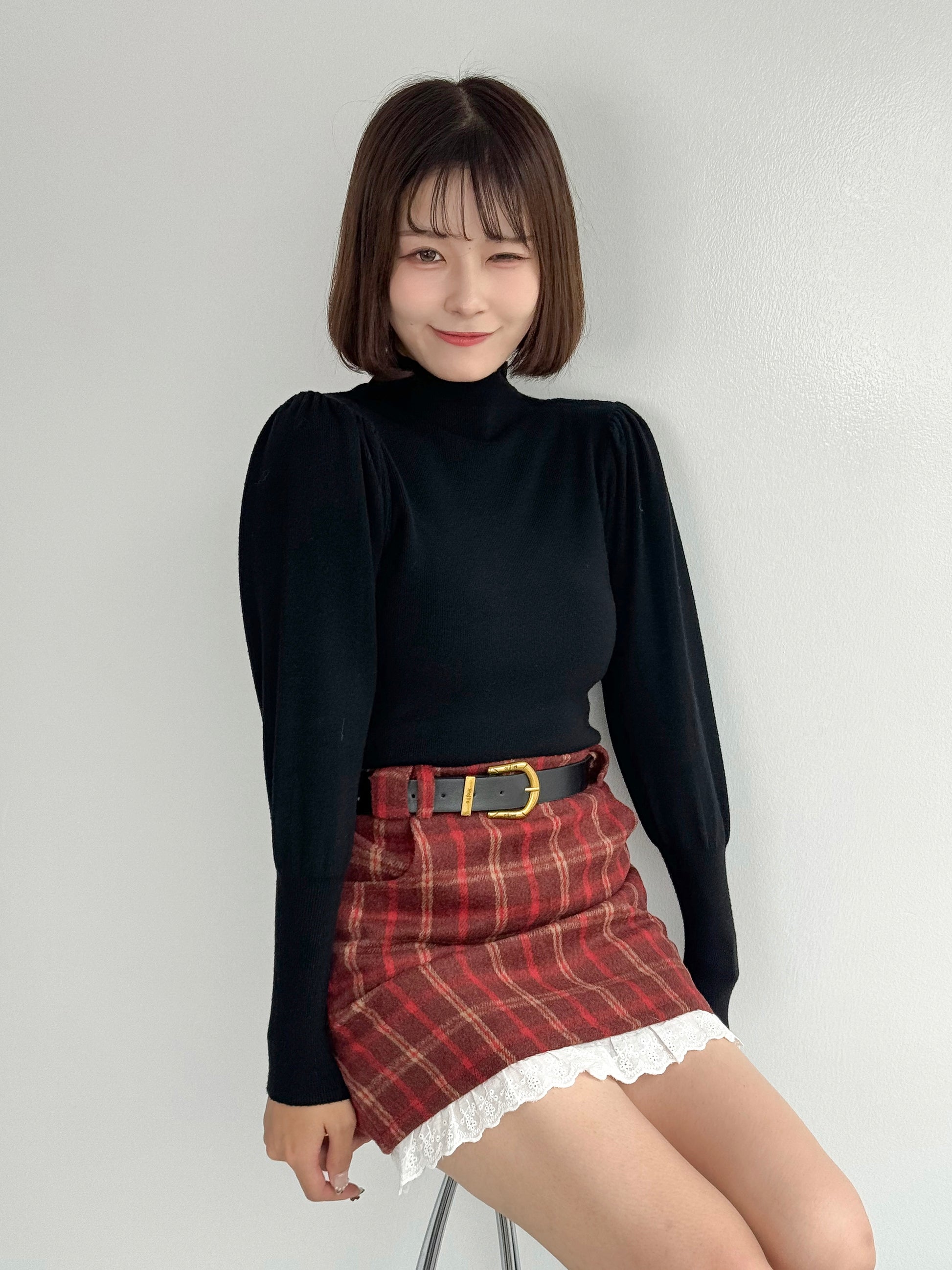 袖口が長めのリブでより袖のパフスリーブがワンポイントに。