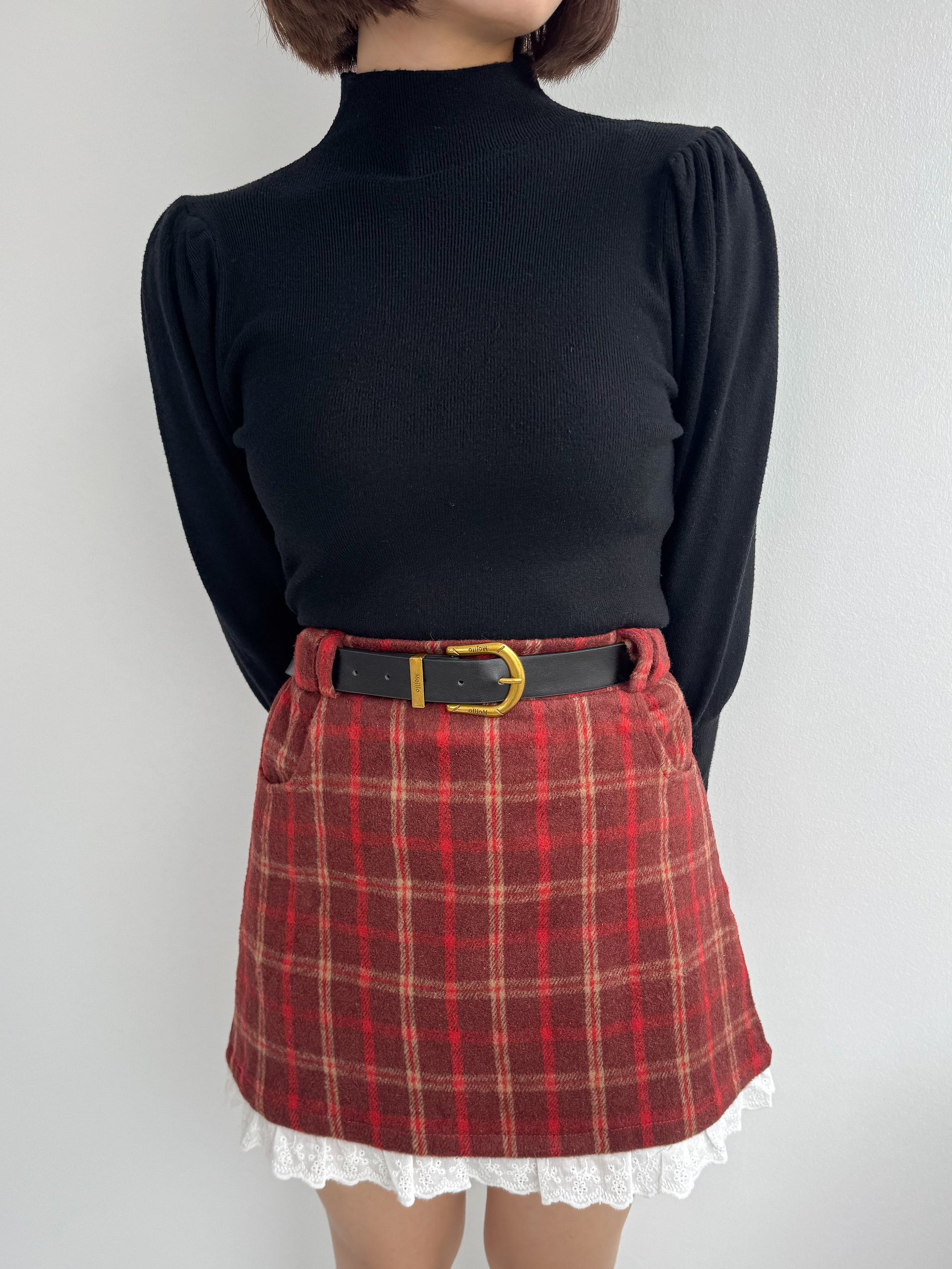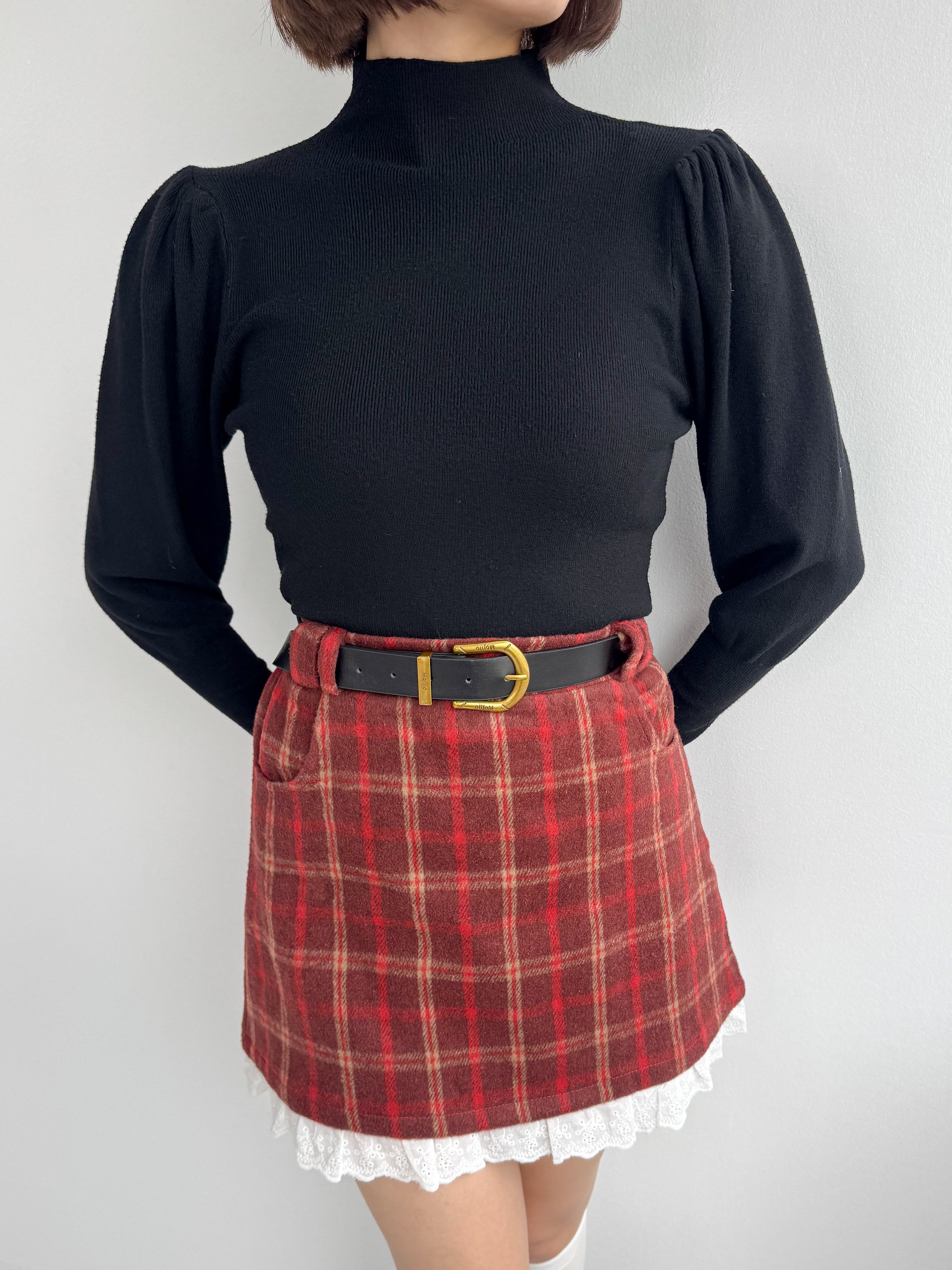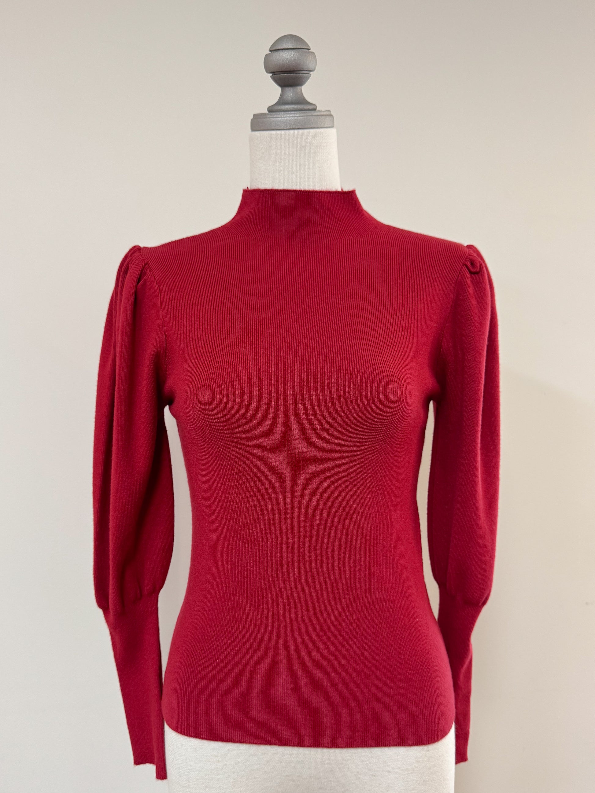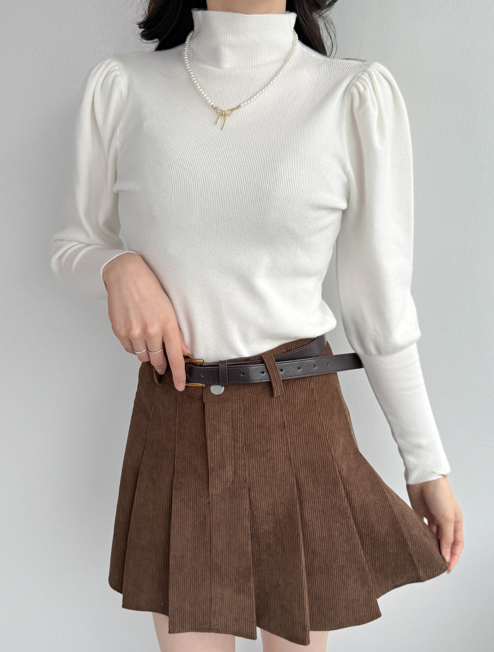 袖口が長めのリブでより袖のパフスリーブがワンポイントに。