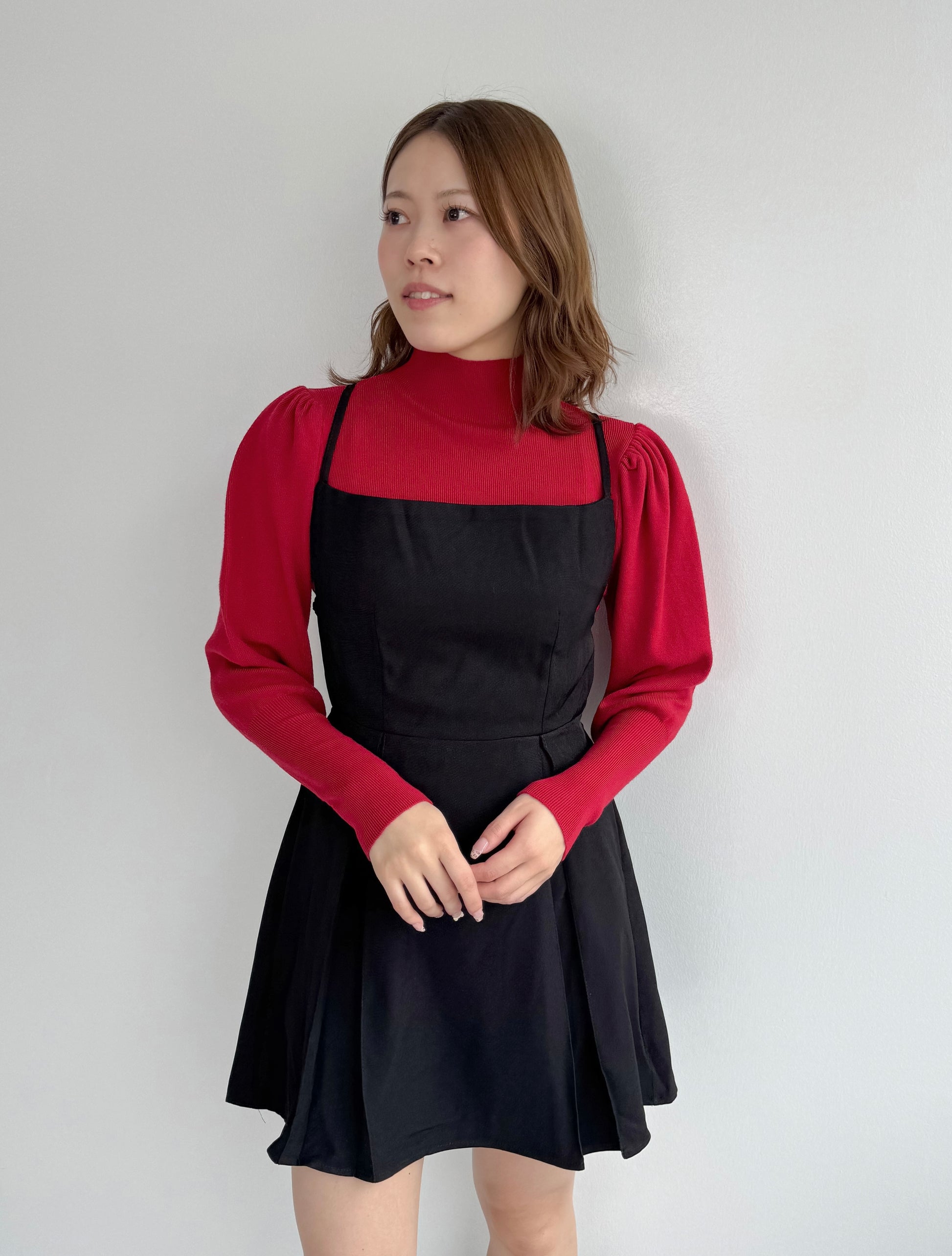 ボトルネックでレイヤーした時にもコーディネートの差し色や