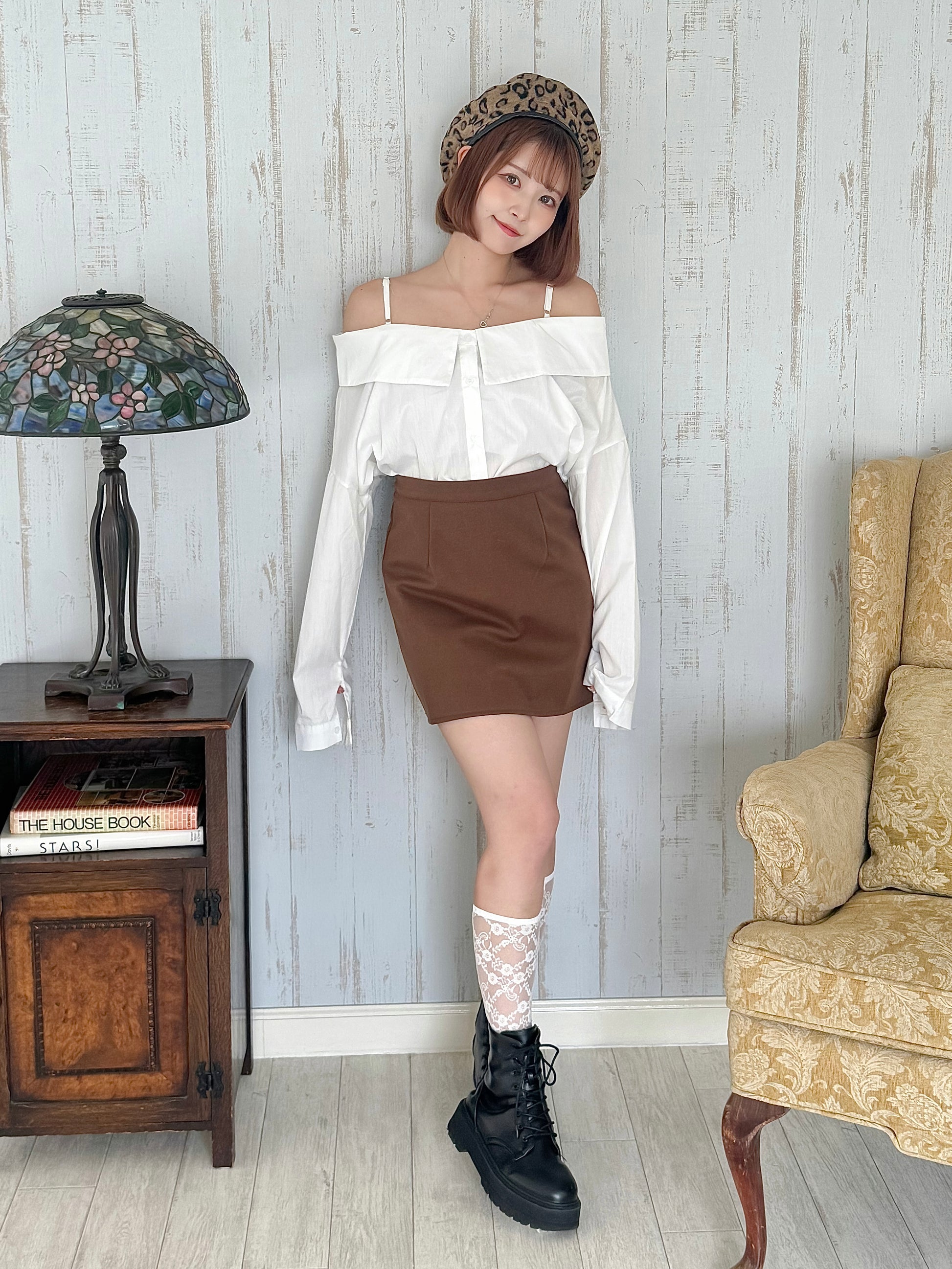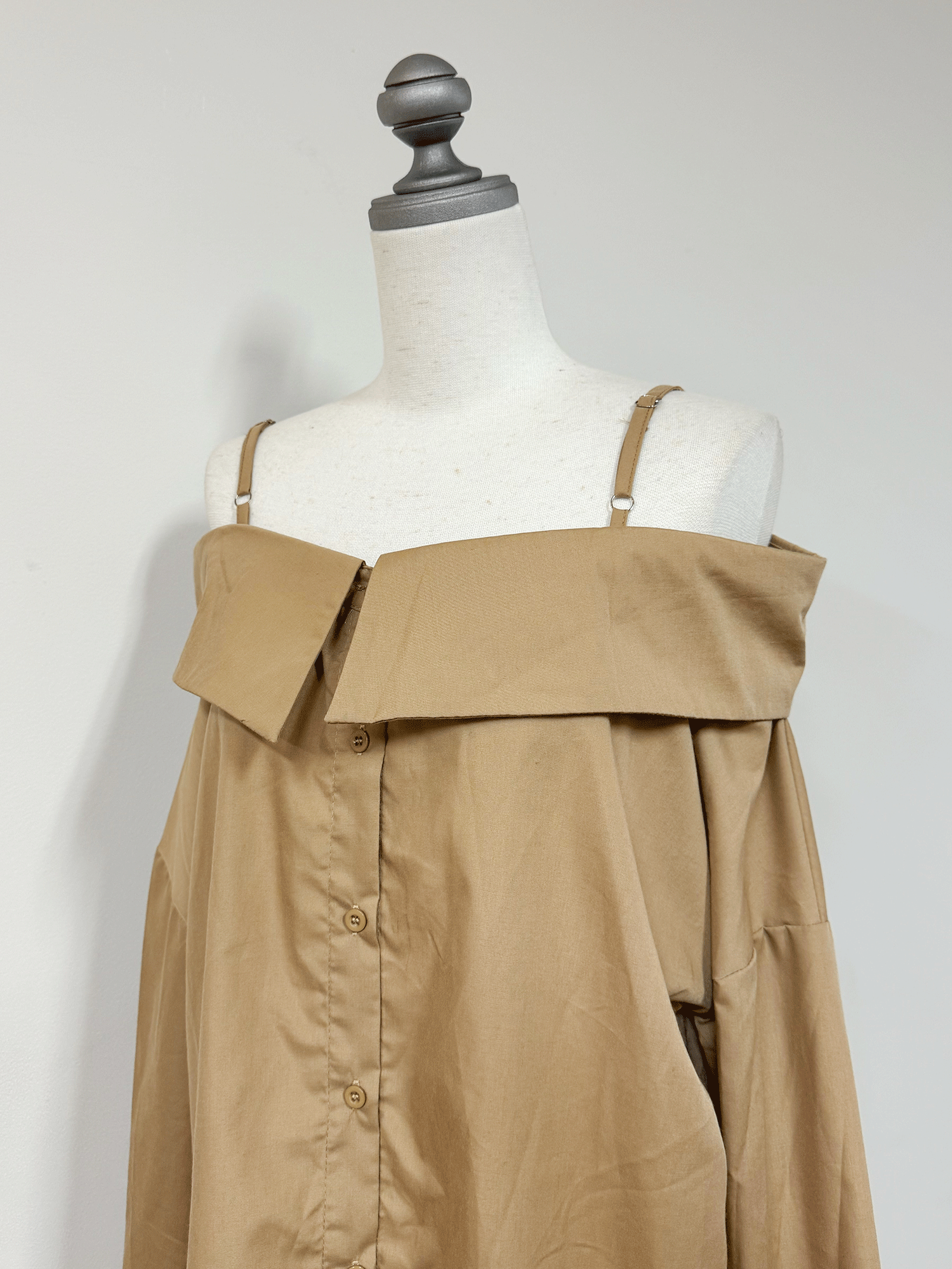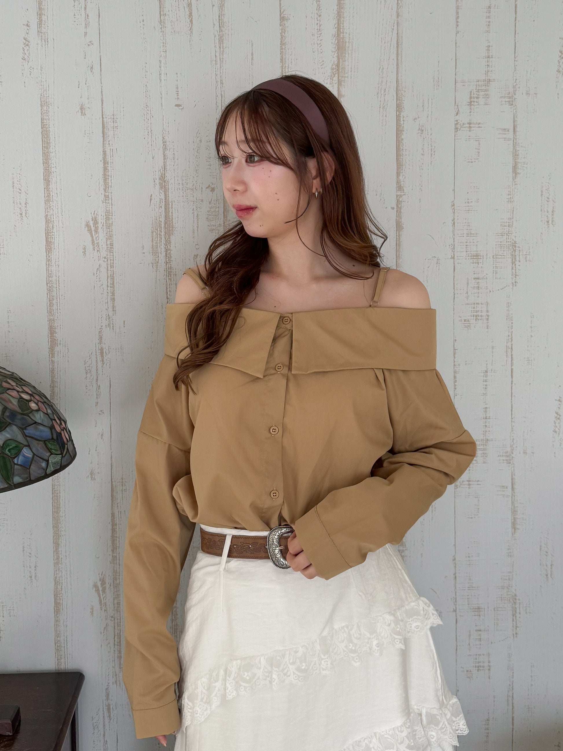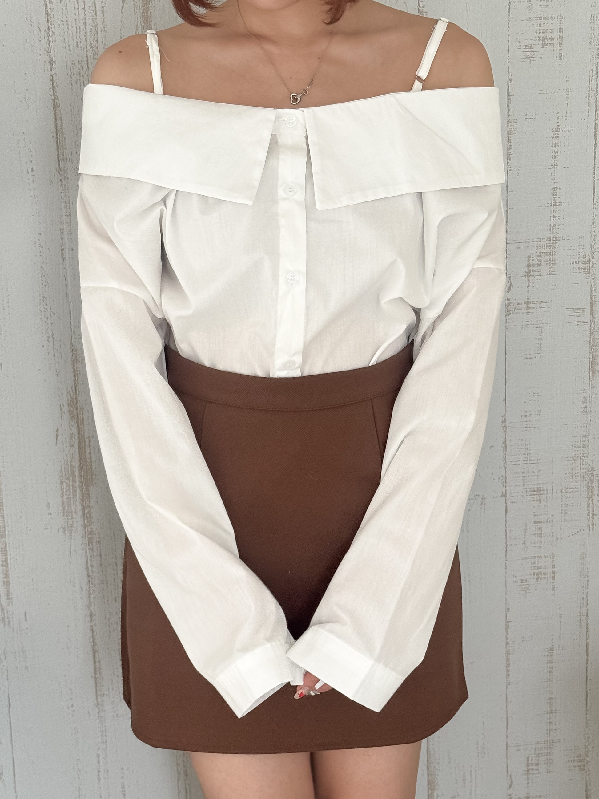大きく空いた首元はワンショルやオフショルとしても着れる。