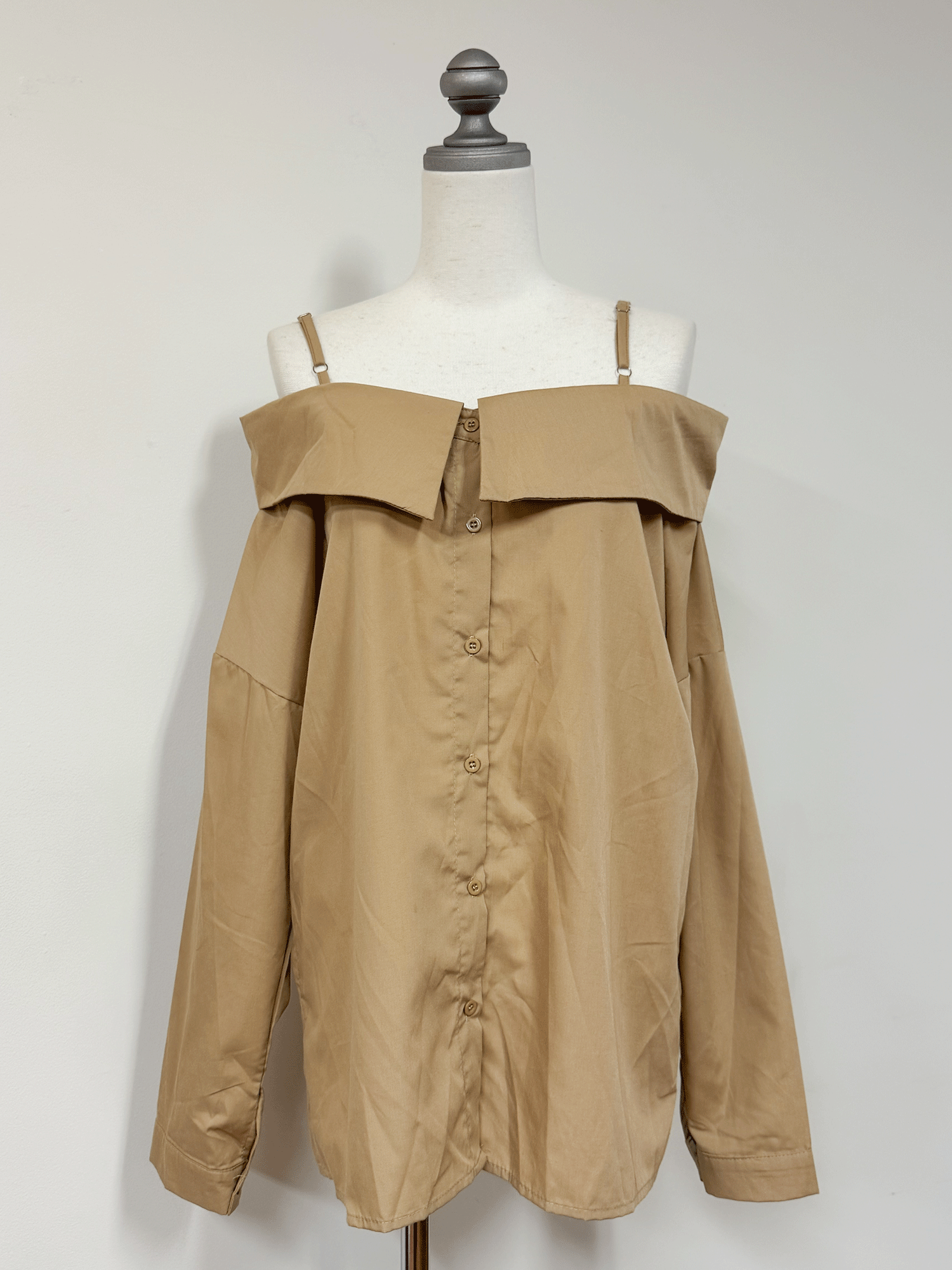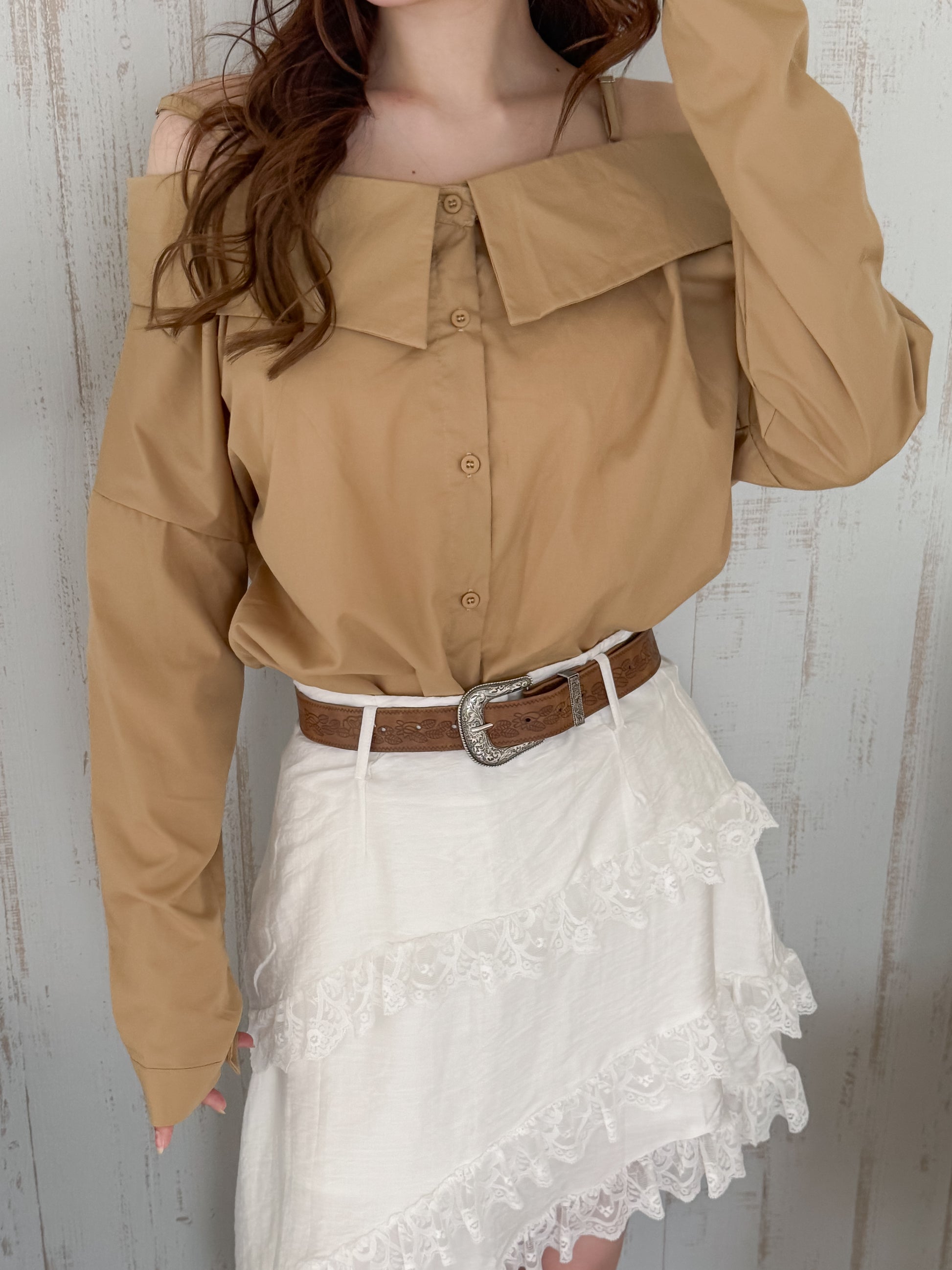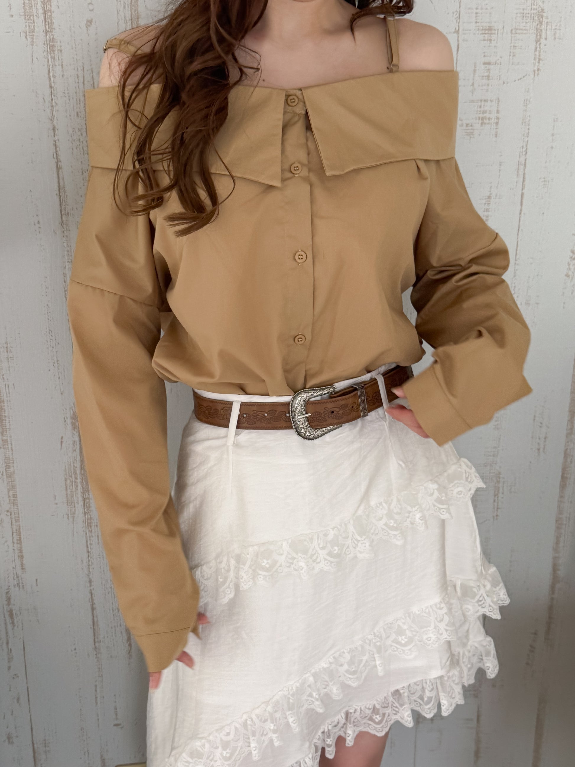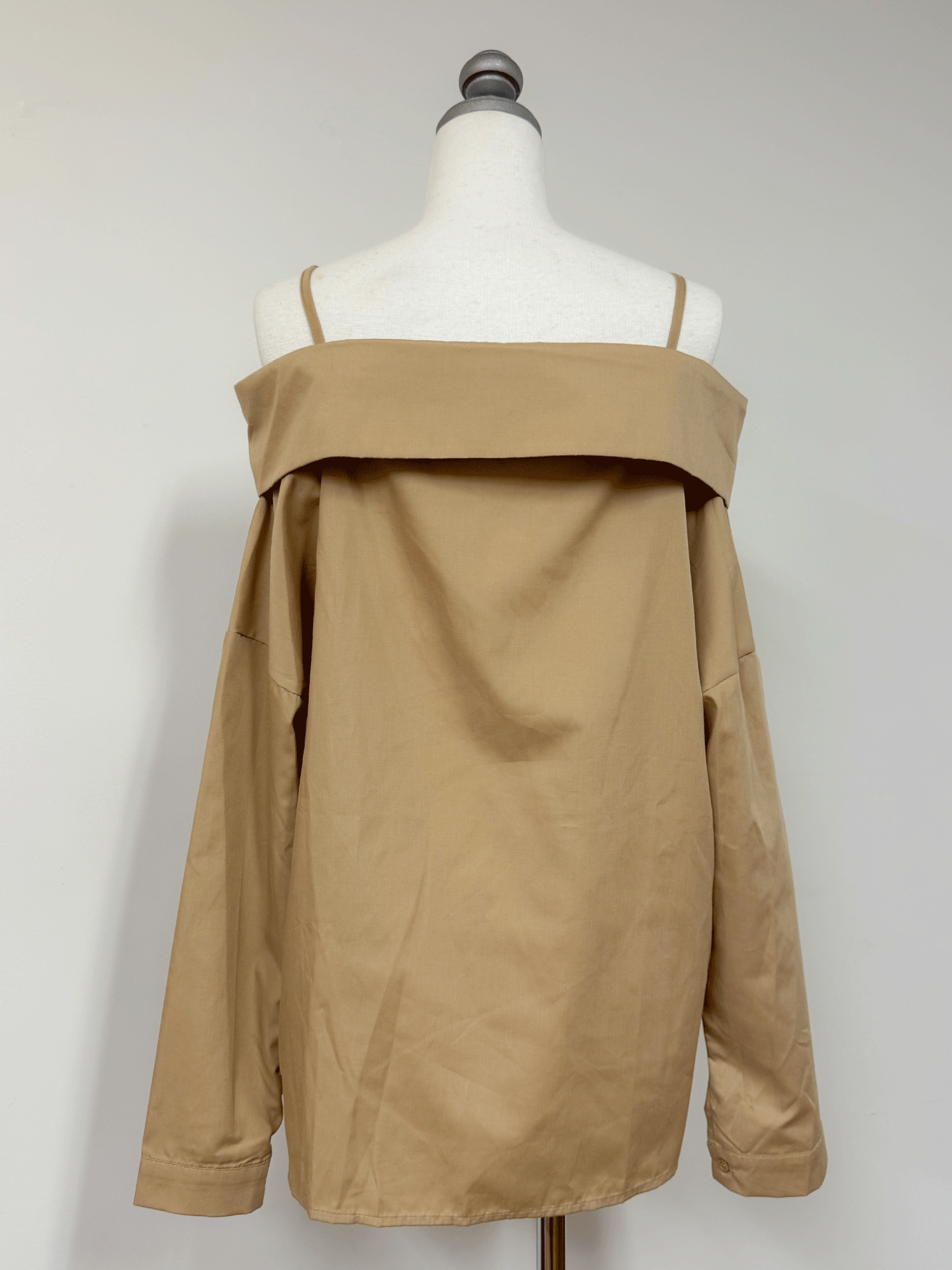 大きく空いた首元はワンショルやオフショルとしても着れる。