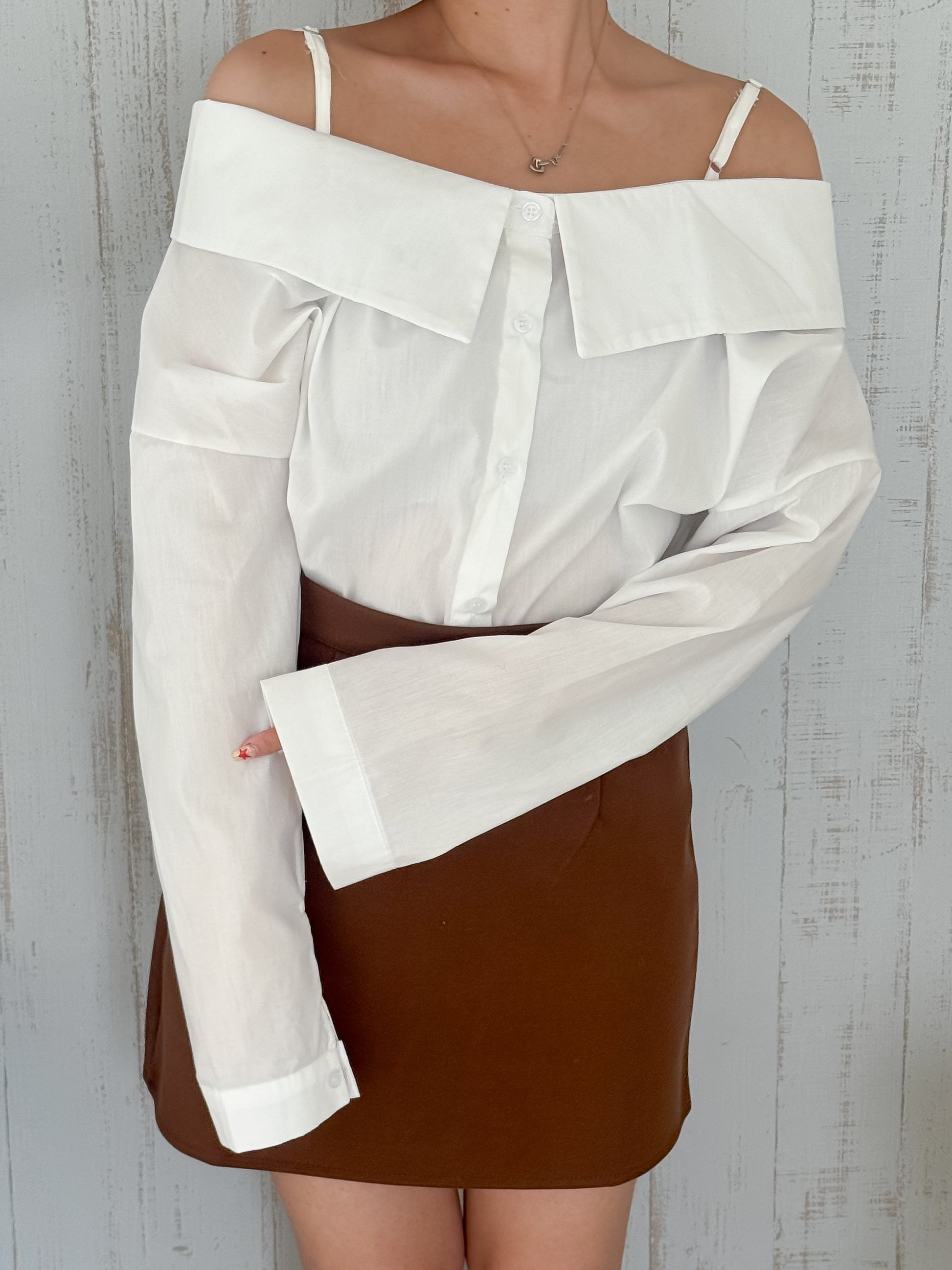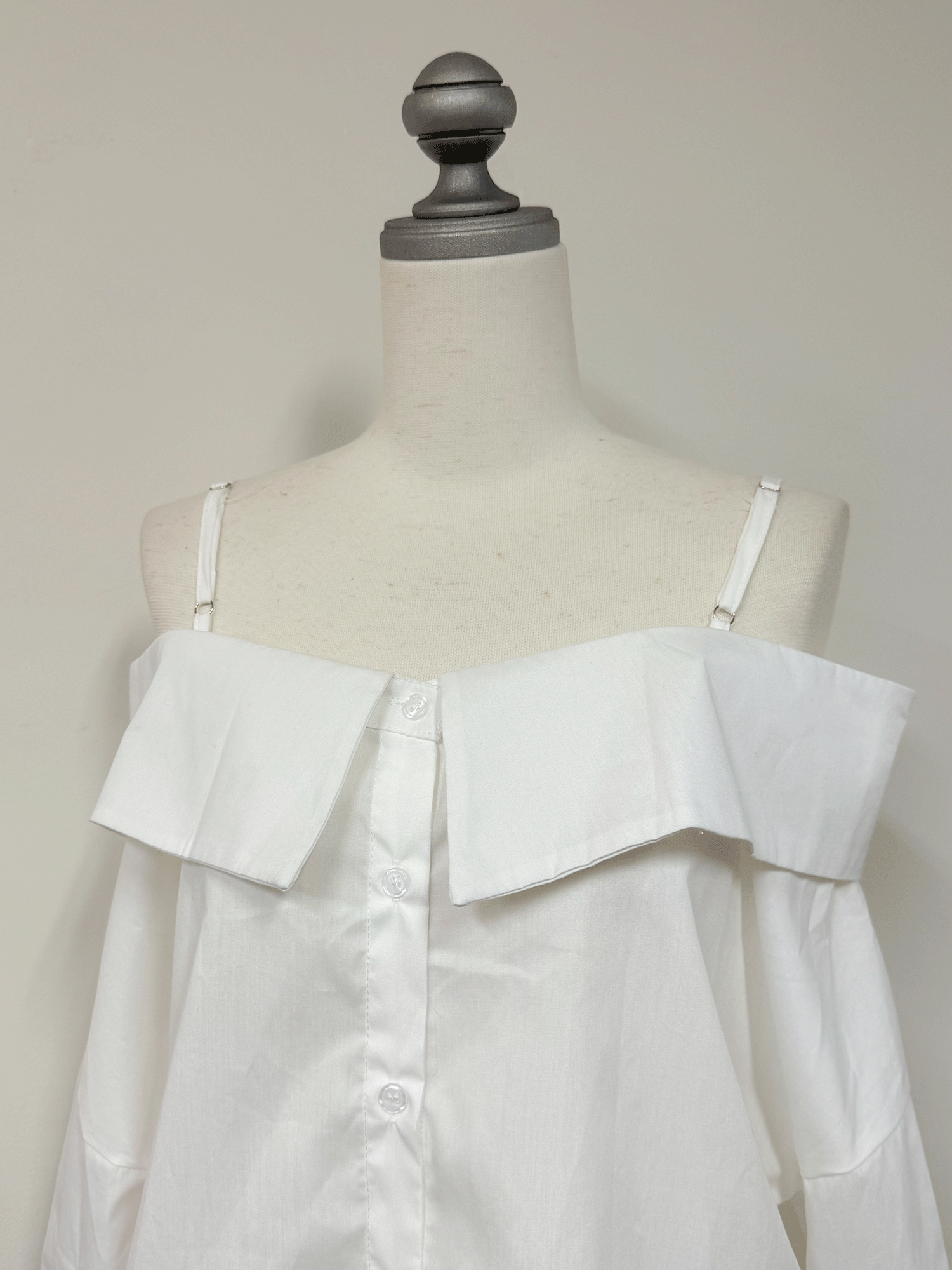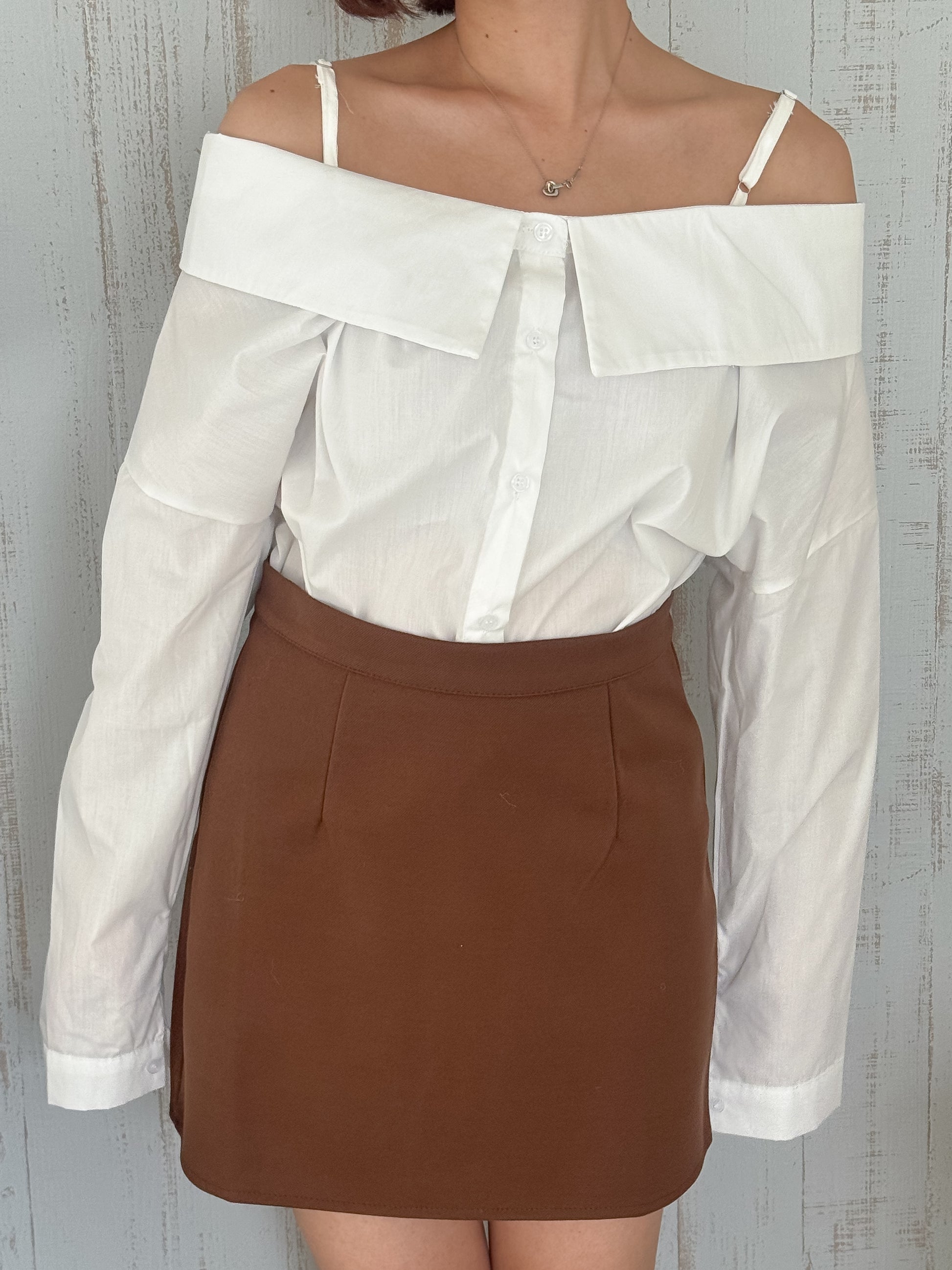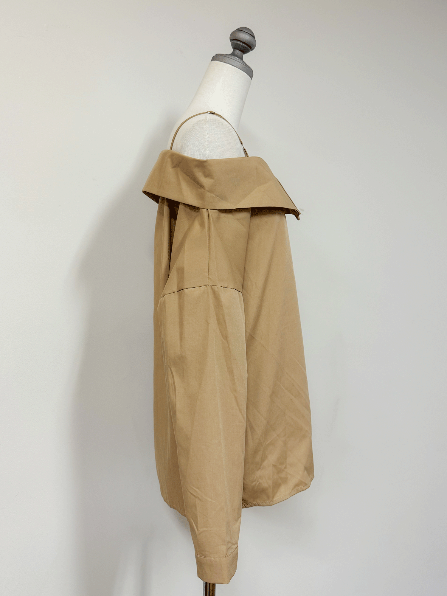 大きく空いた首元はワンショルやオフショルとしても着れる。