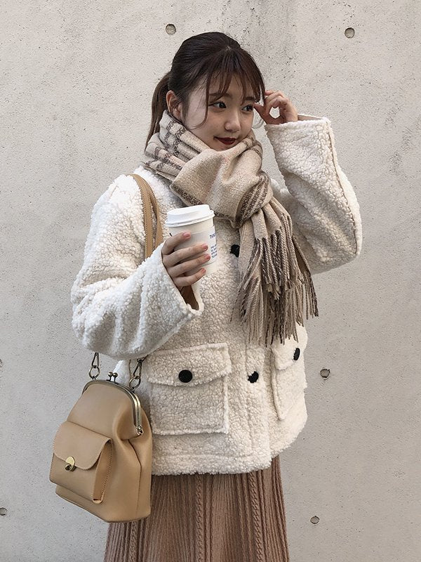 シンプルになりがちな冬のコーデに可愛いチェック柄を取り入れて華やかなコーディネートに♪
