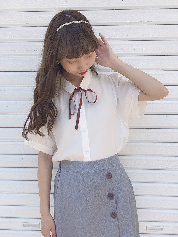 ボウタイ半袖ブラウス