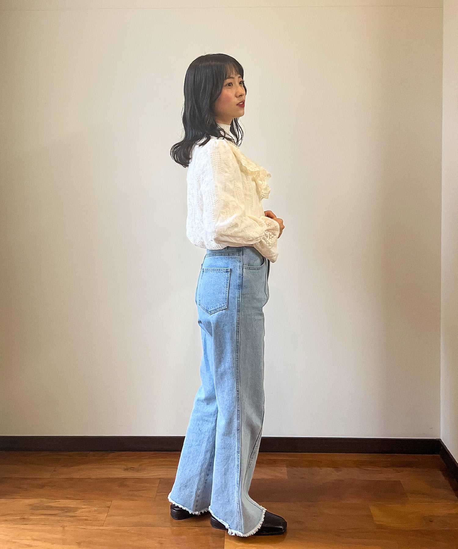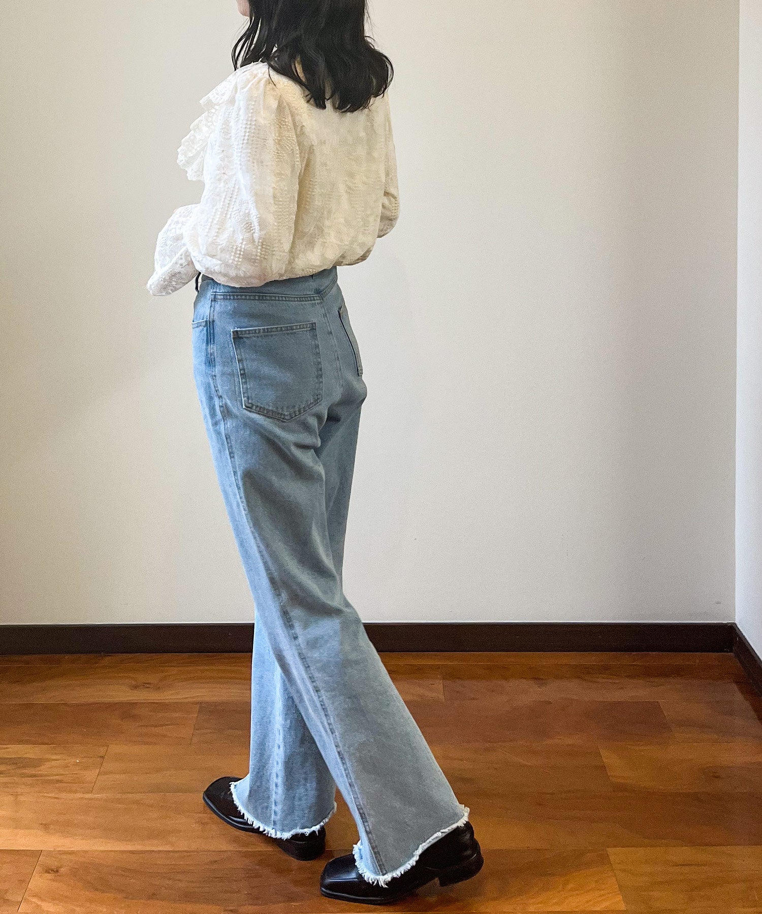 ・フリンジフレアデニムパンツ(COLOR:LIGHT BLUE)