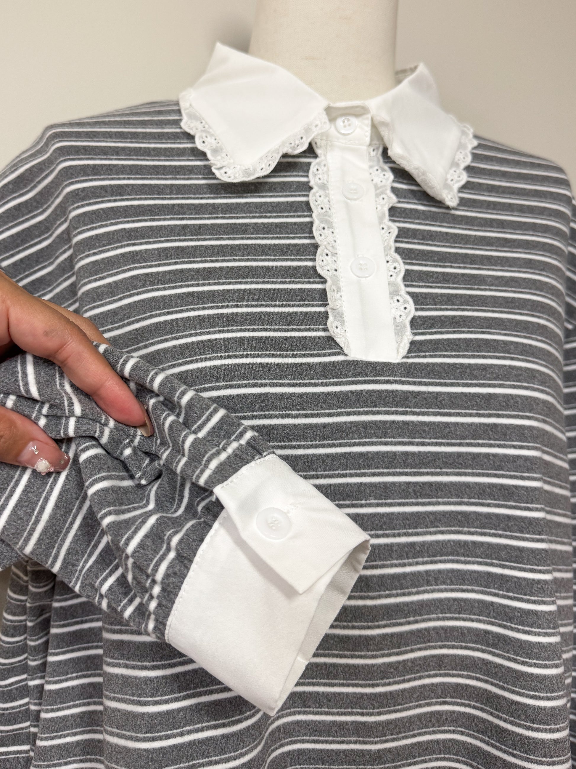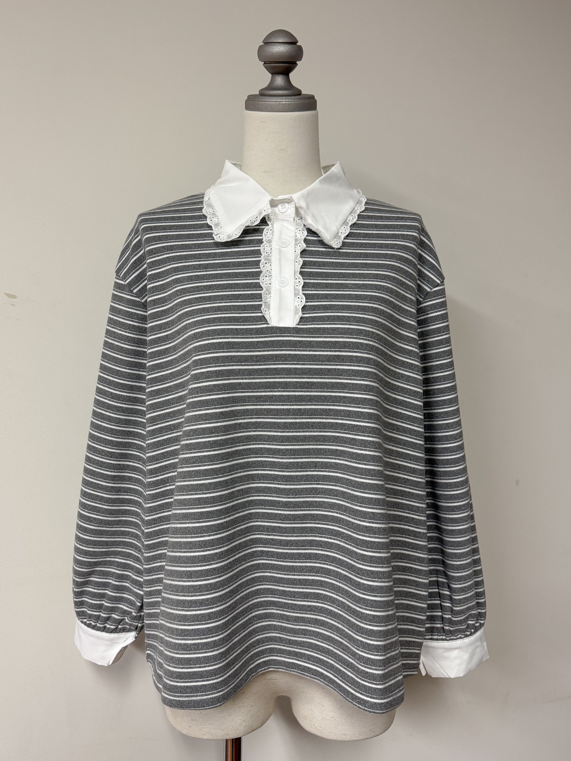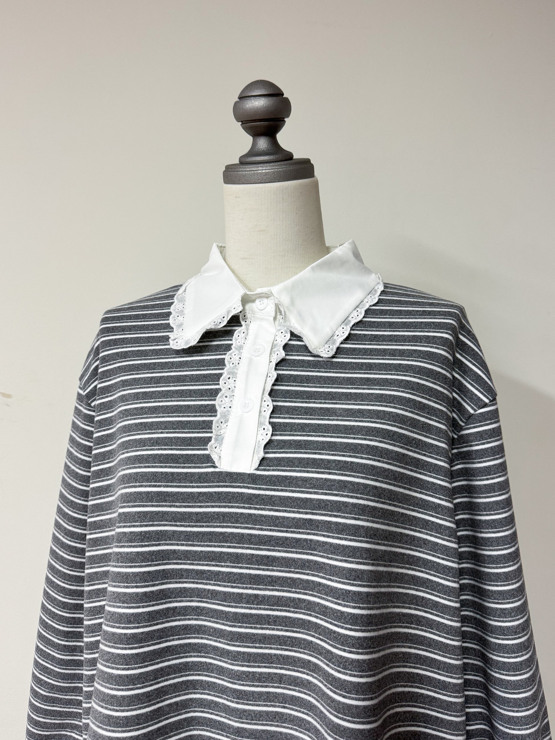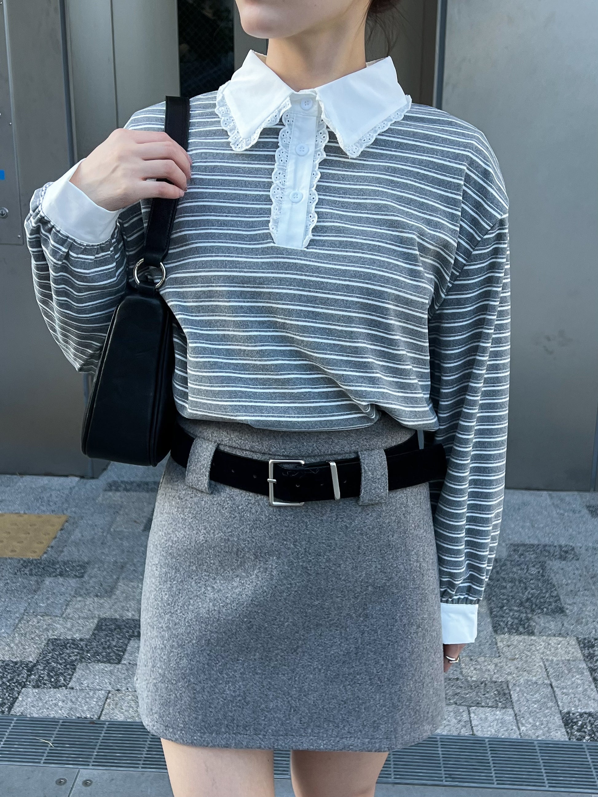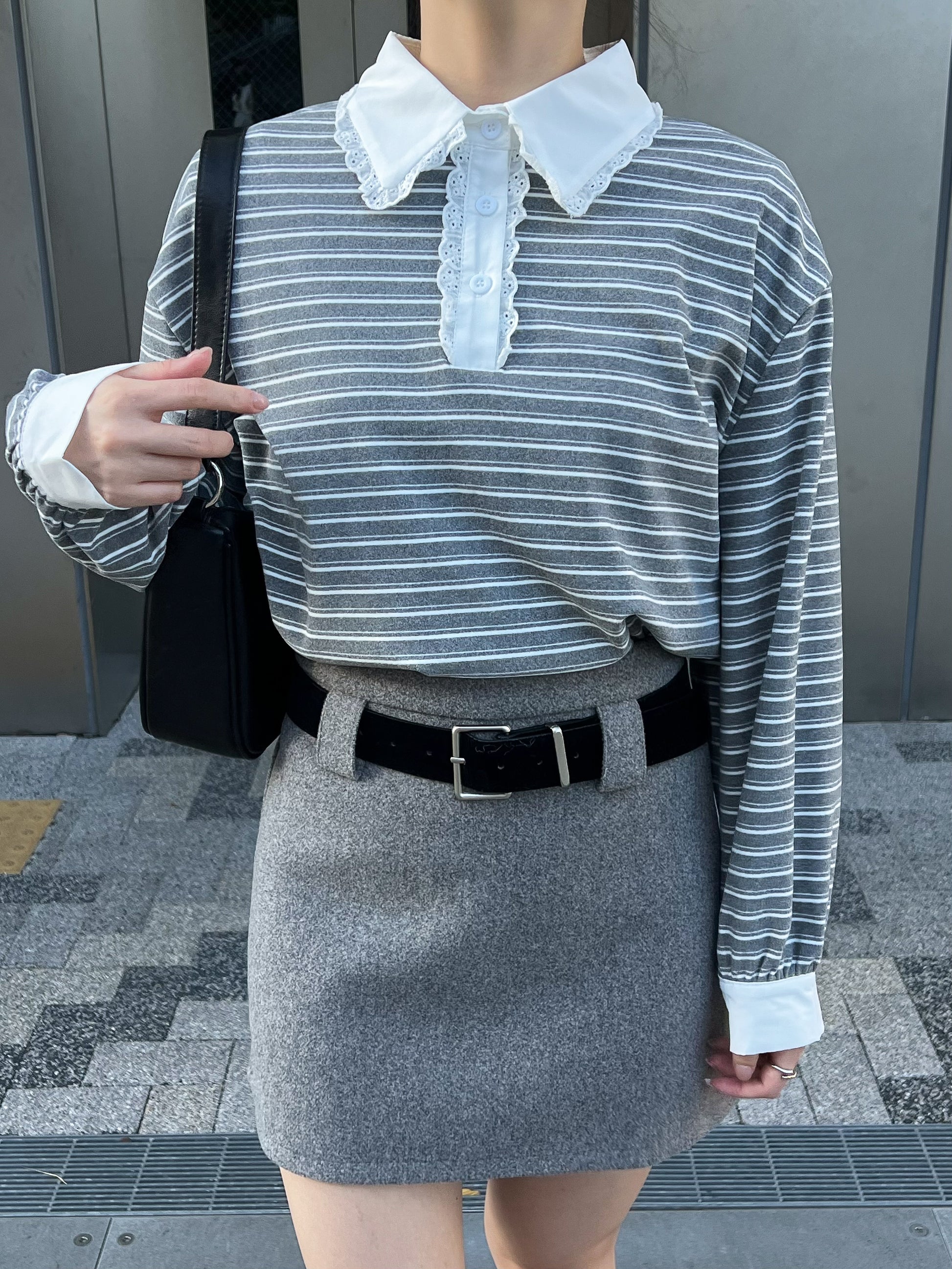 ボーダー×レース襟で韓国ガーリーな雰囲気に!