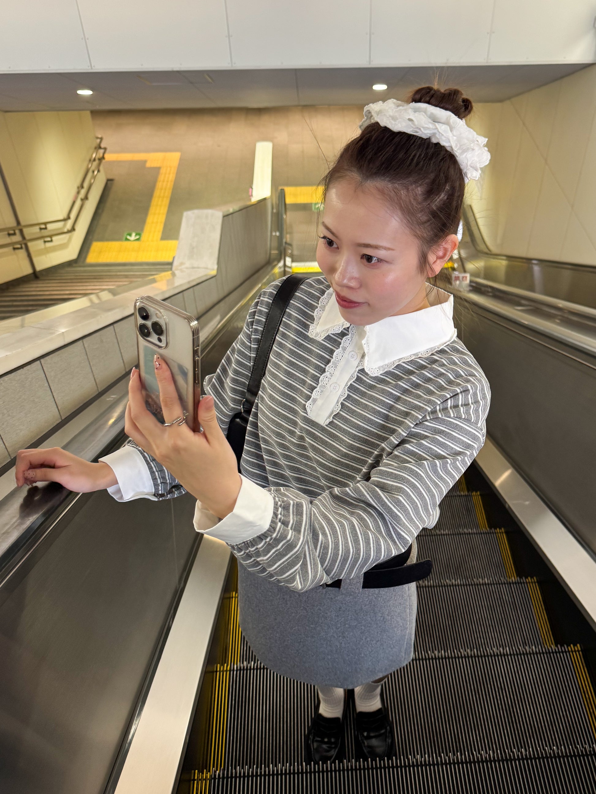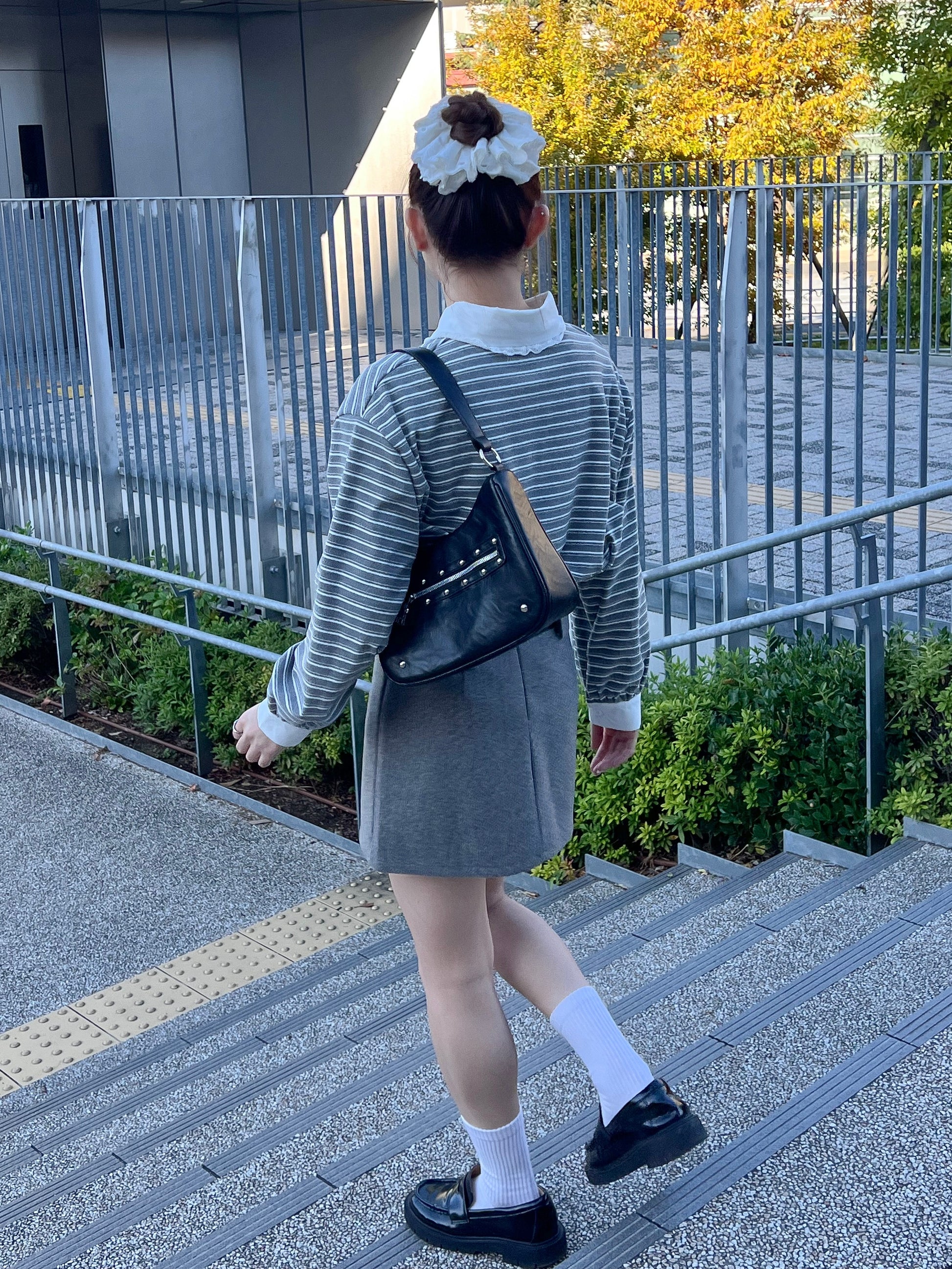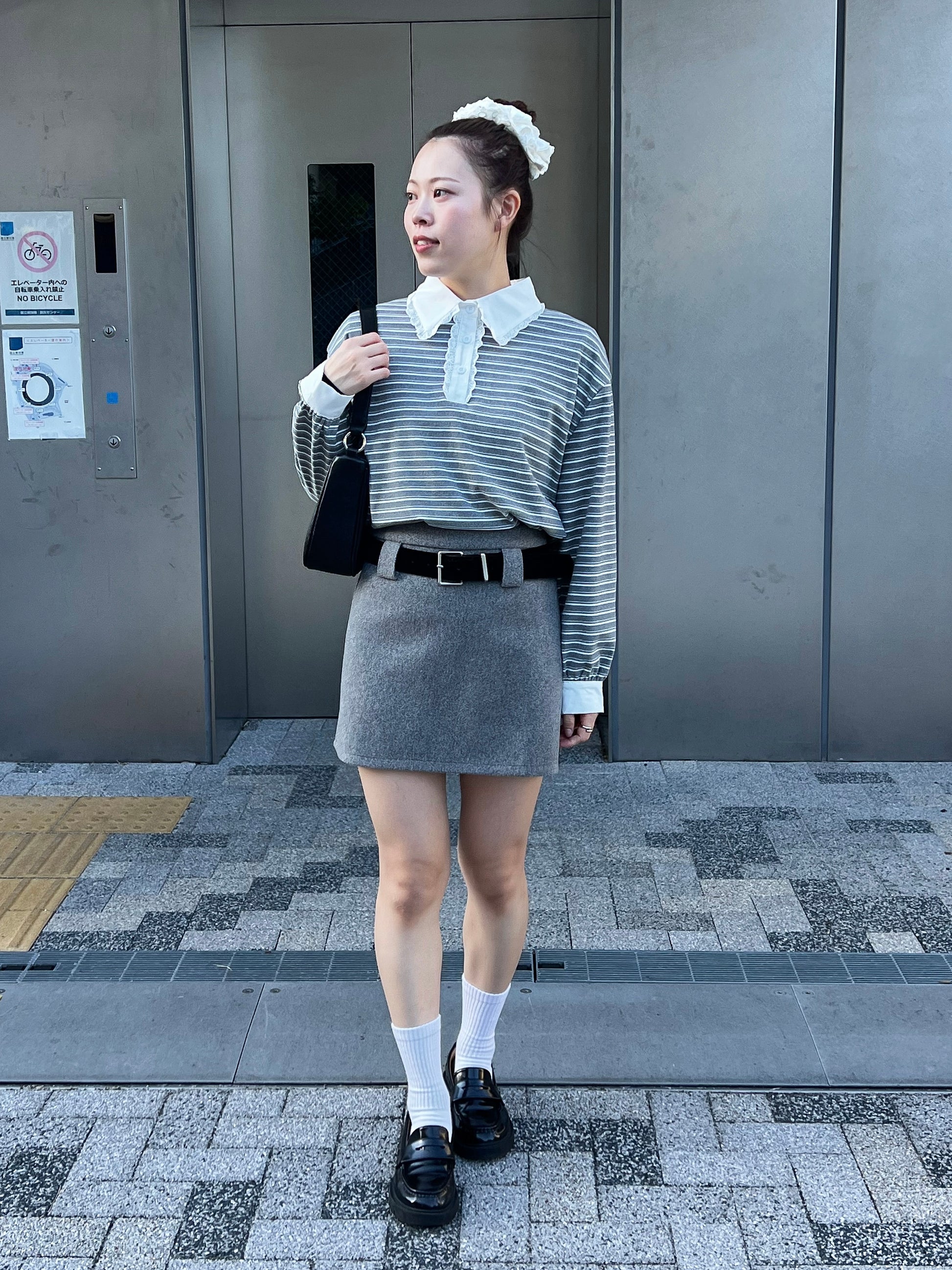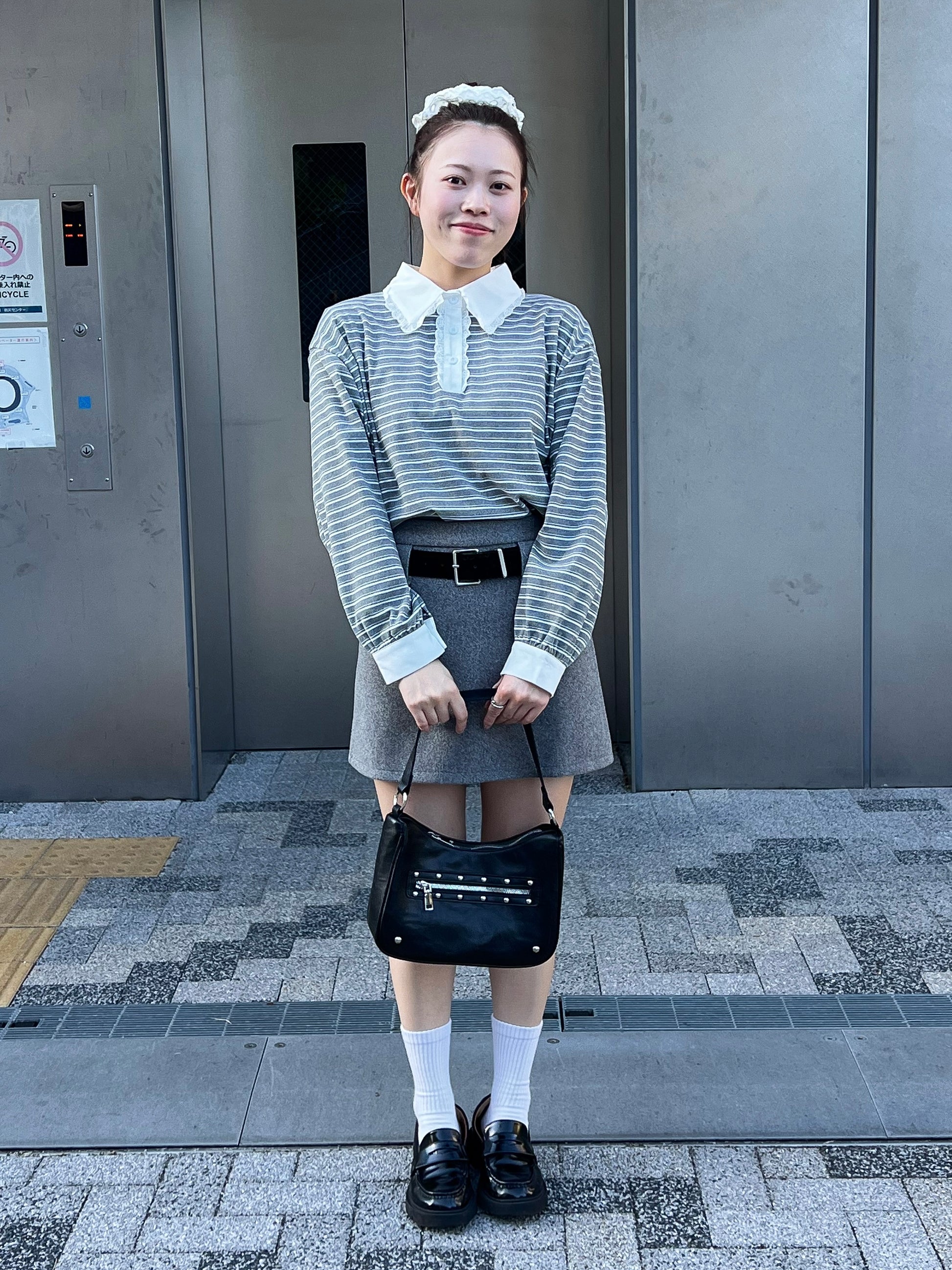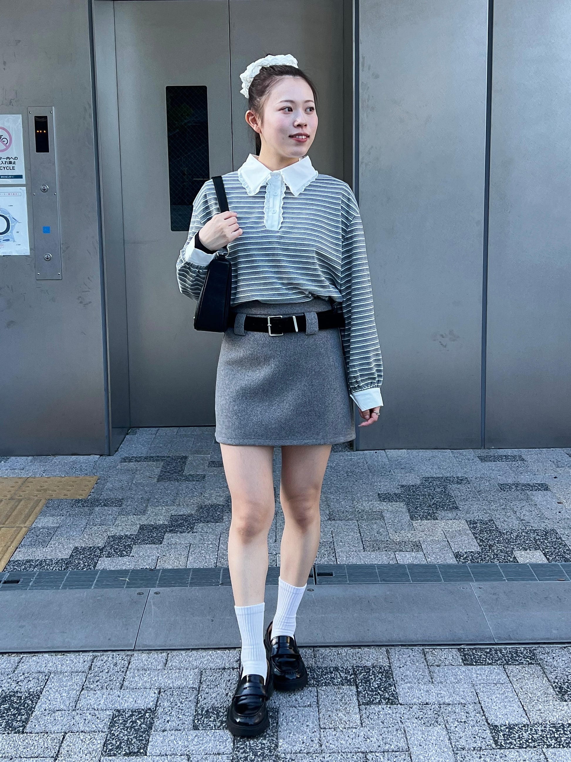 ボーダー×レース襟で韓国ガーリーな雰囲気に!
