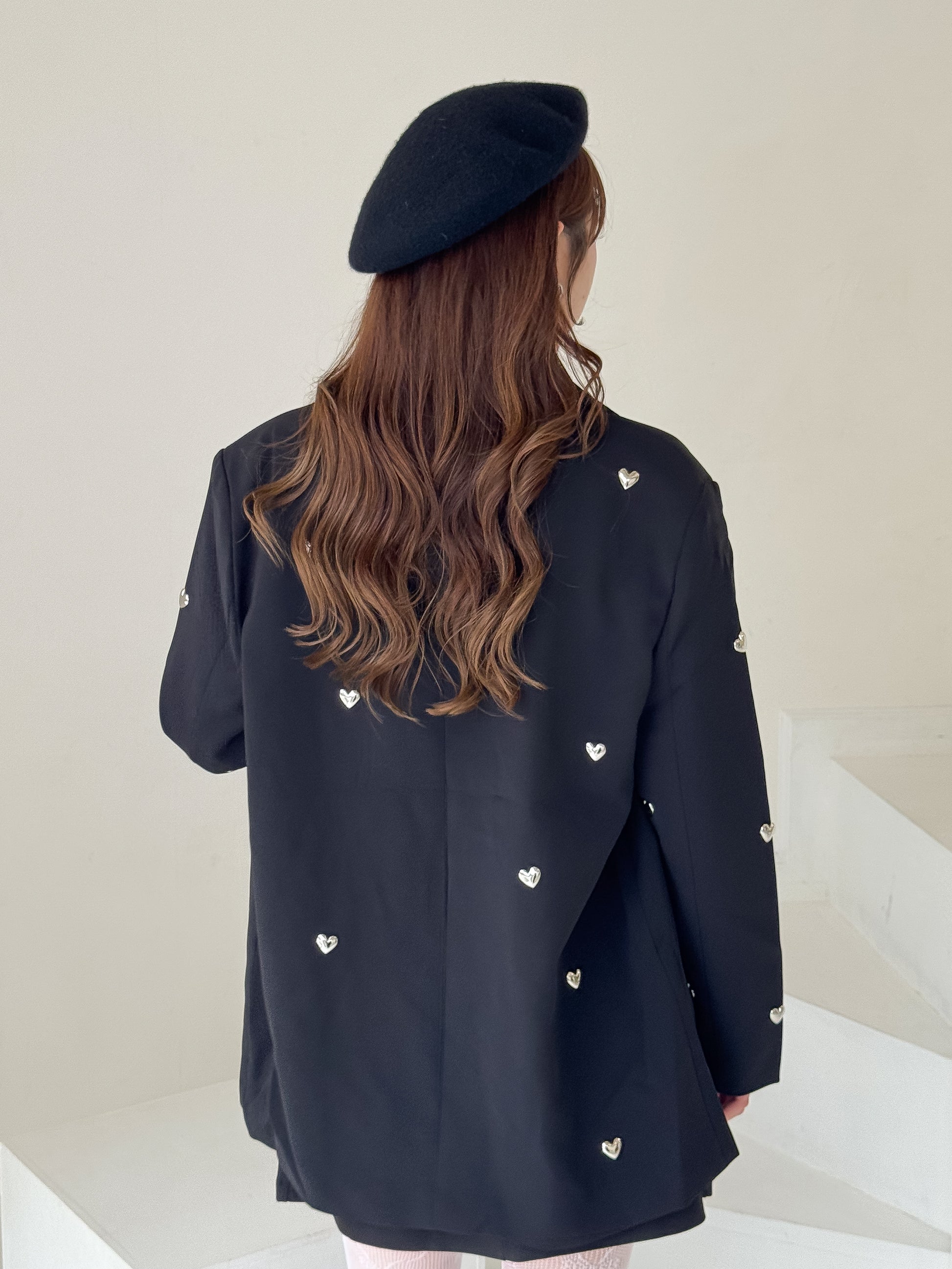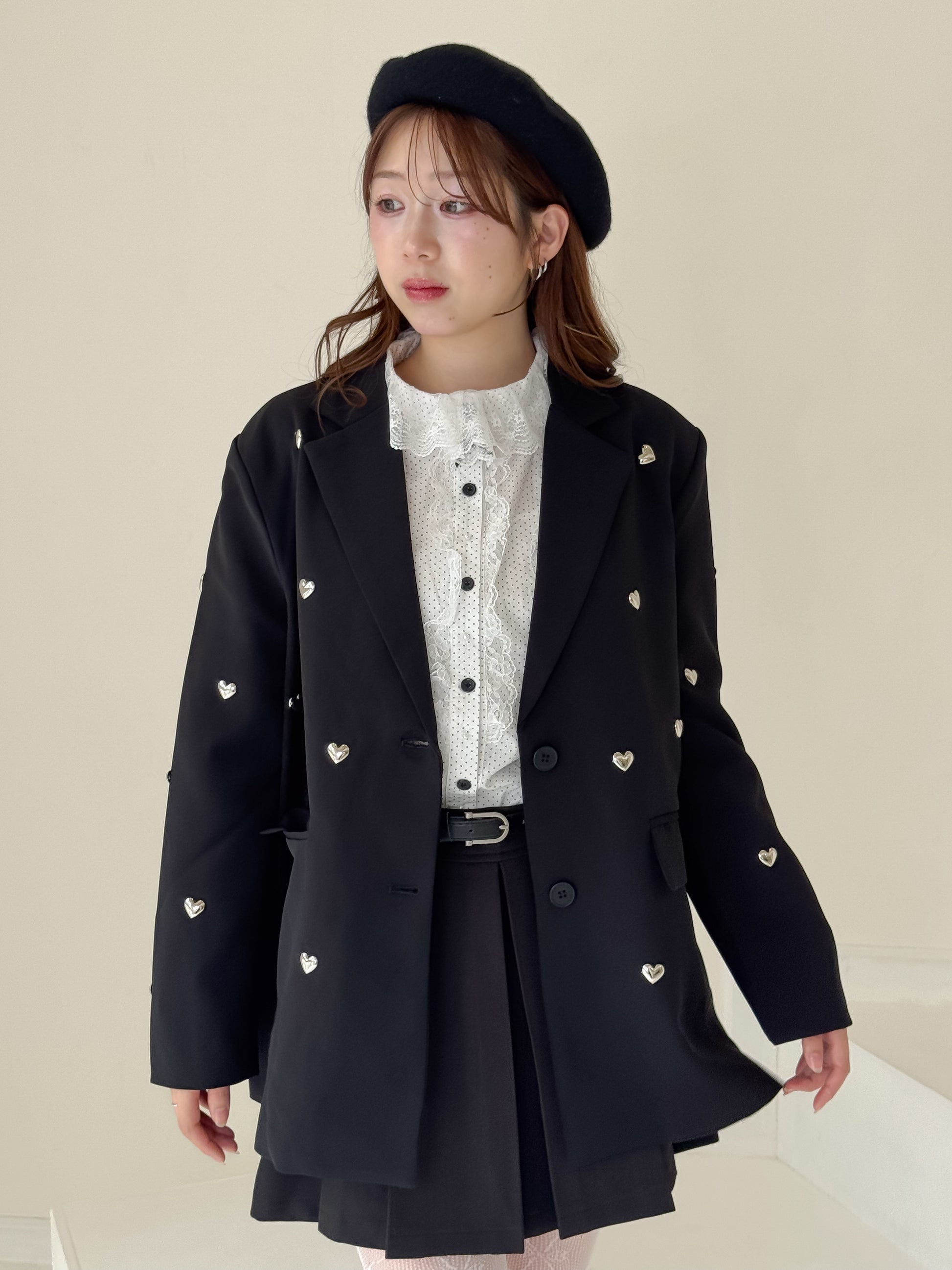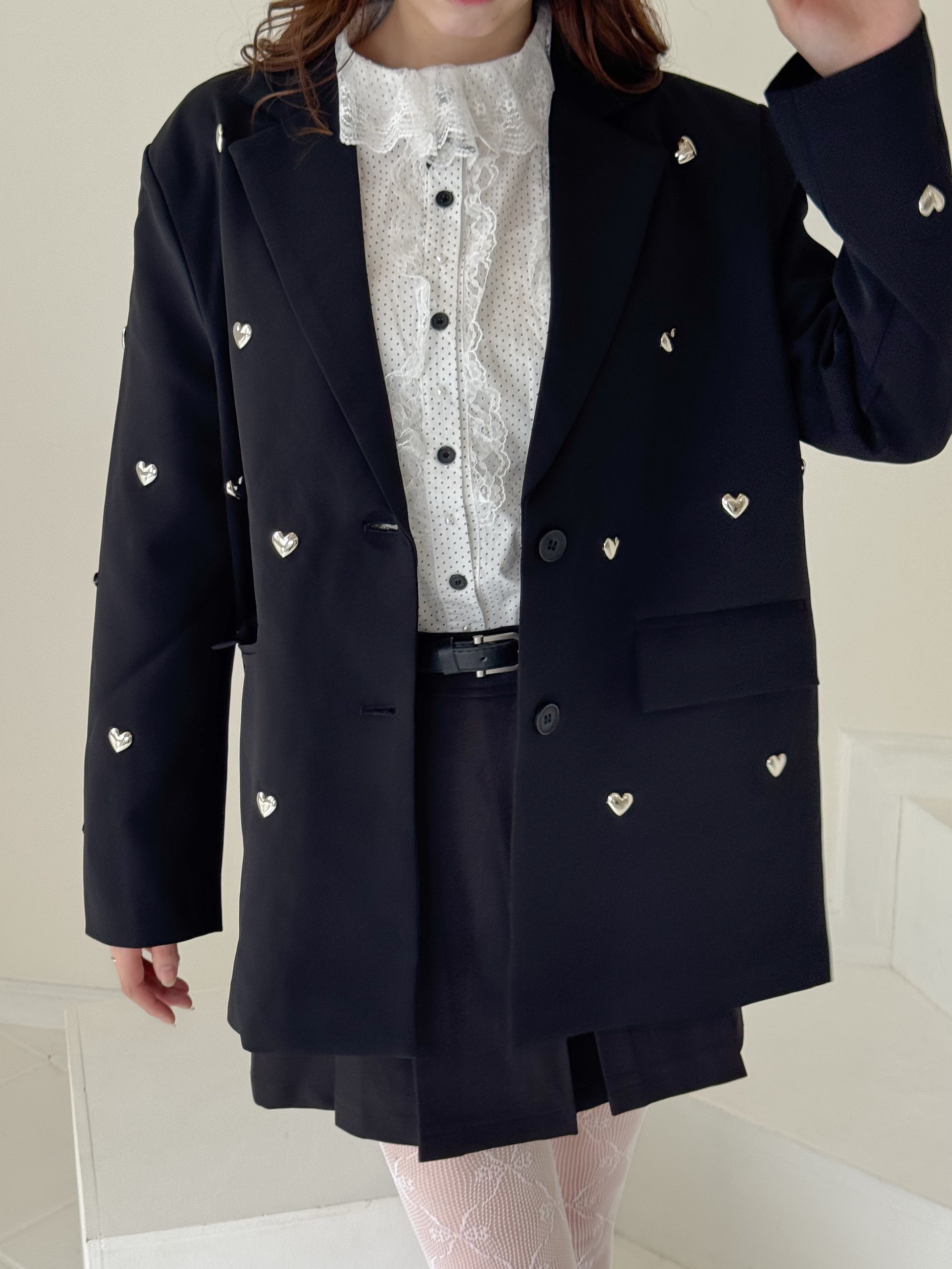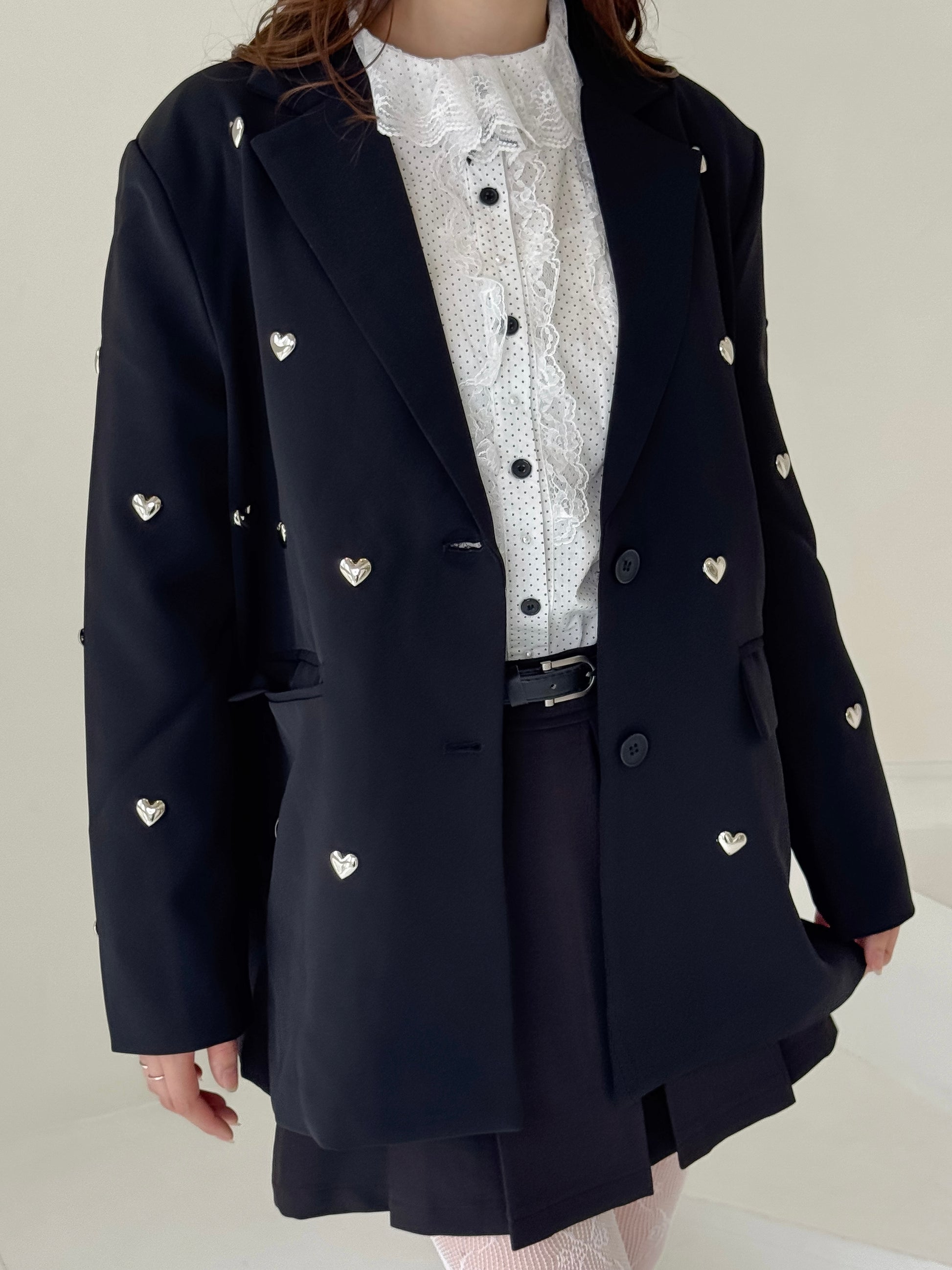 立体的なハートのスタッズがポイントのジャケット。