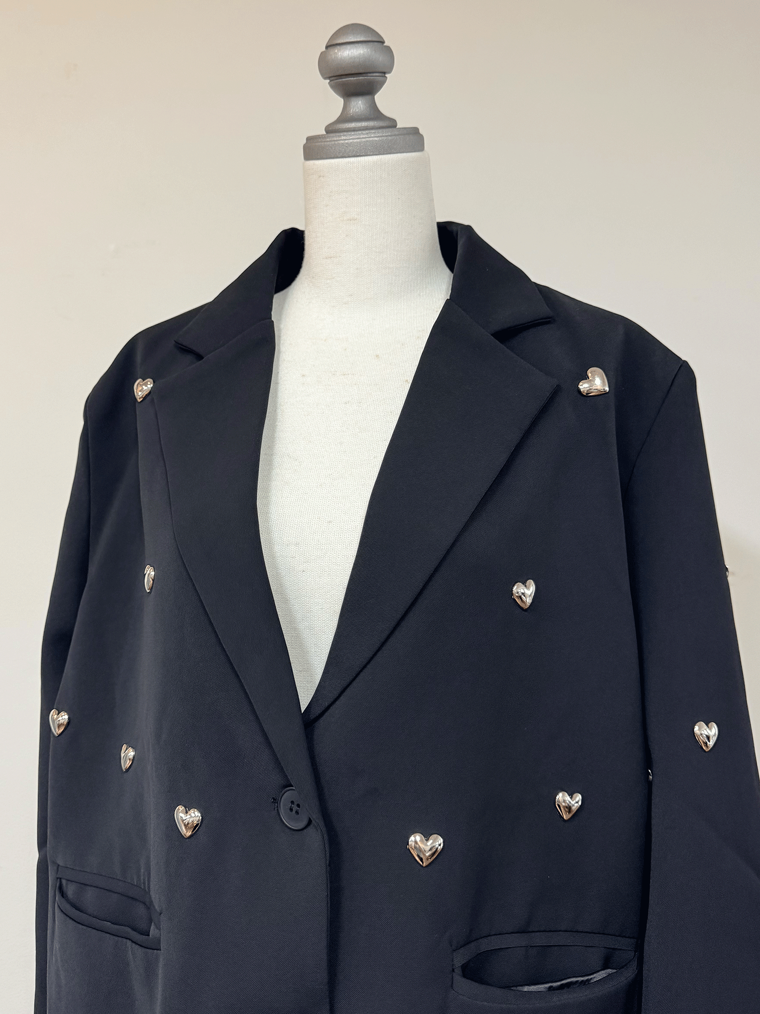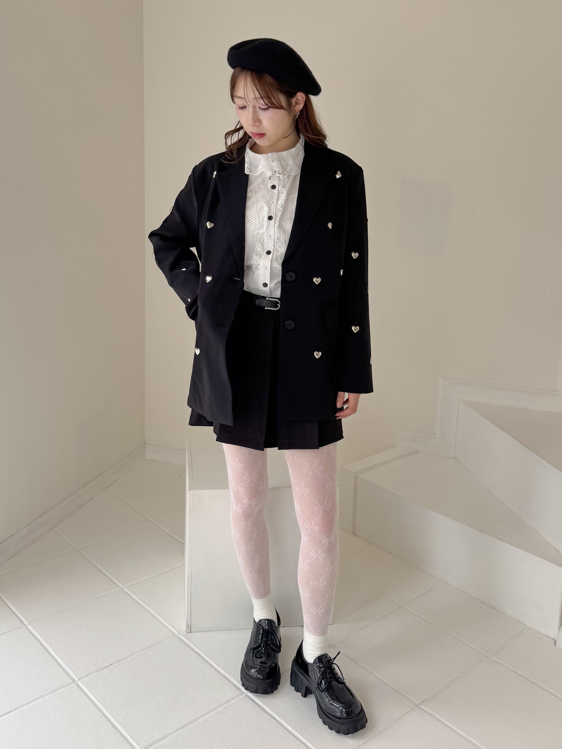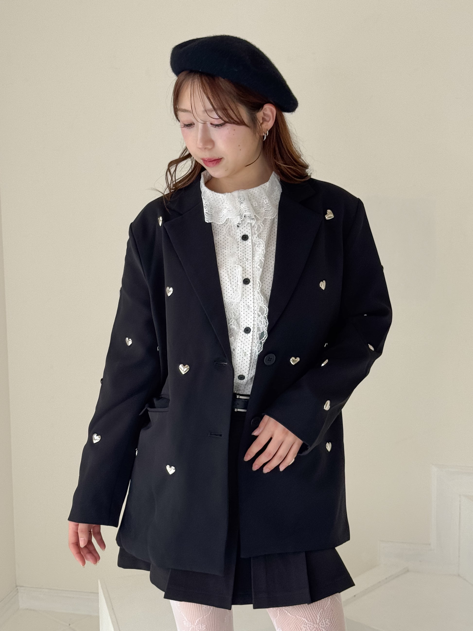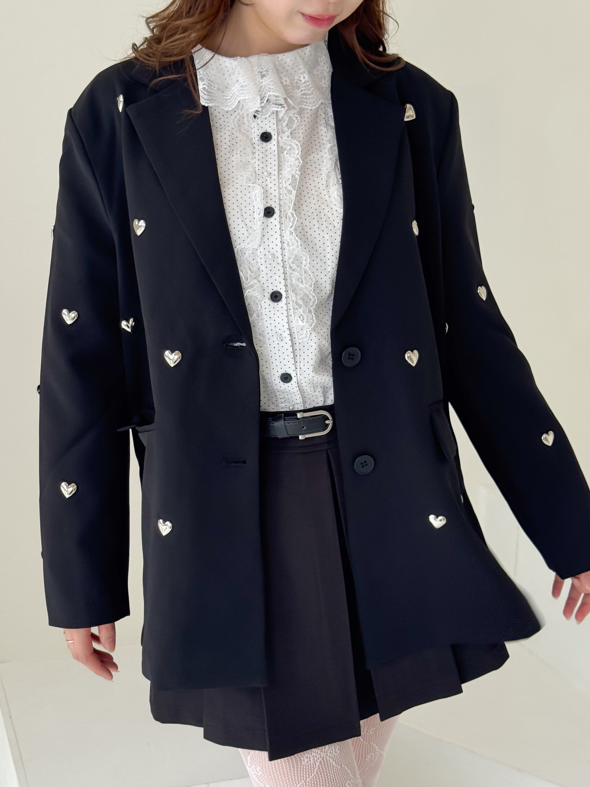 立体的なハートのスタッズがポイントのジャケット。