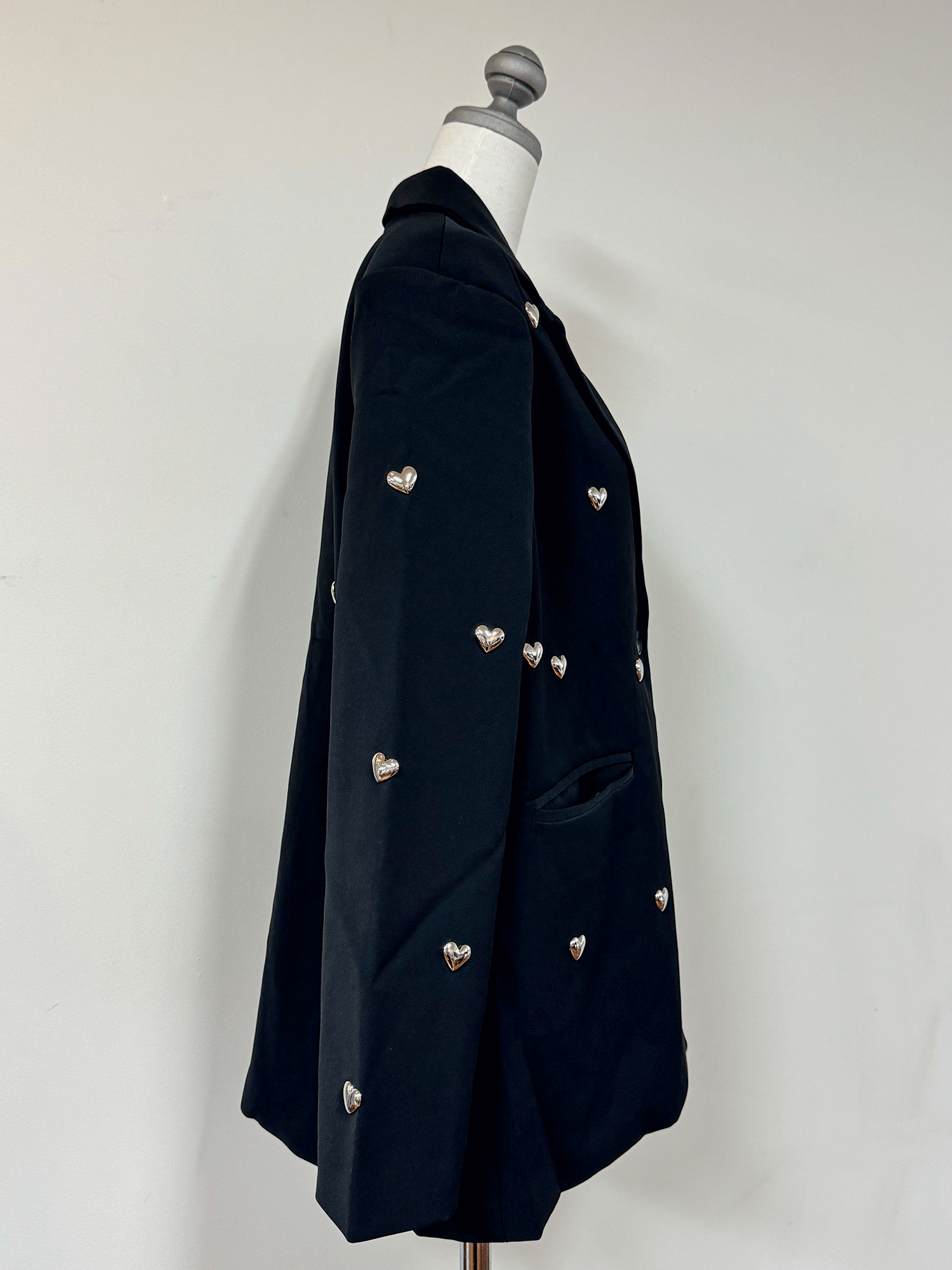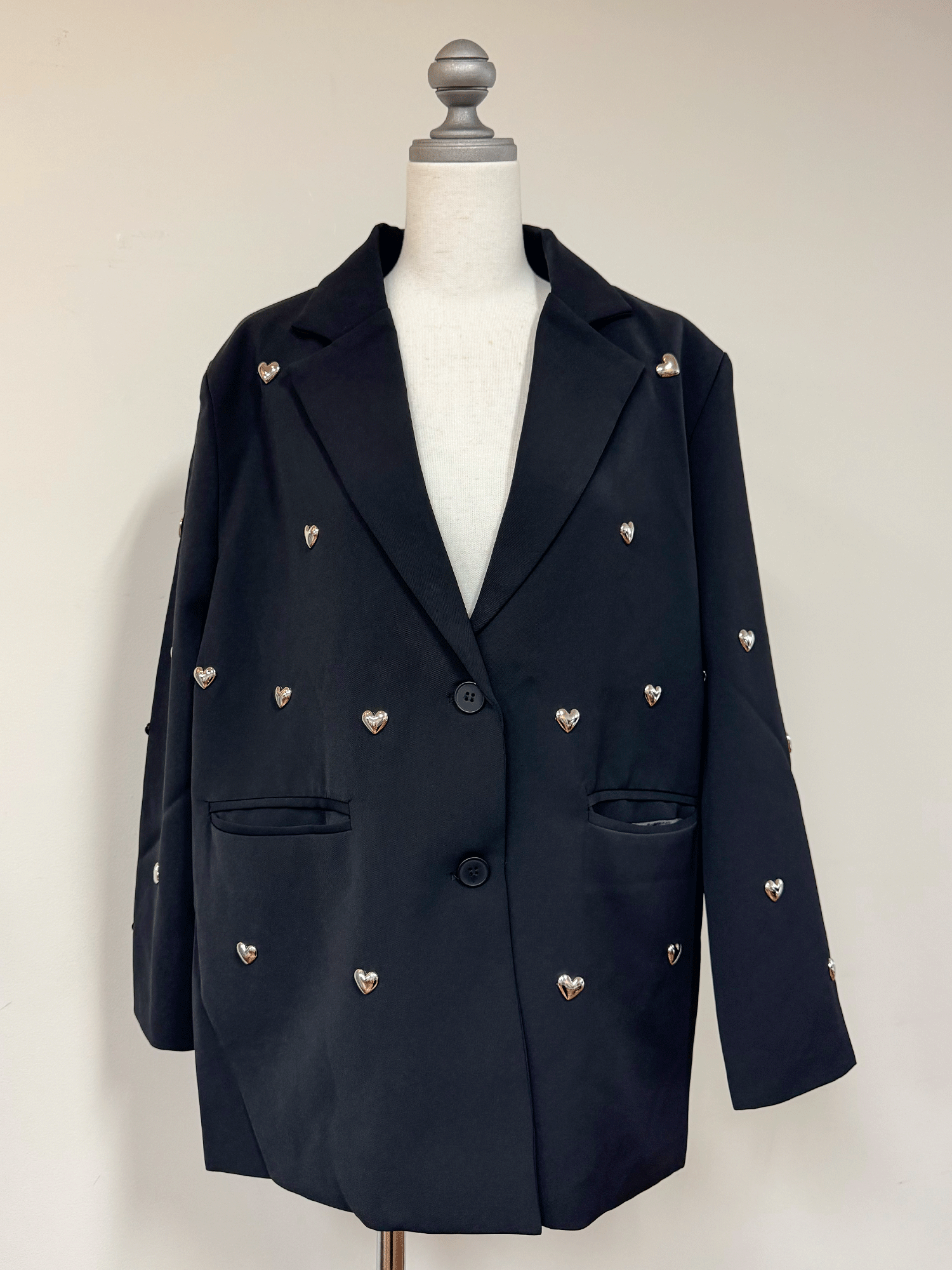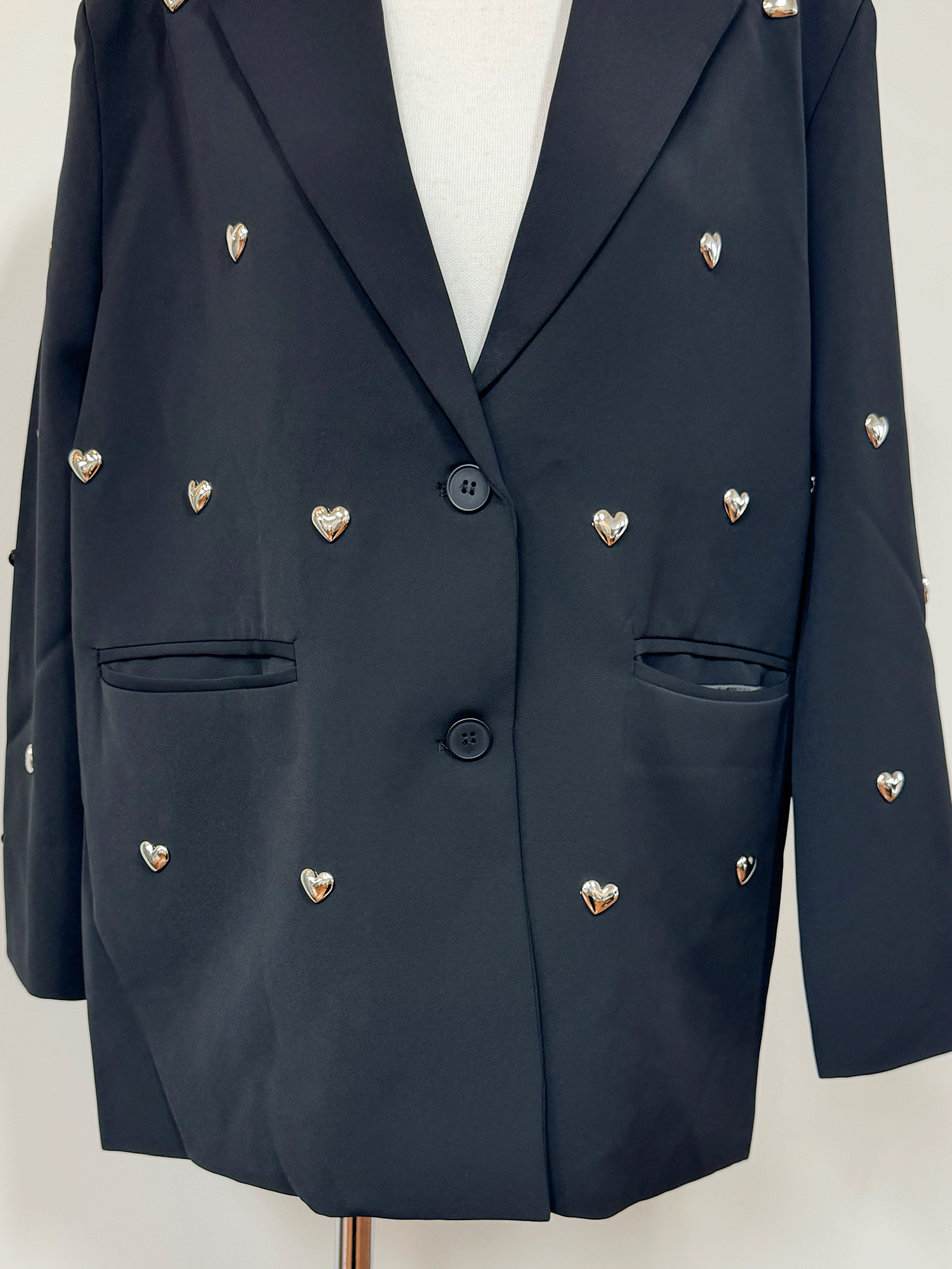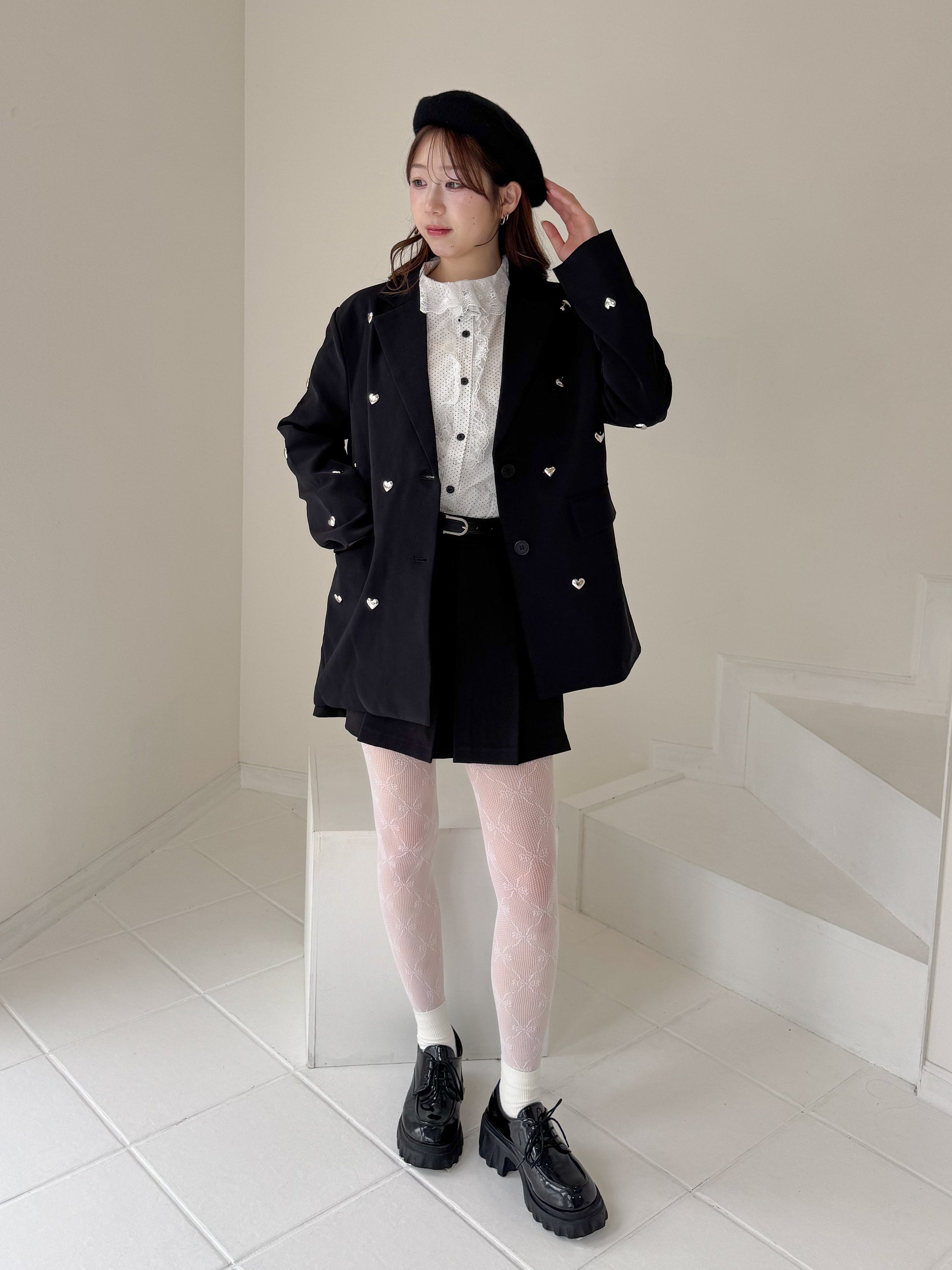 立体的なハートのスタッズがポイントのジャケット。