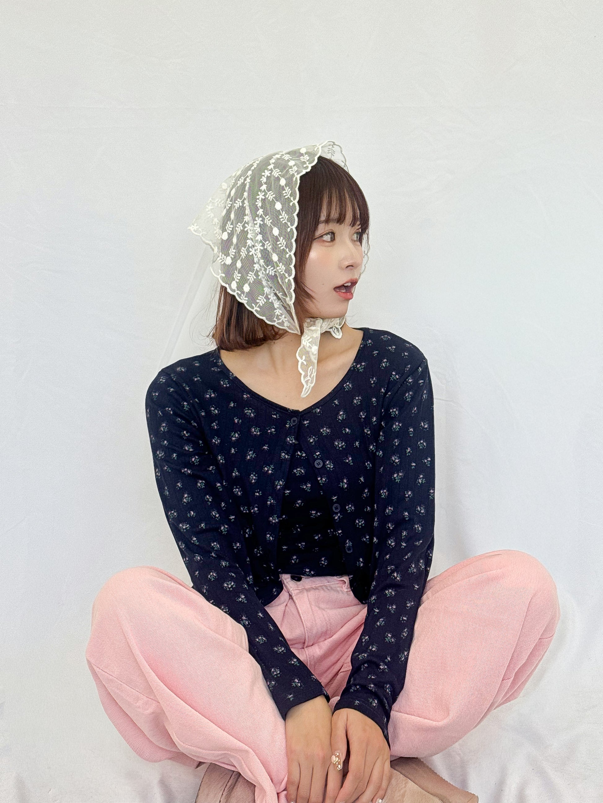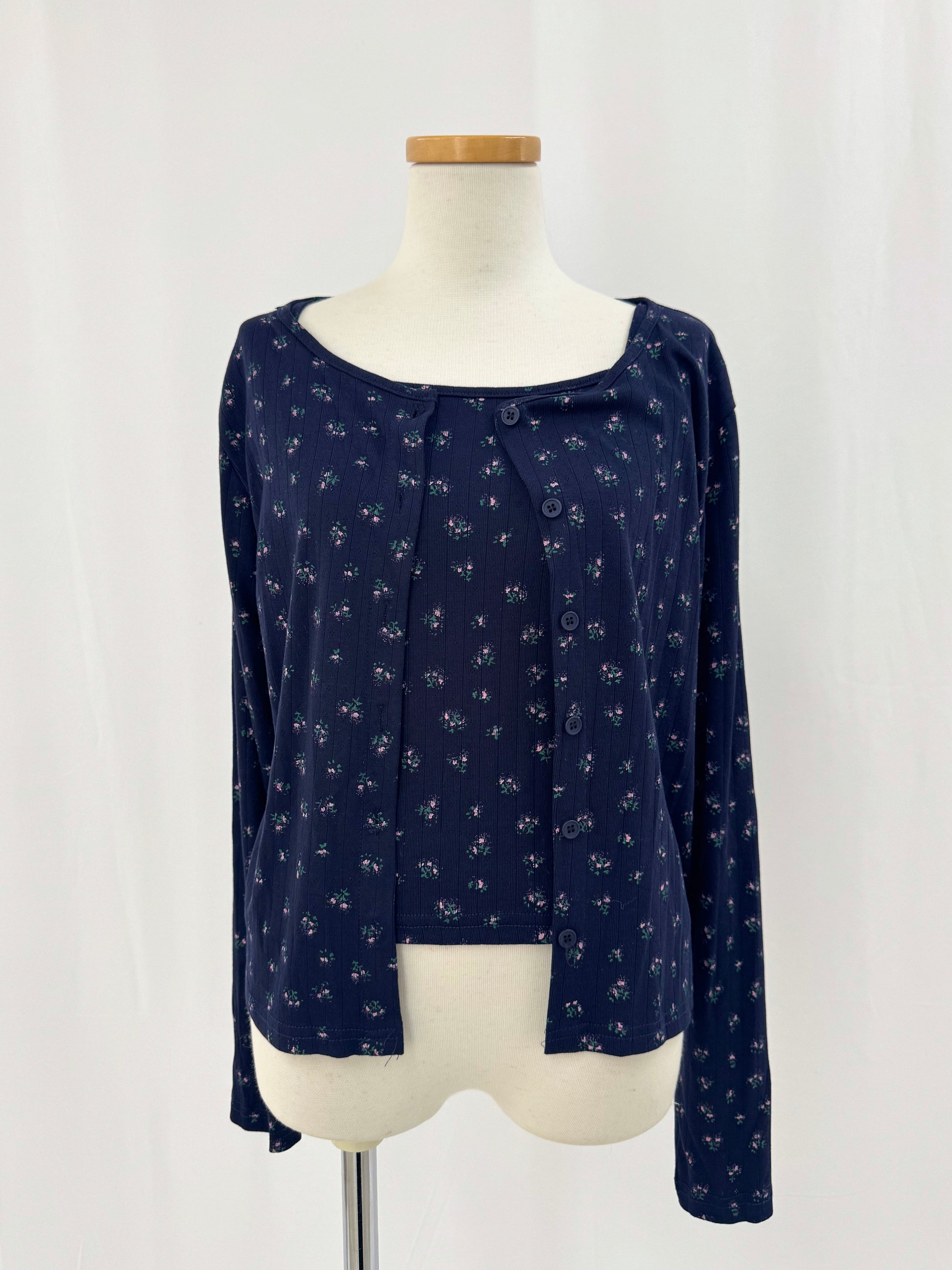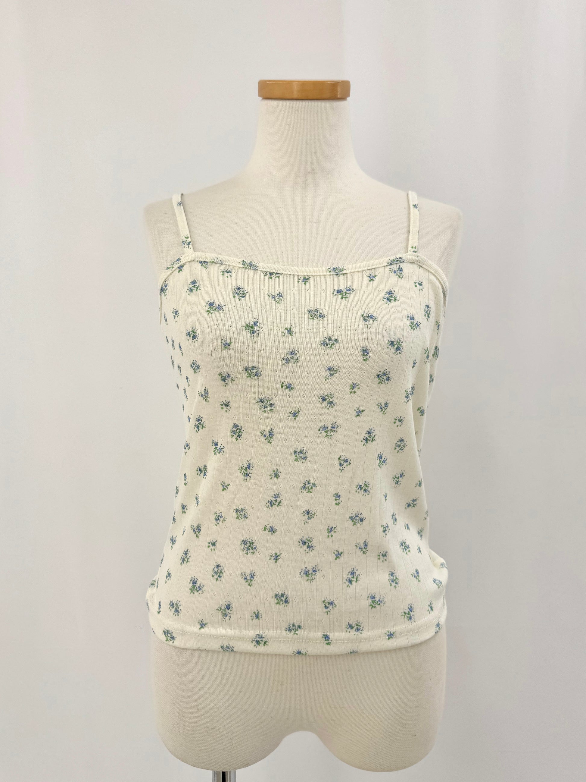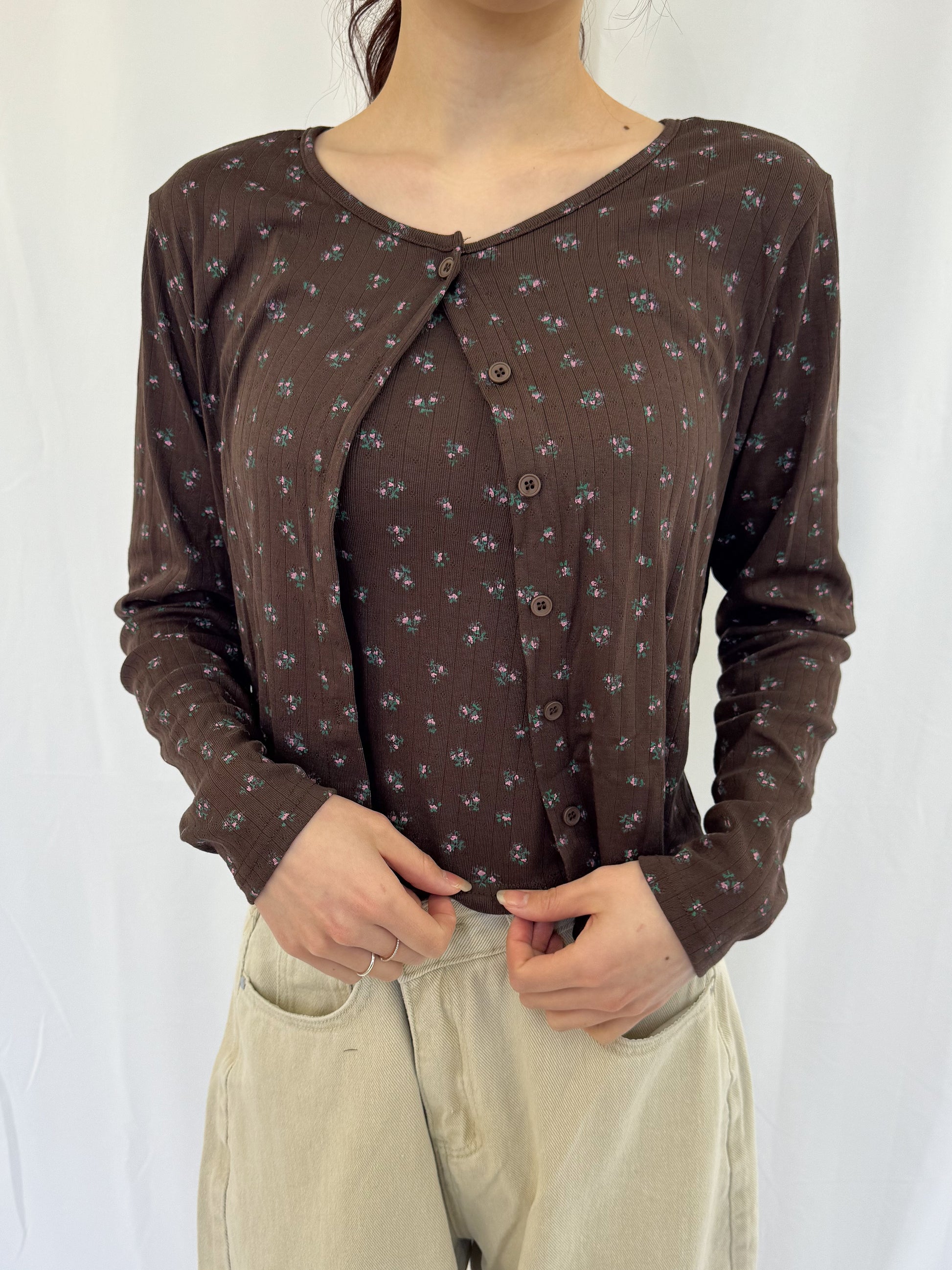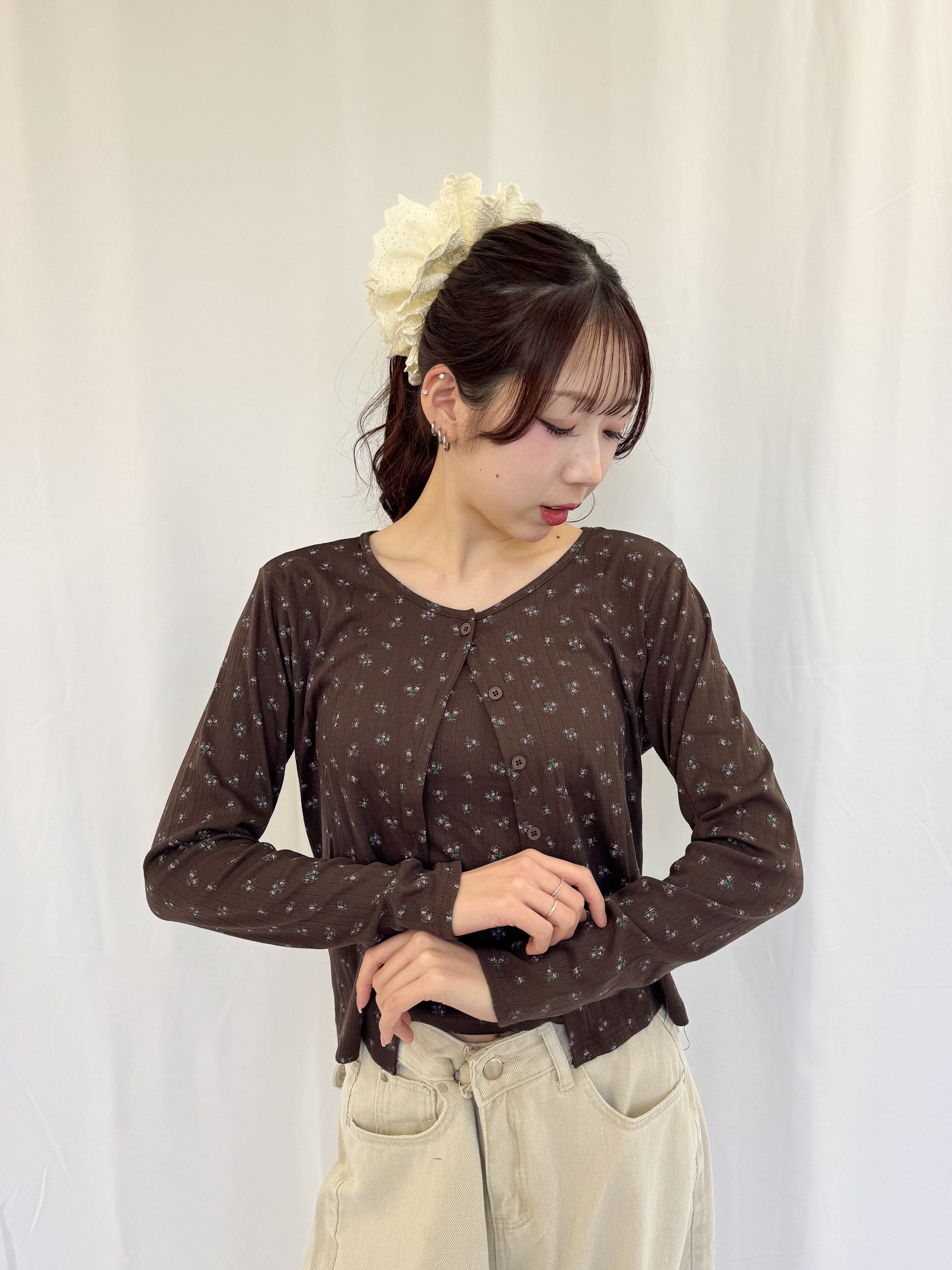 春らしい小花柄のキャミソールとカーディガンのアンサンブル。