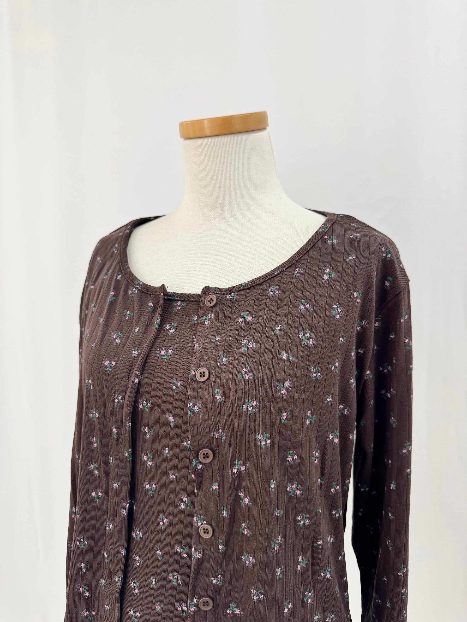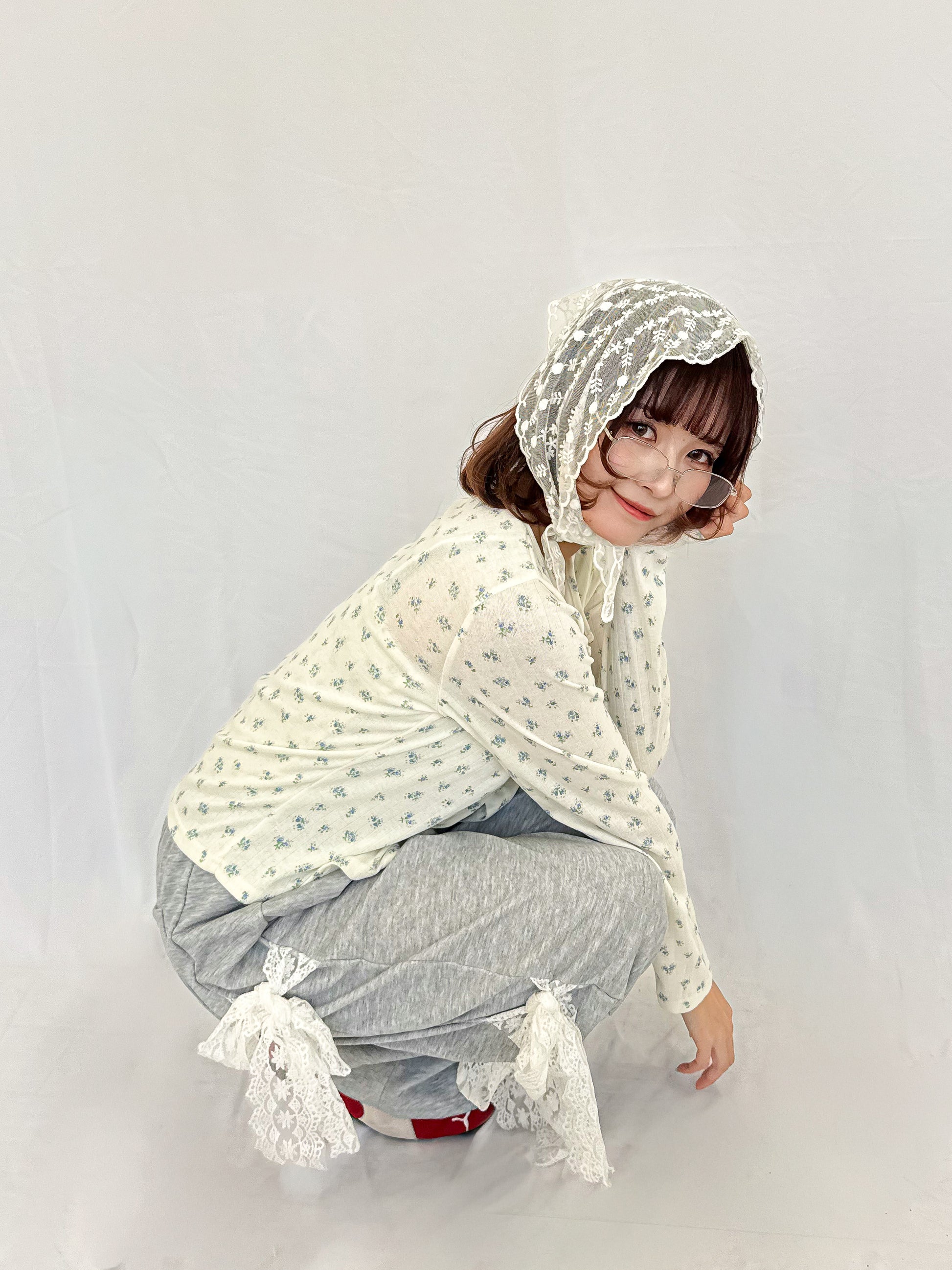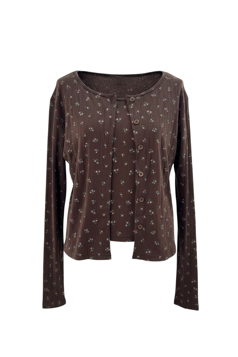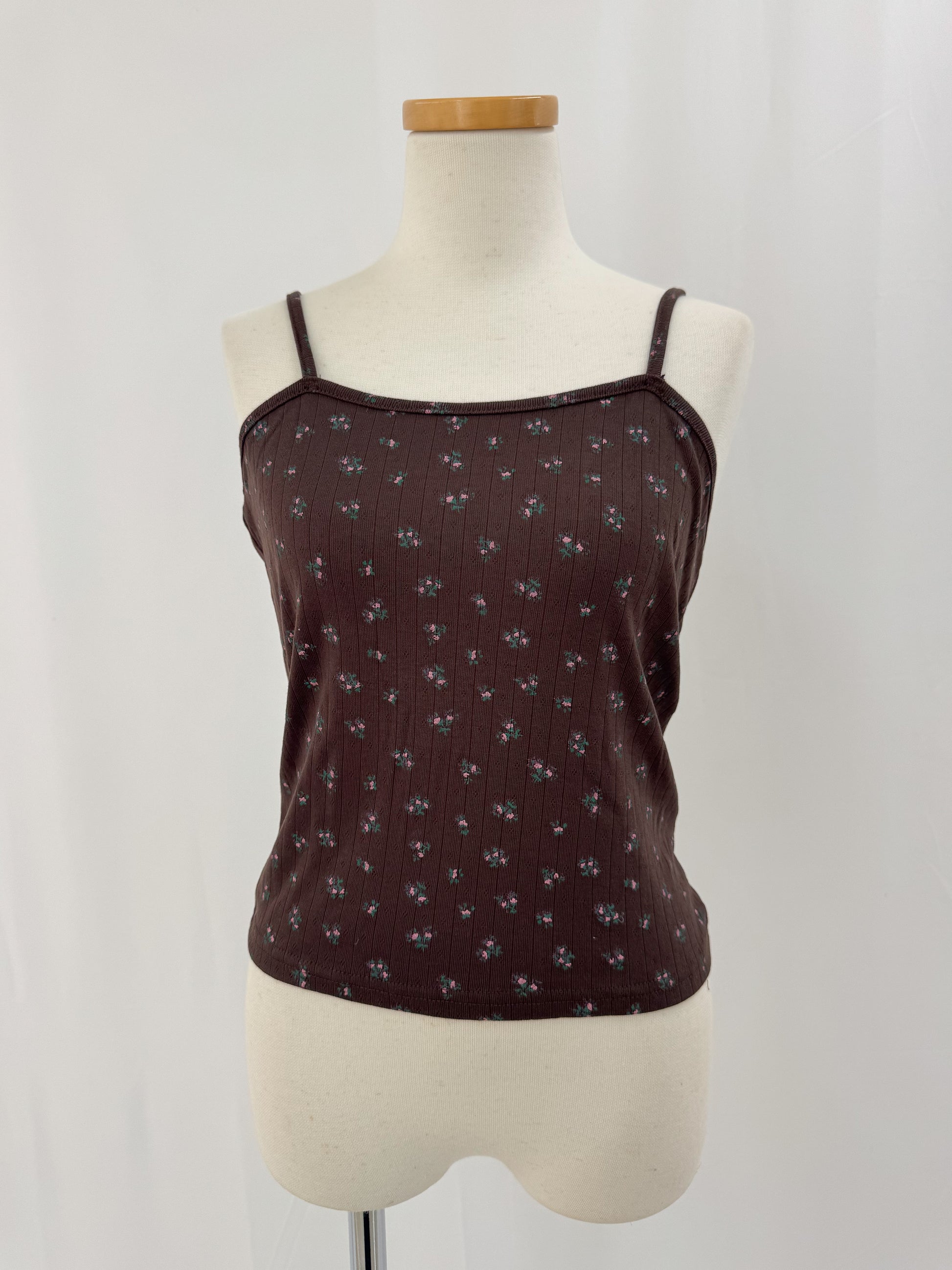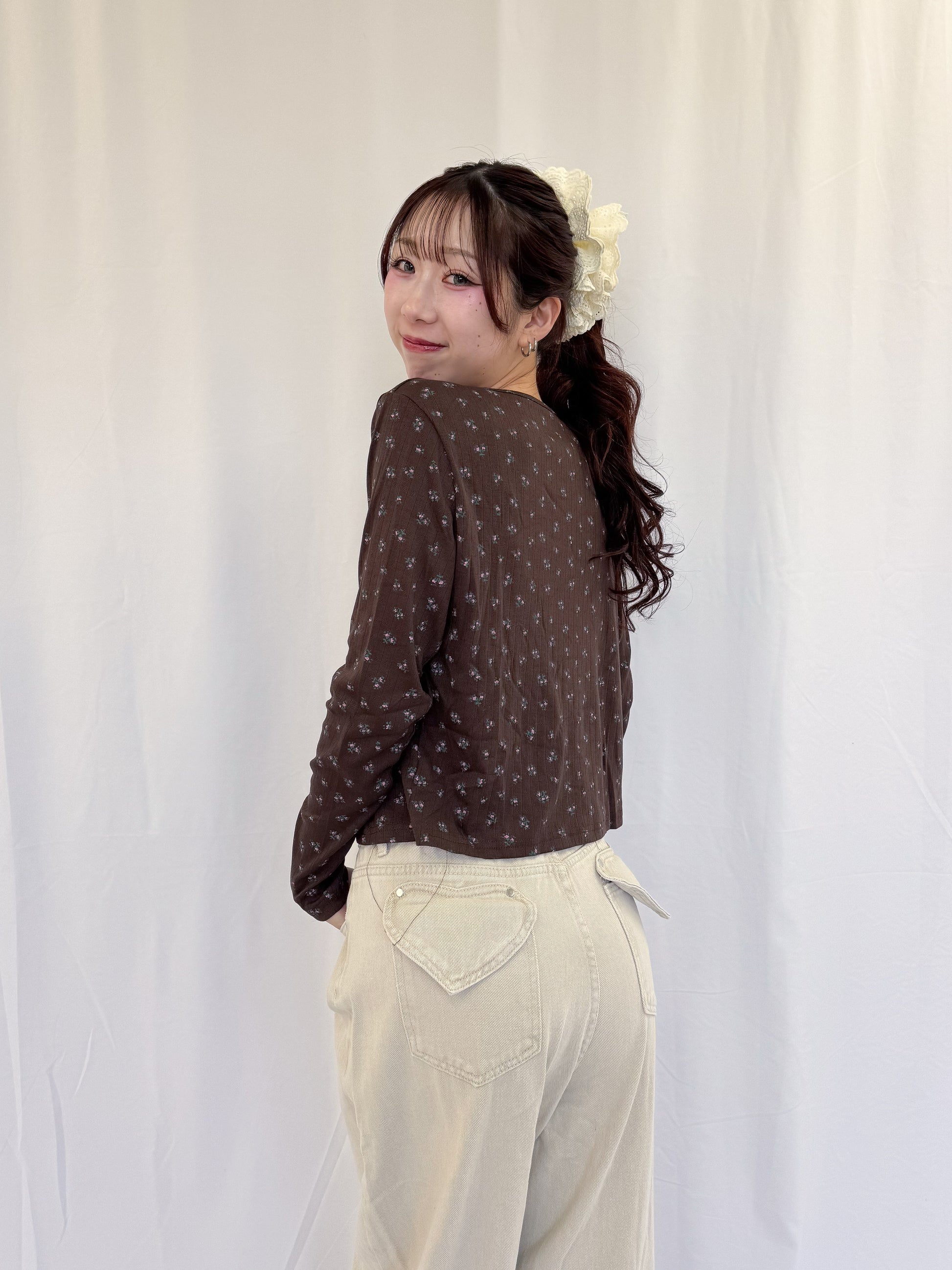 春らしい小花柄のキャミソールとカーディガンのアンサンブル。