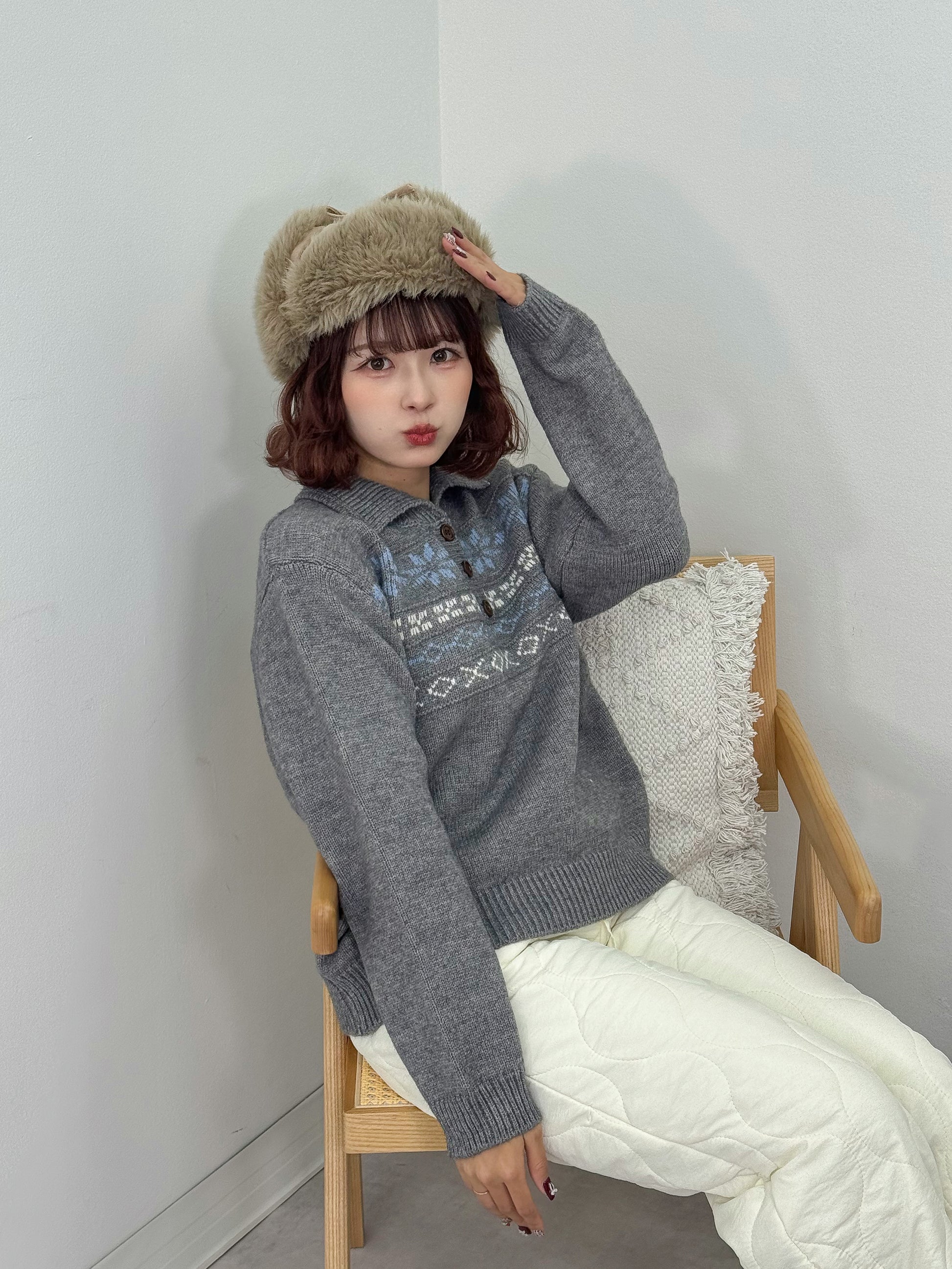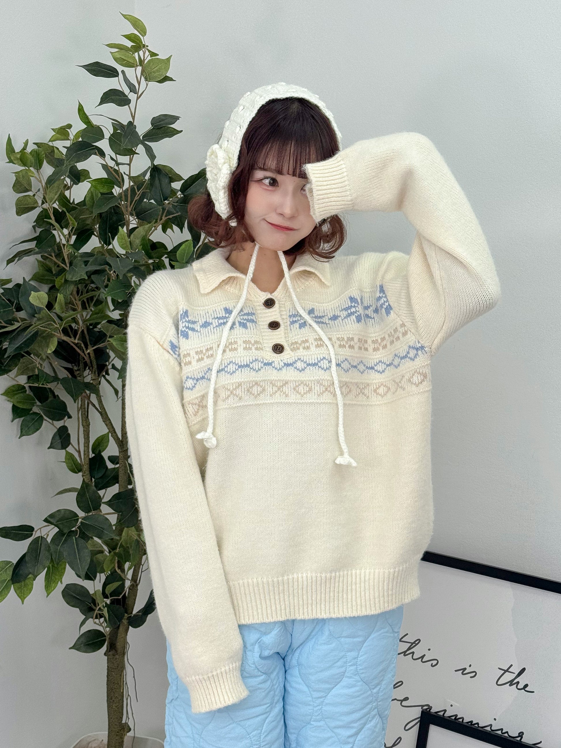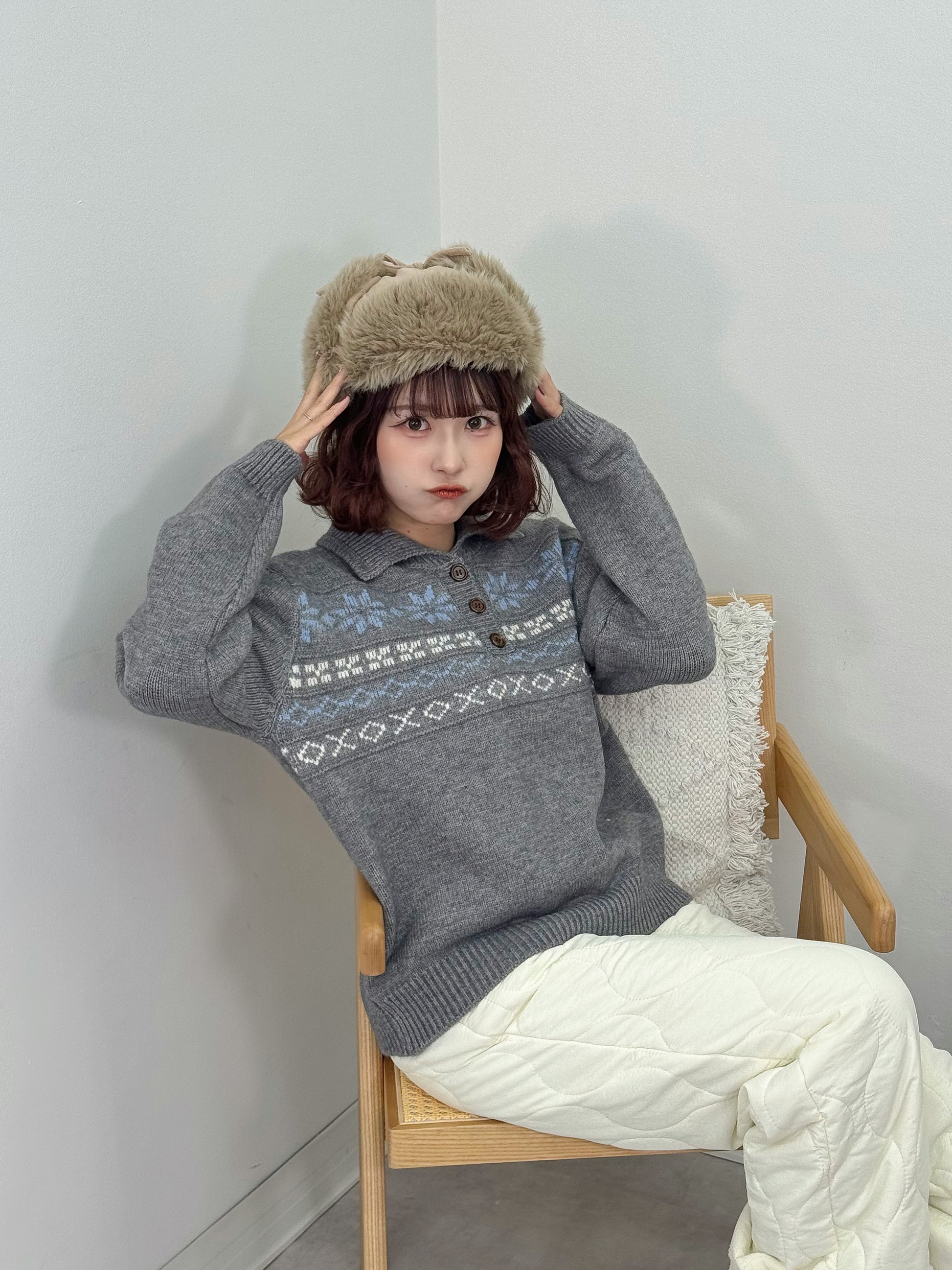 ノルディックオーバーサイズニットポロ