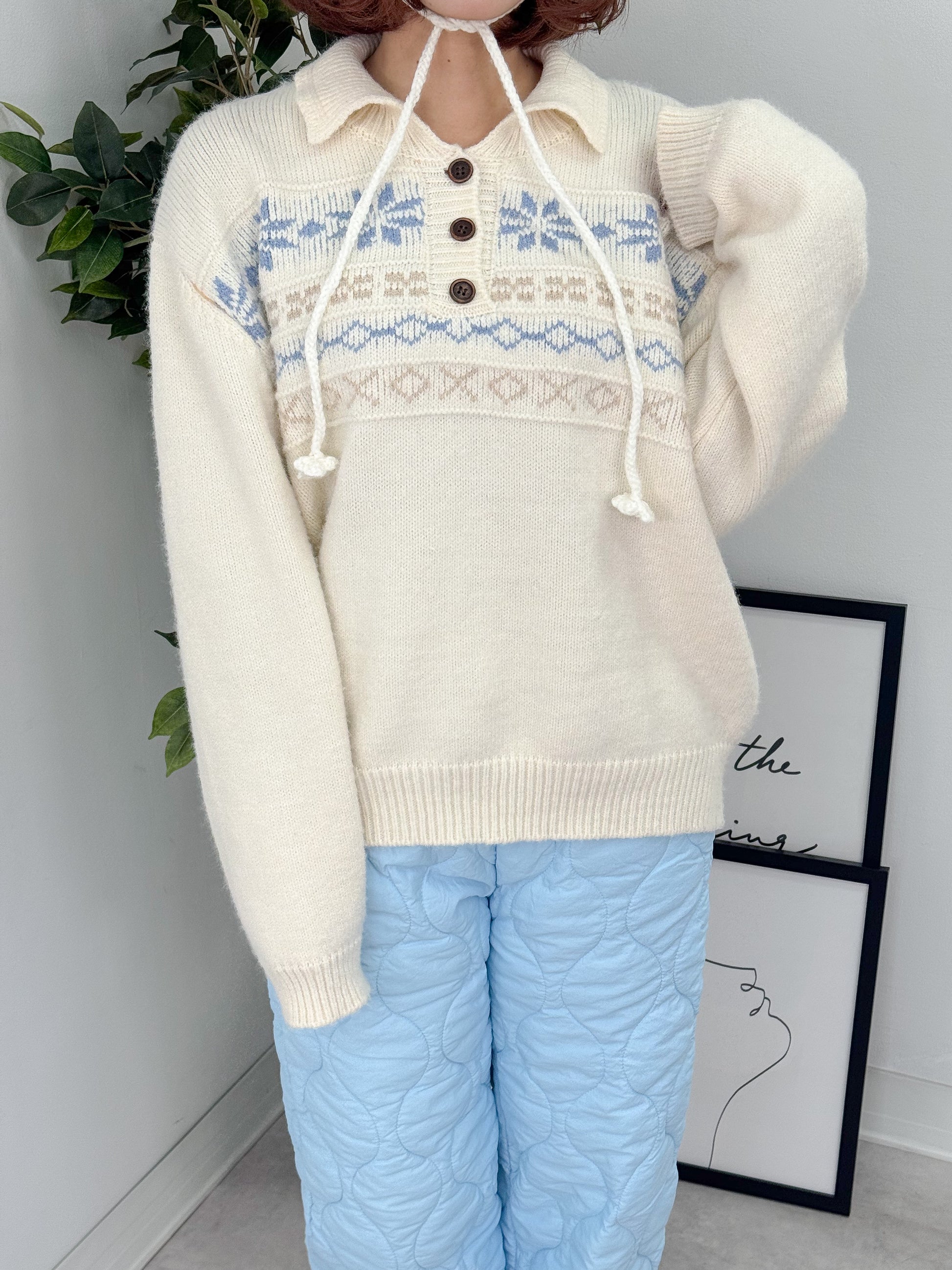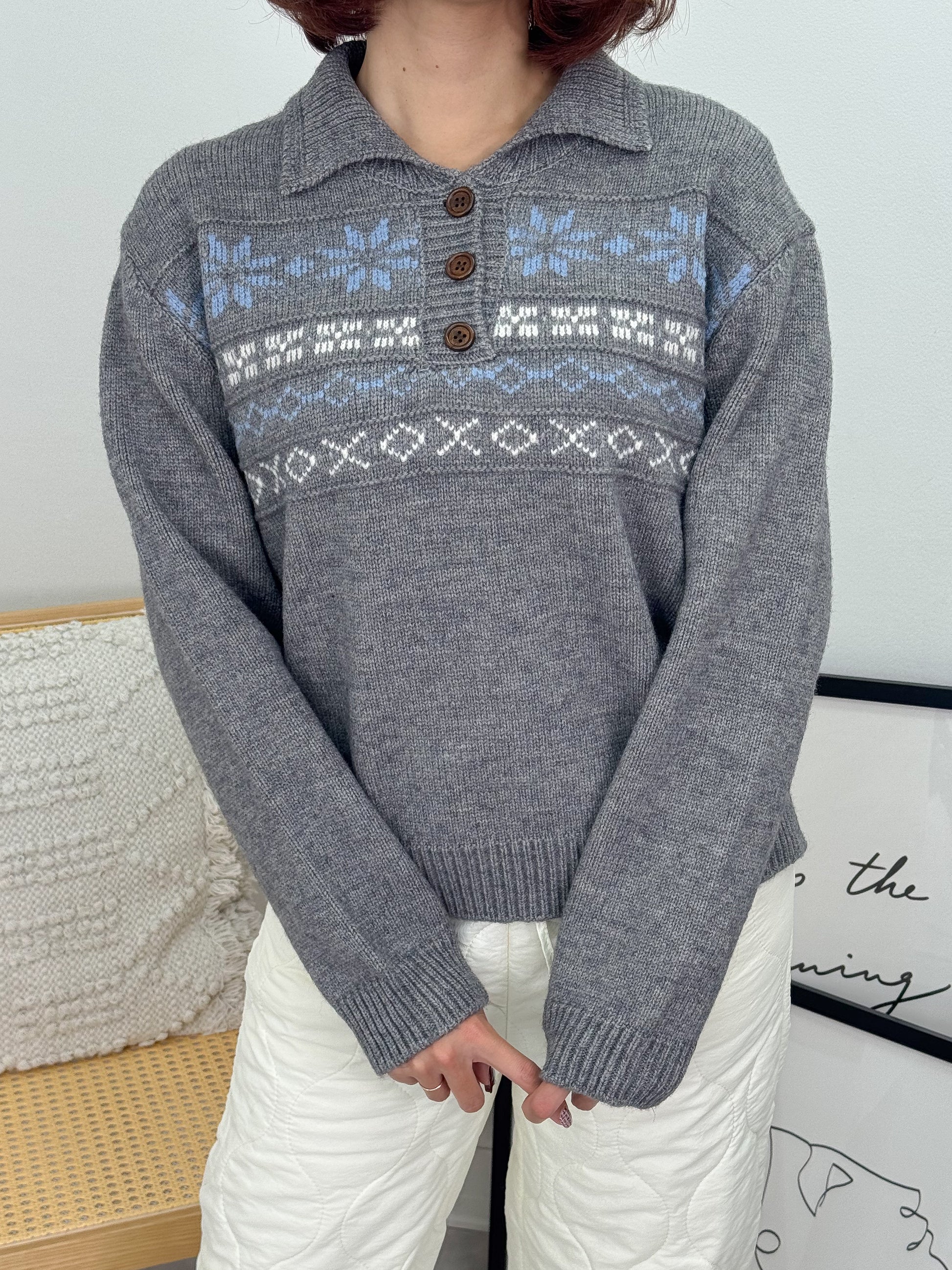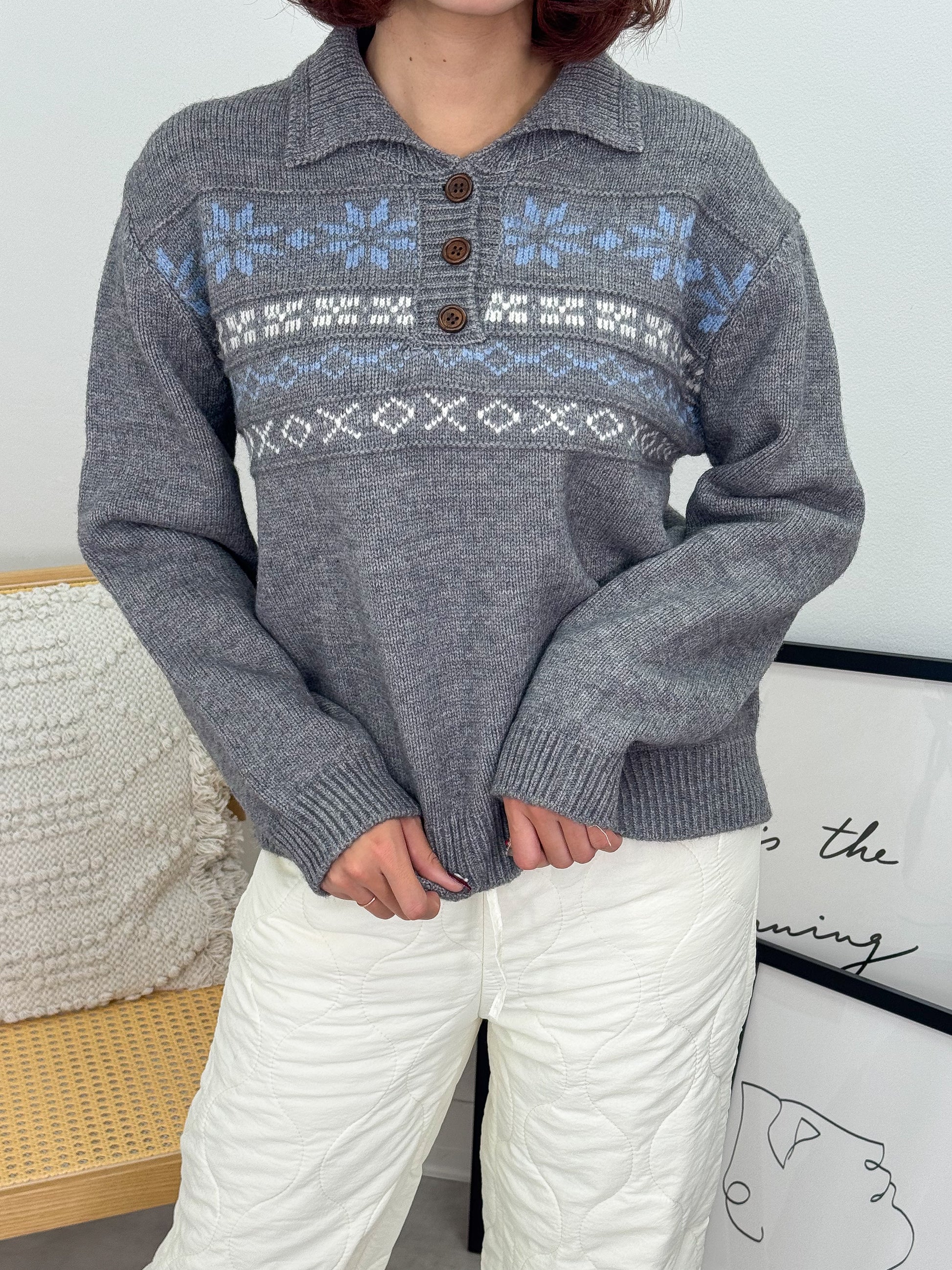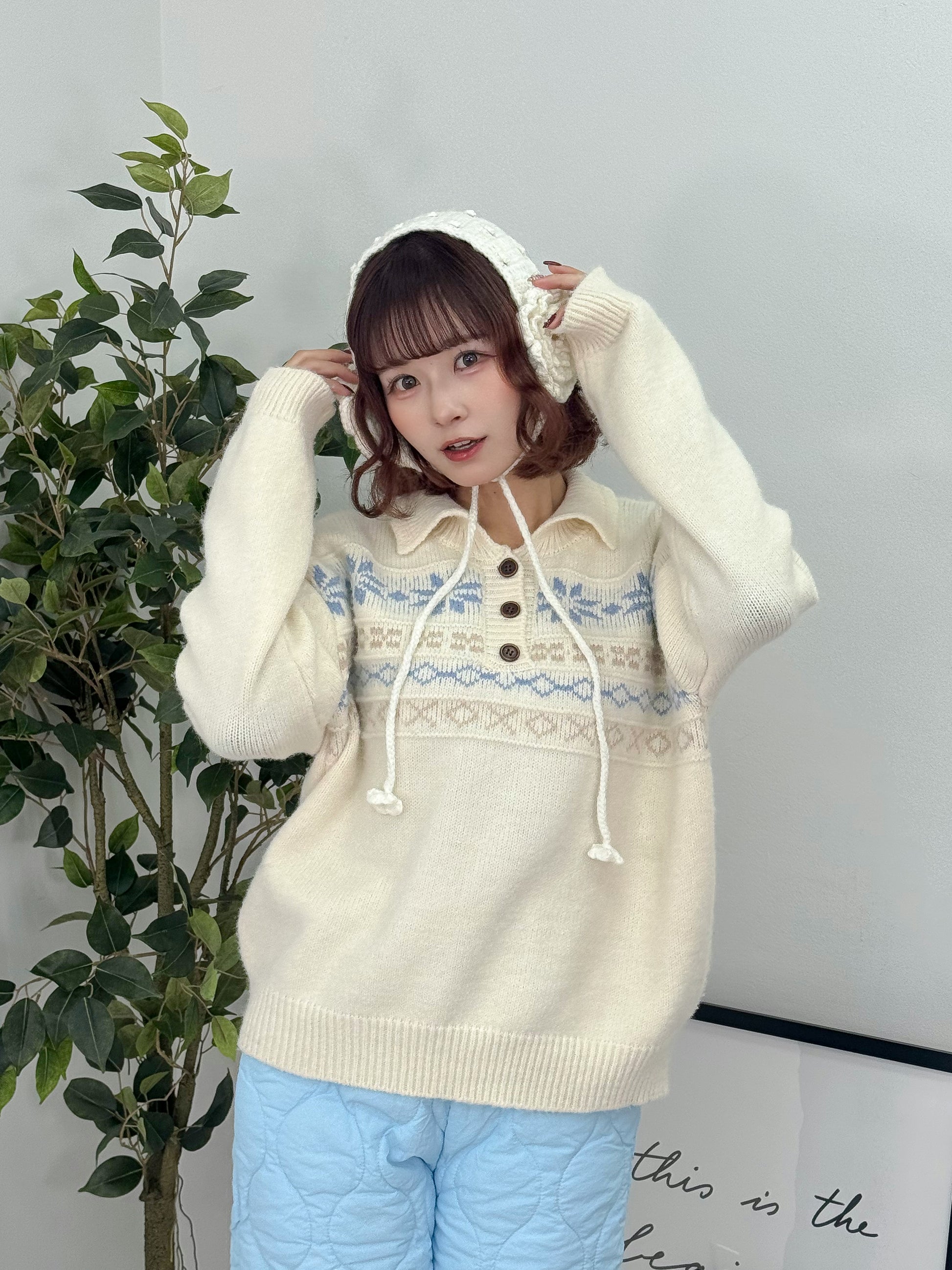 ノルディックオーバーサイズニットポロ