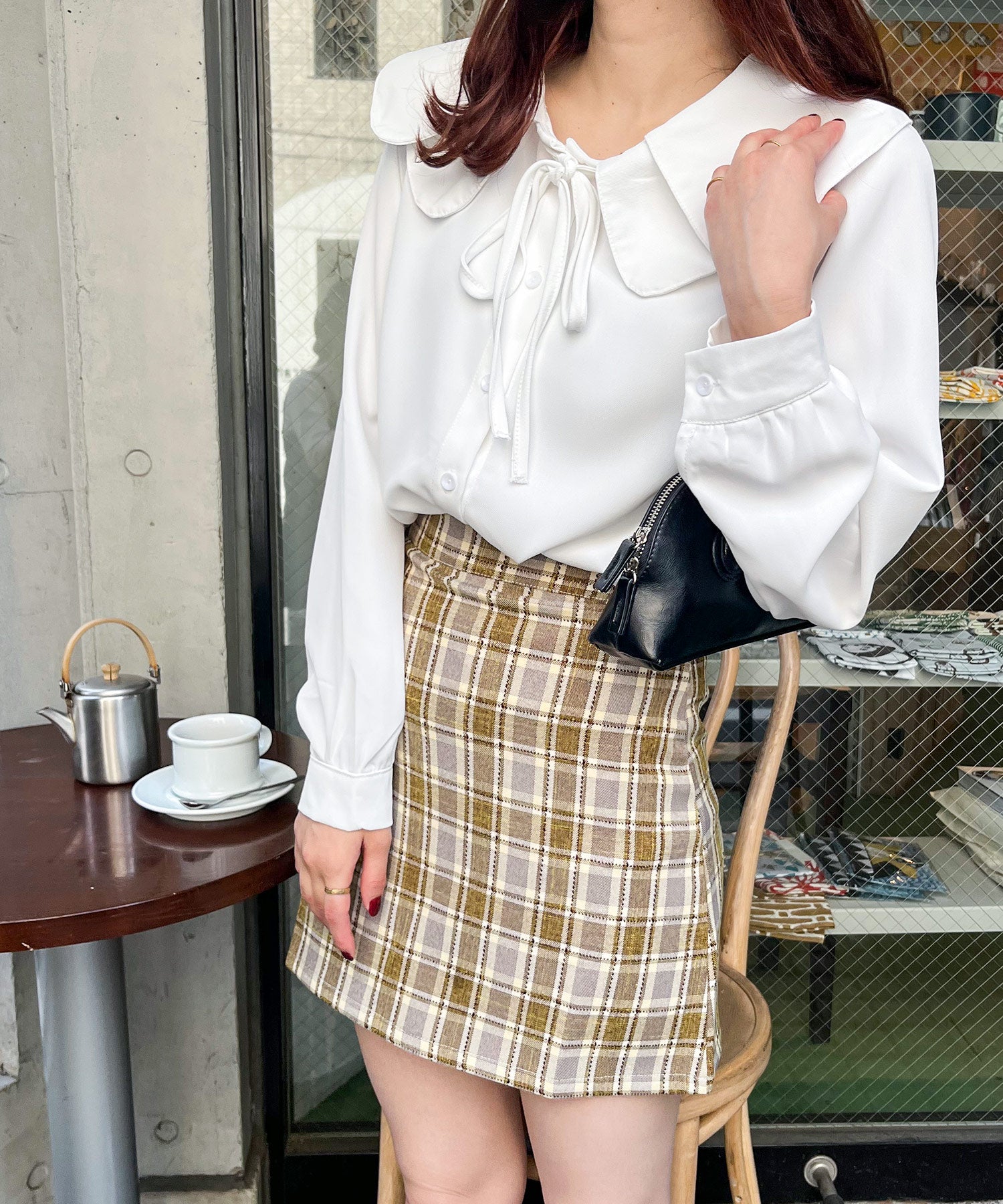 甘めブラウスに合わせてとことんガーリーに仕上げるのもおすすめです?