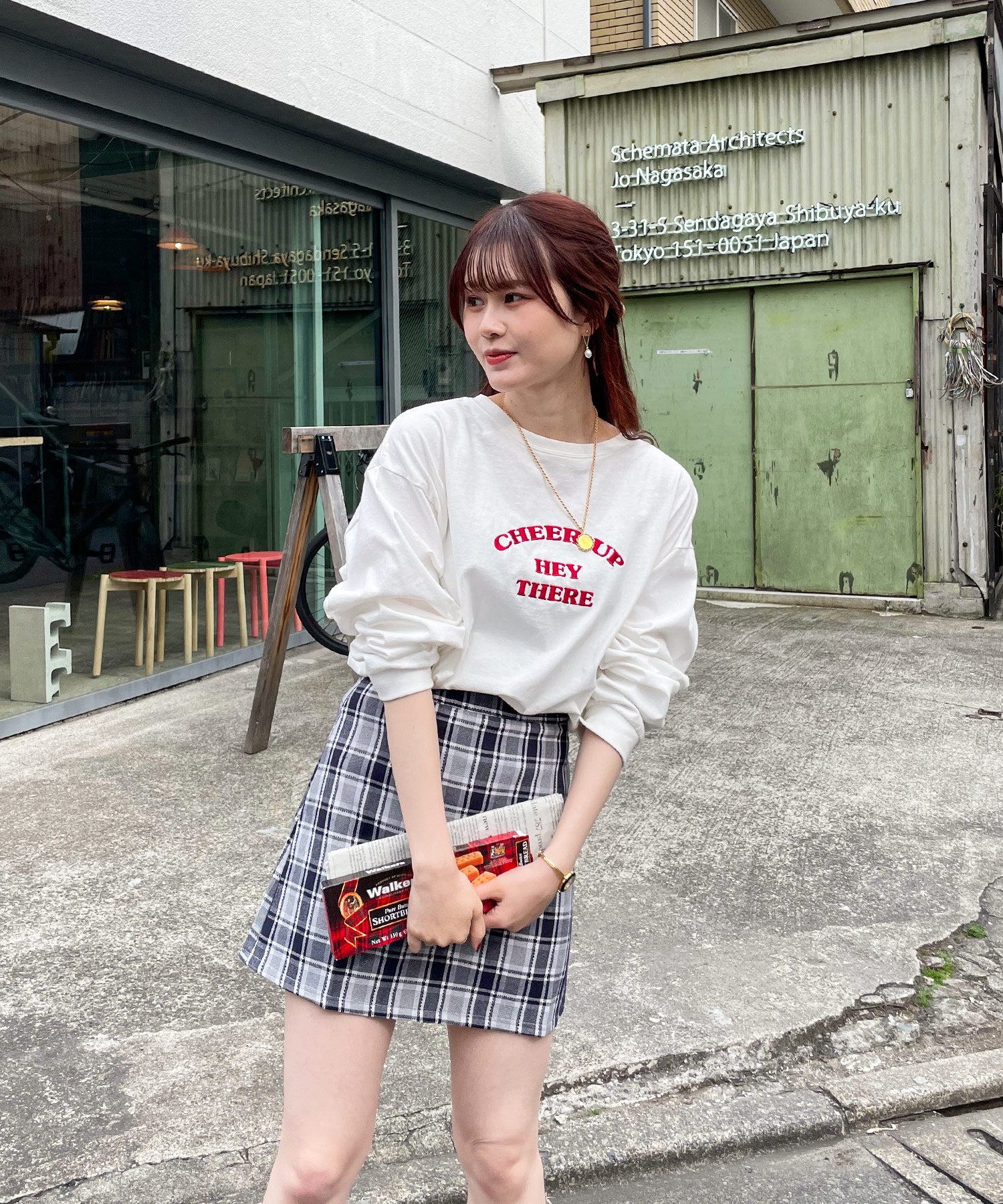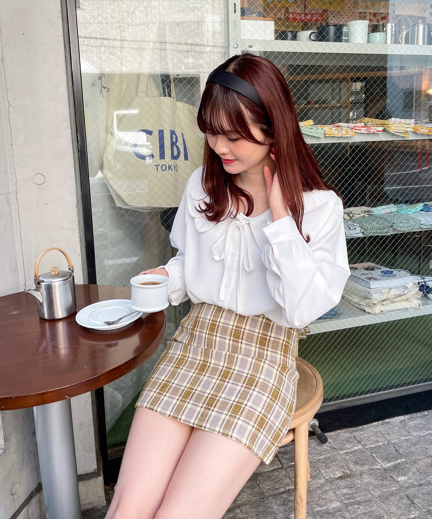 柔らかな色味のチェック柄ミニスカート