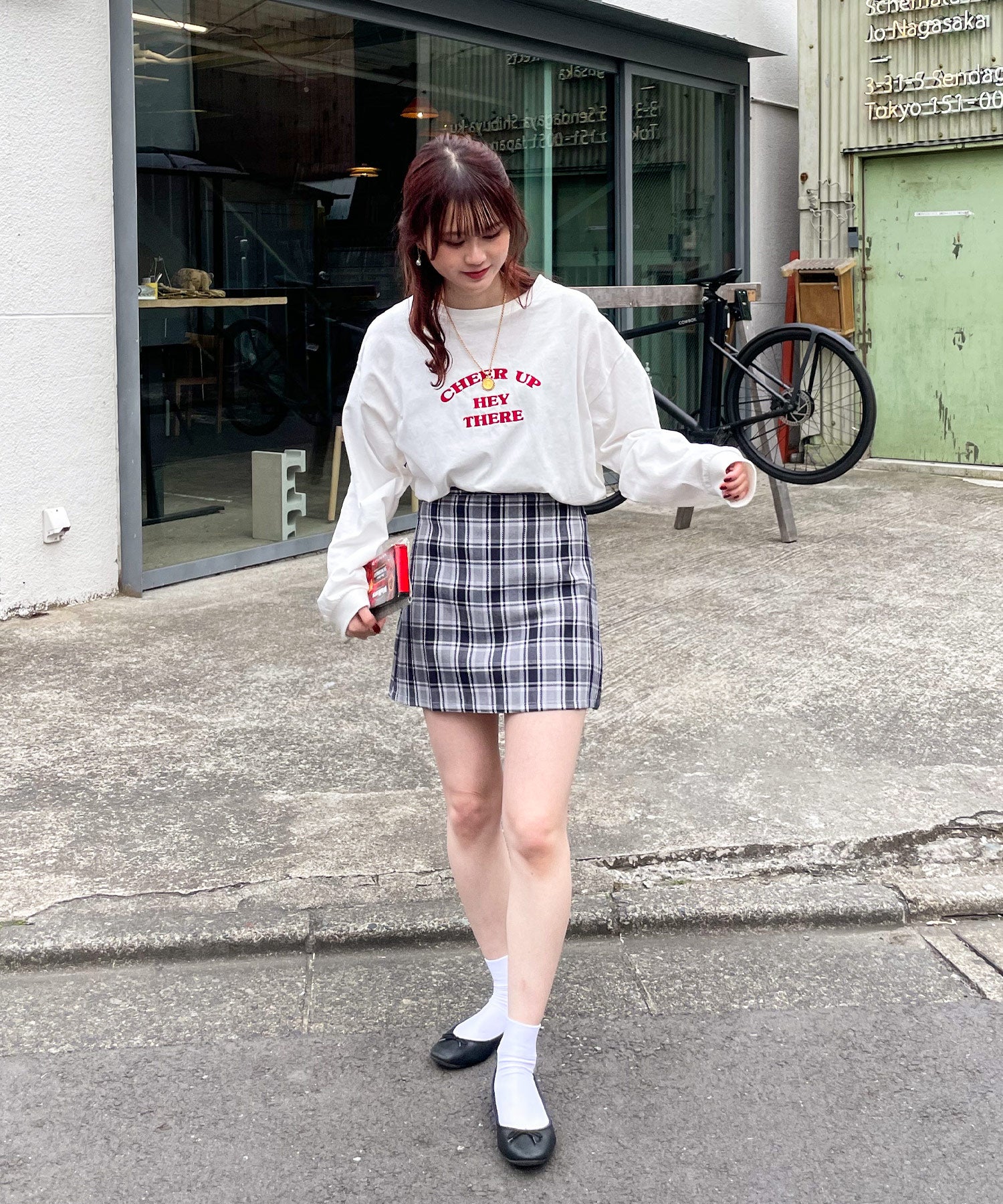 ロンTに合わせてカジュアルガーリーに仕上げるほか、