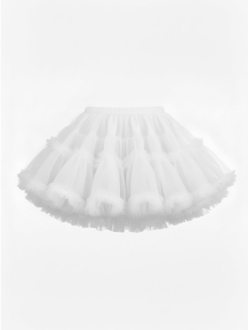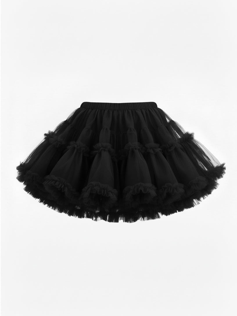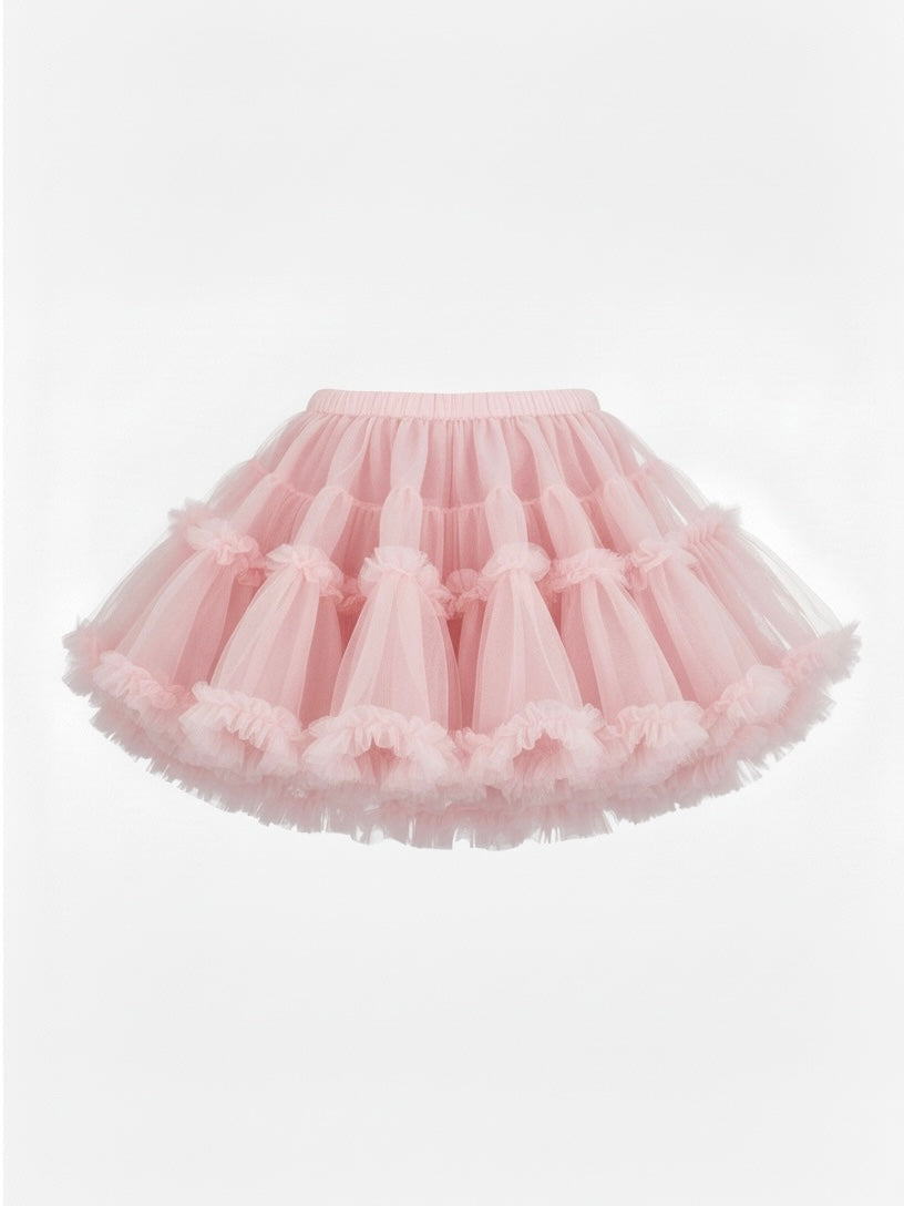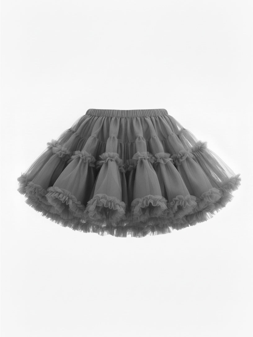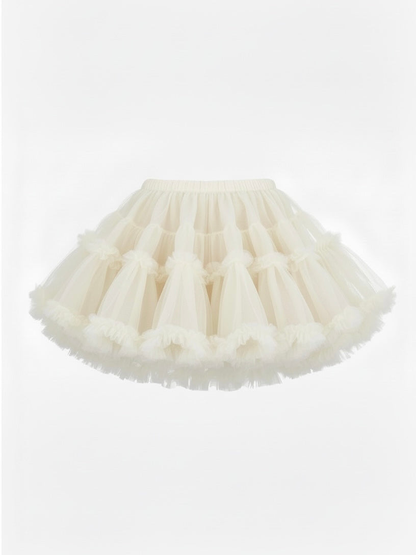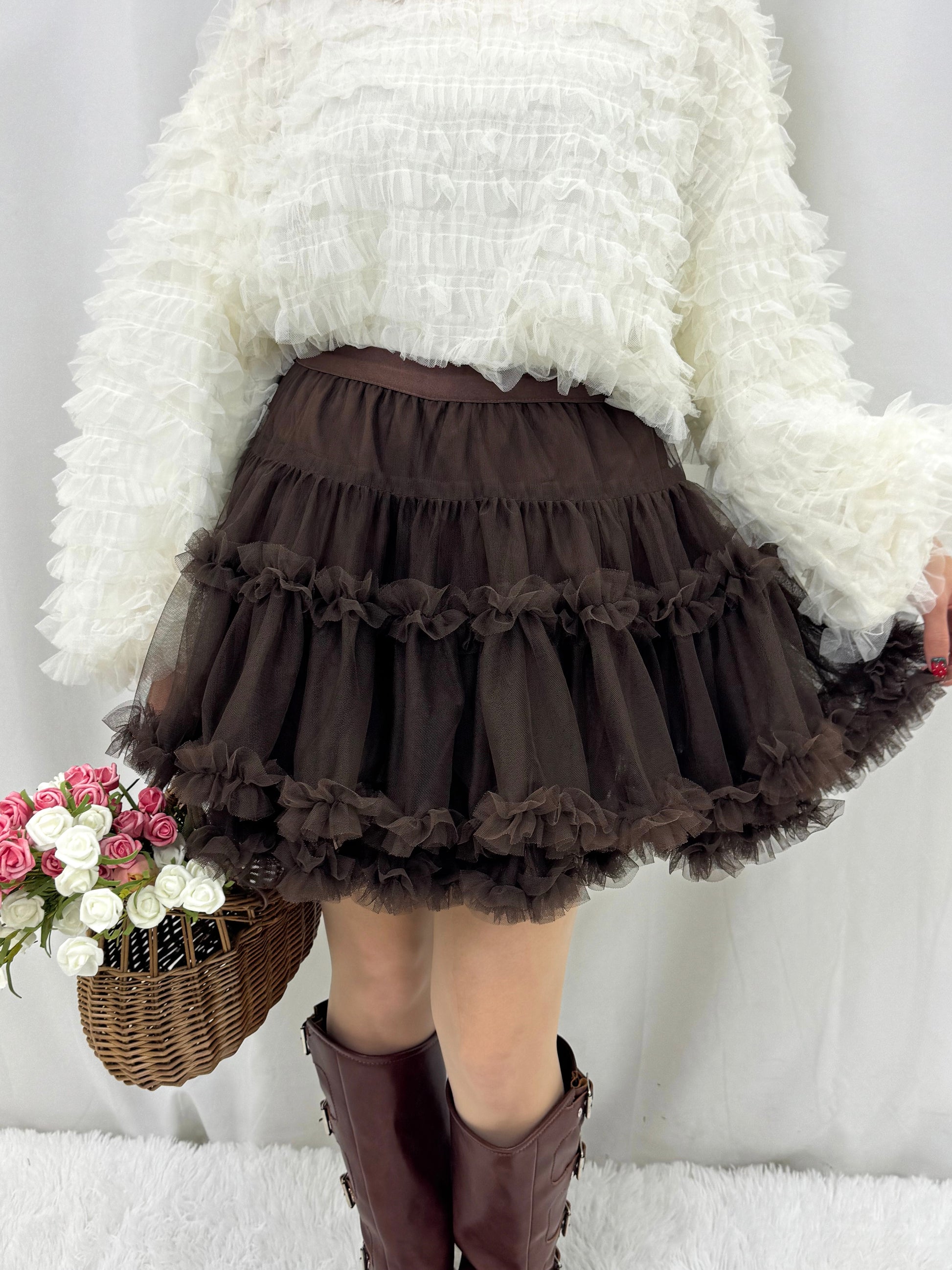チュールスカートの甘い印象から様々な着こなしが可能に。