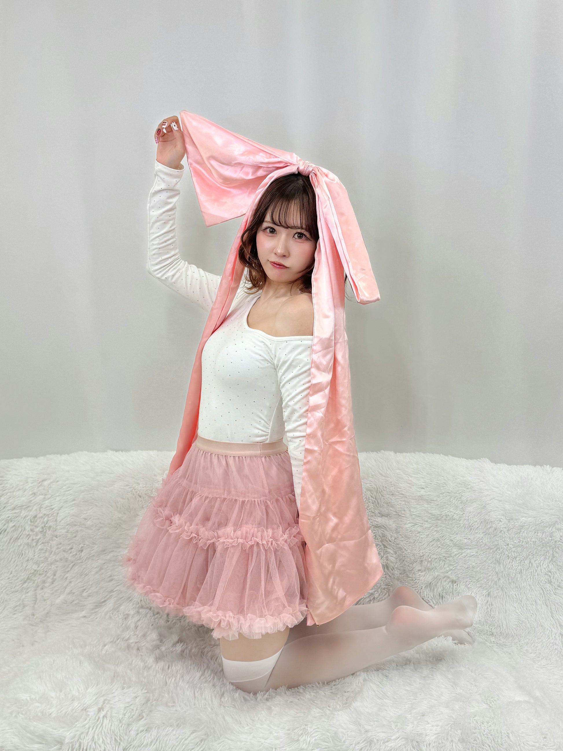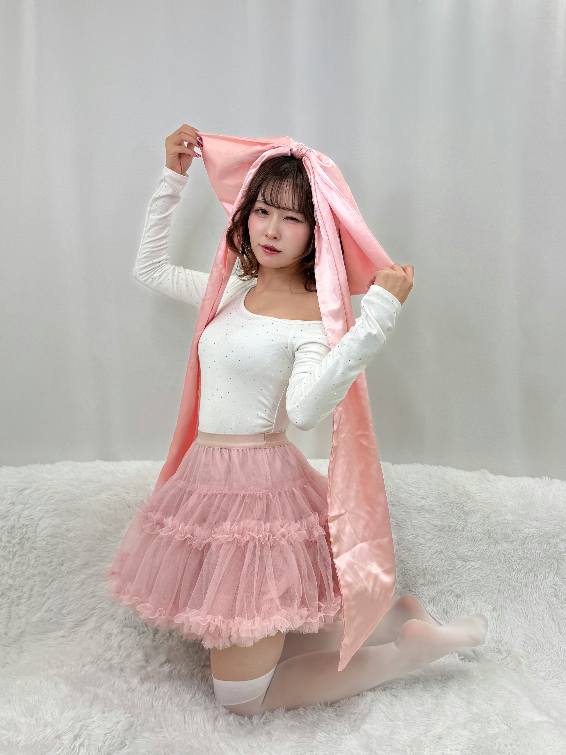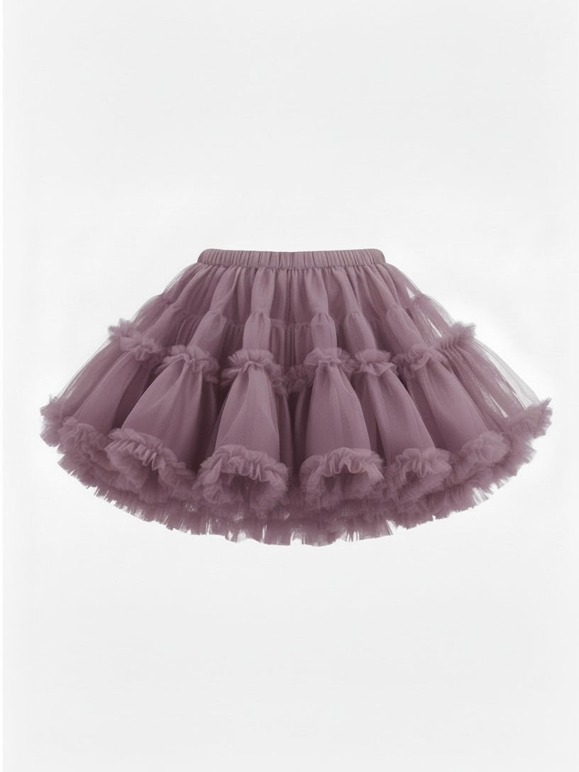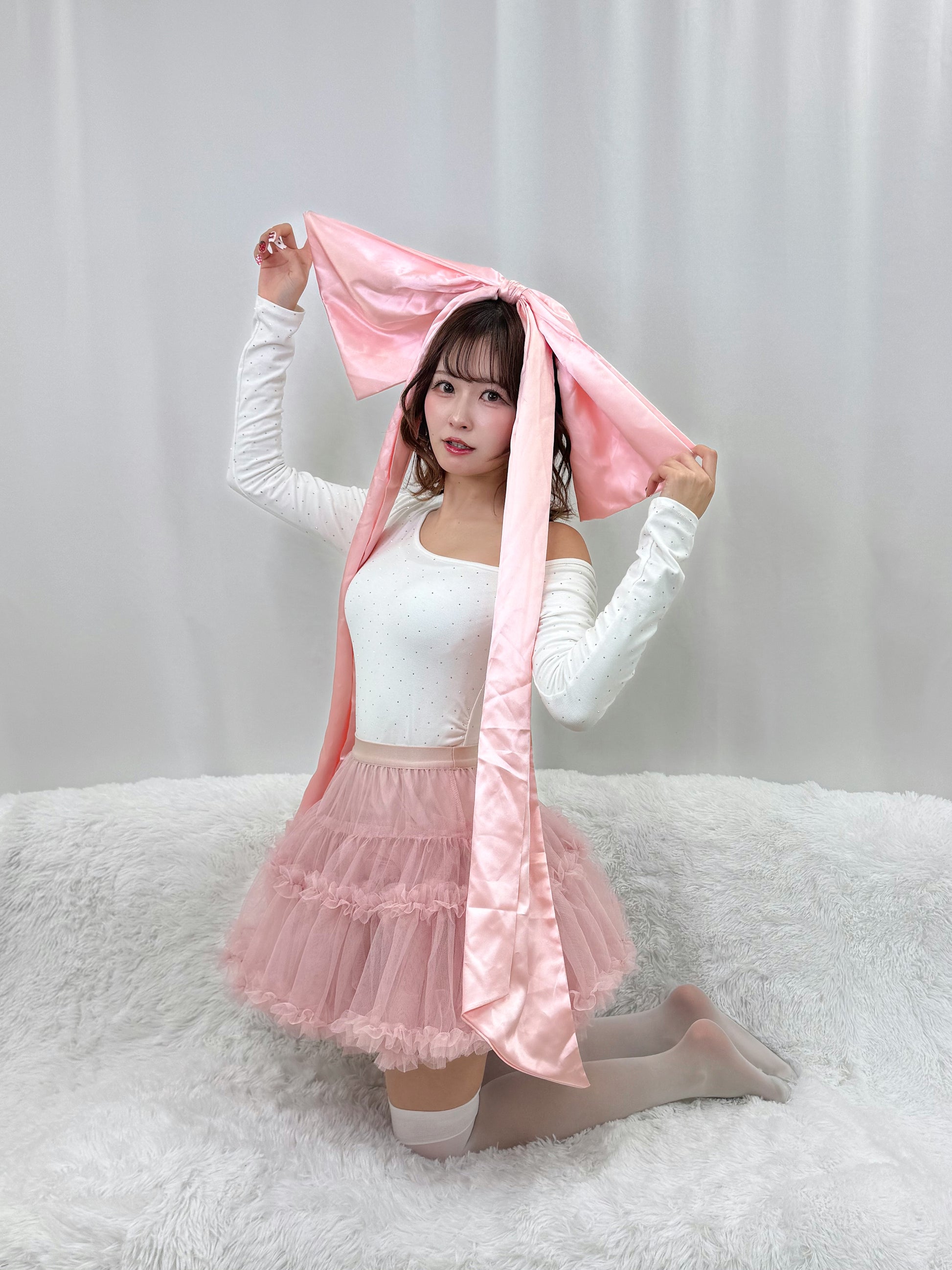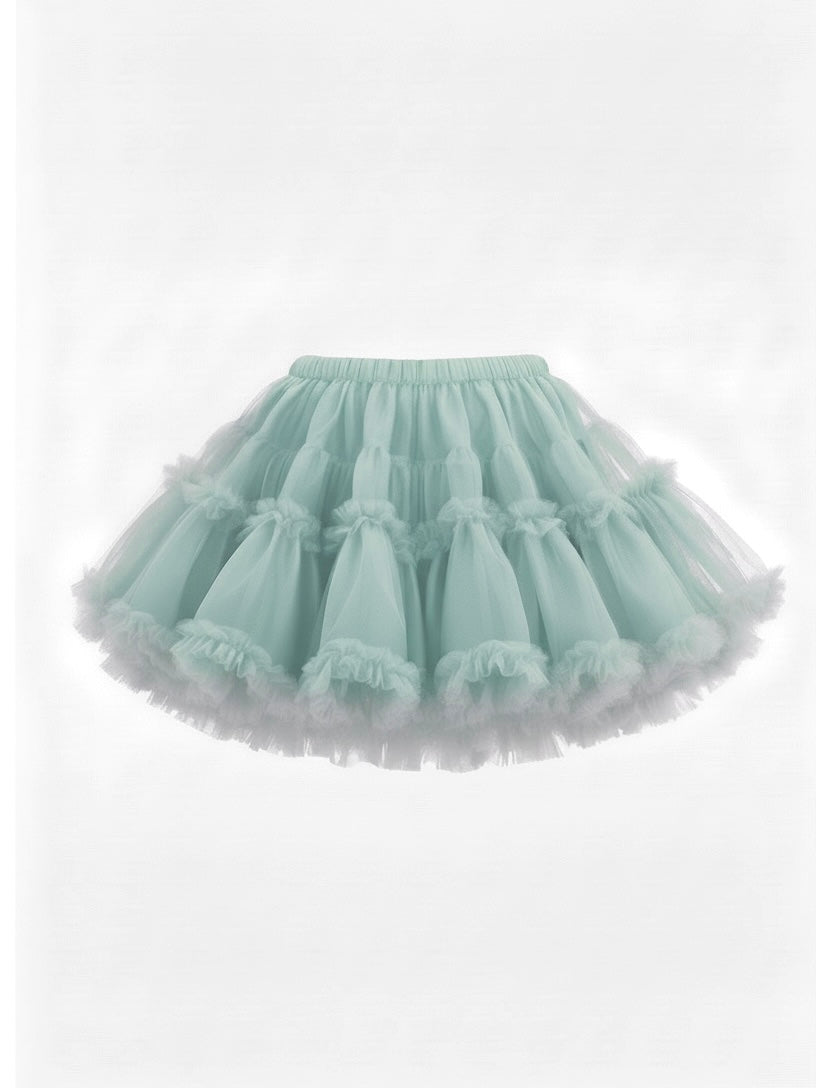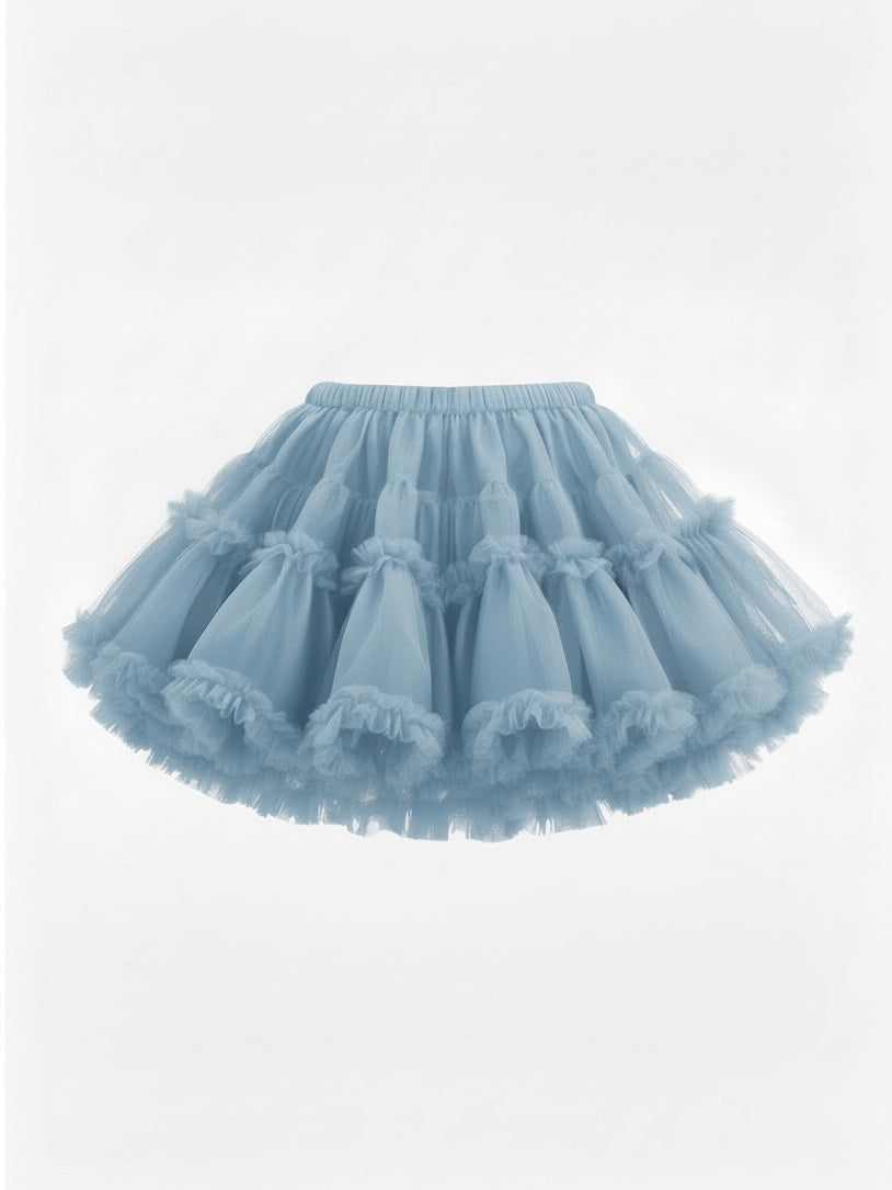 チュールスカートの甘い印象から様々な着こなしが可能に。