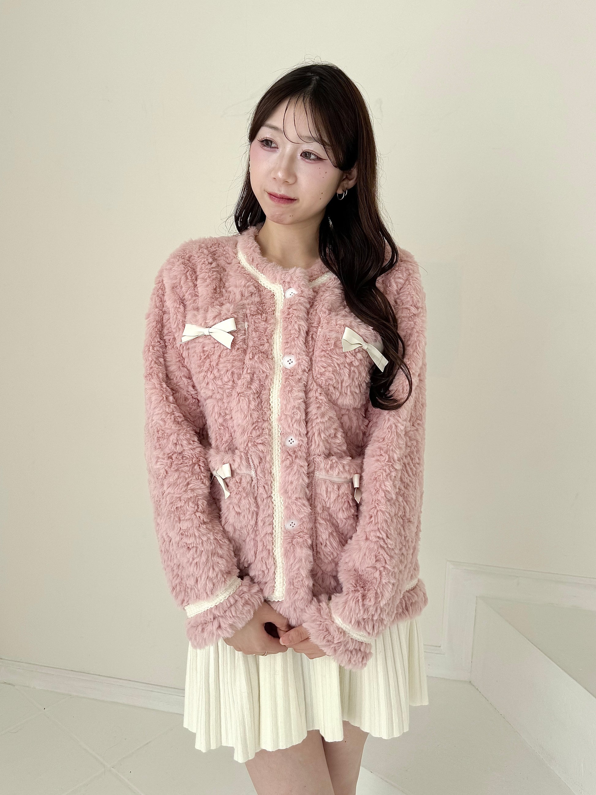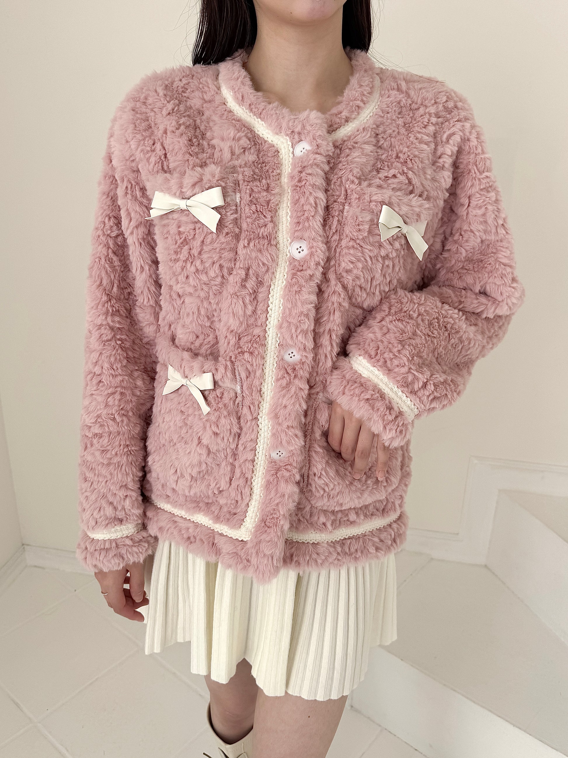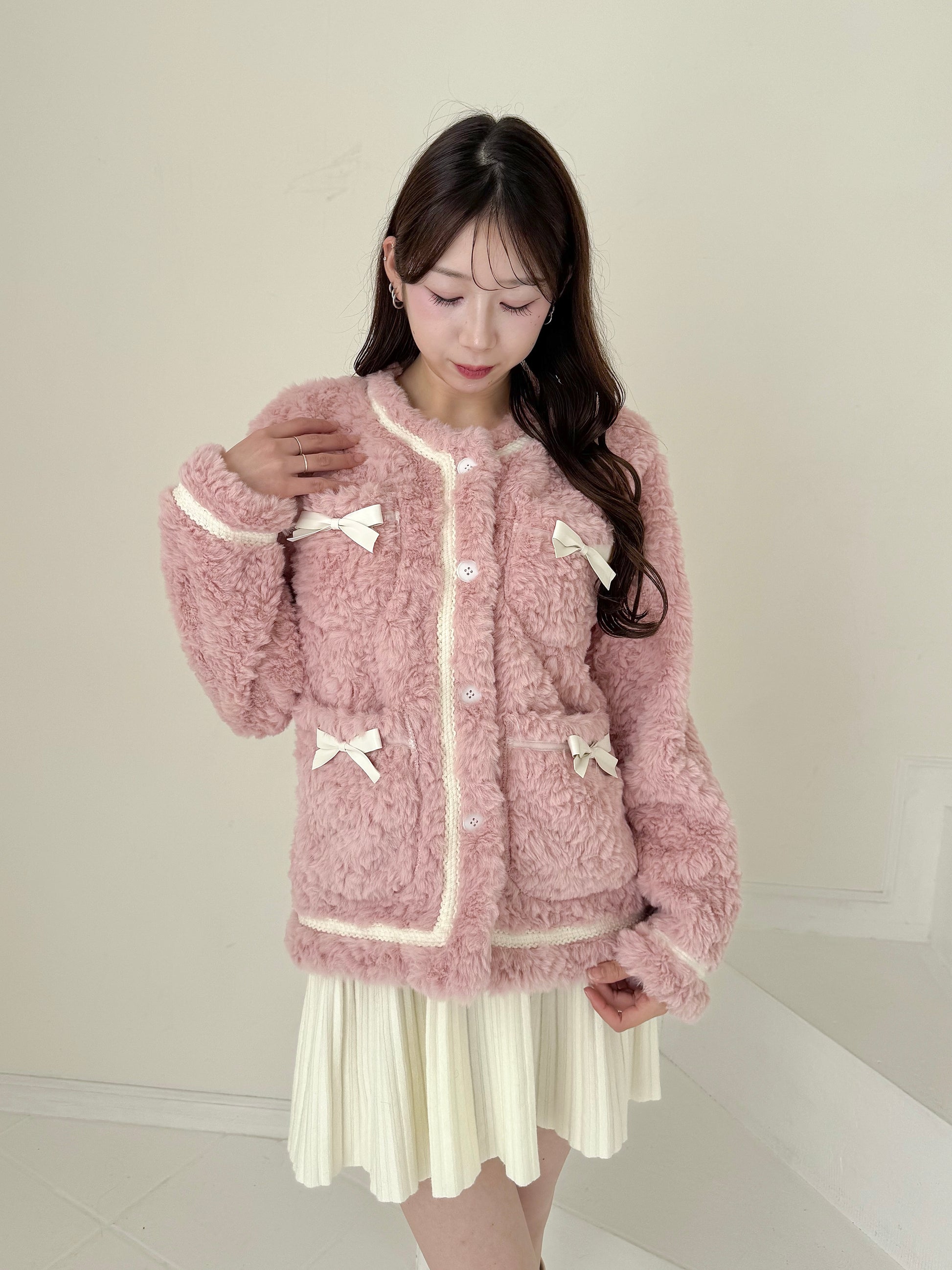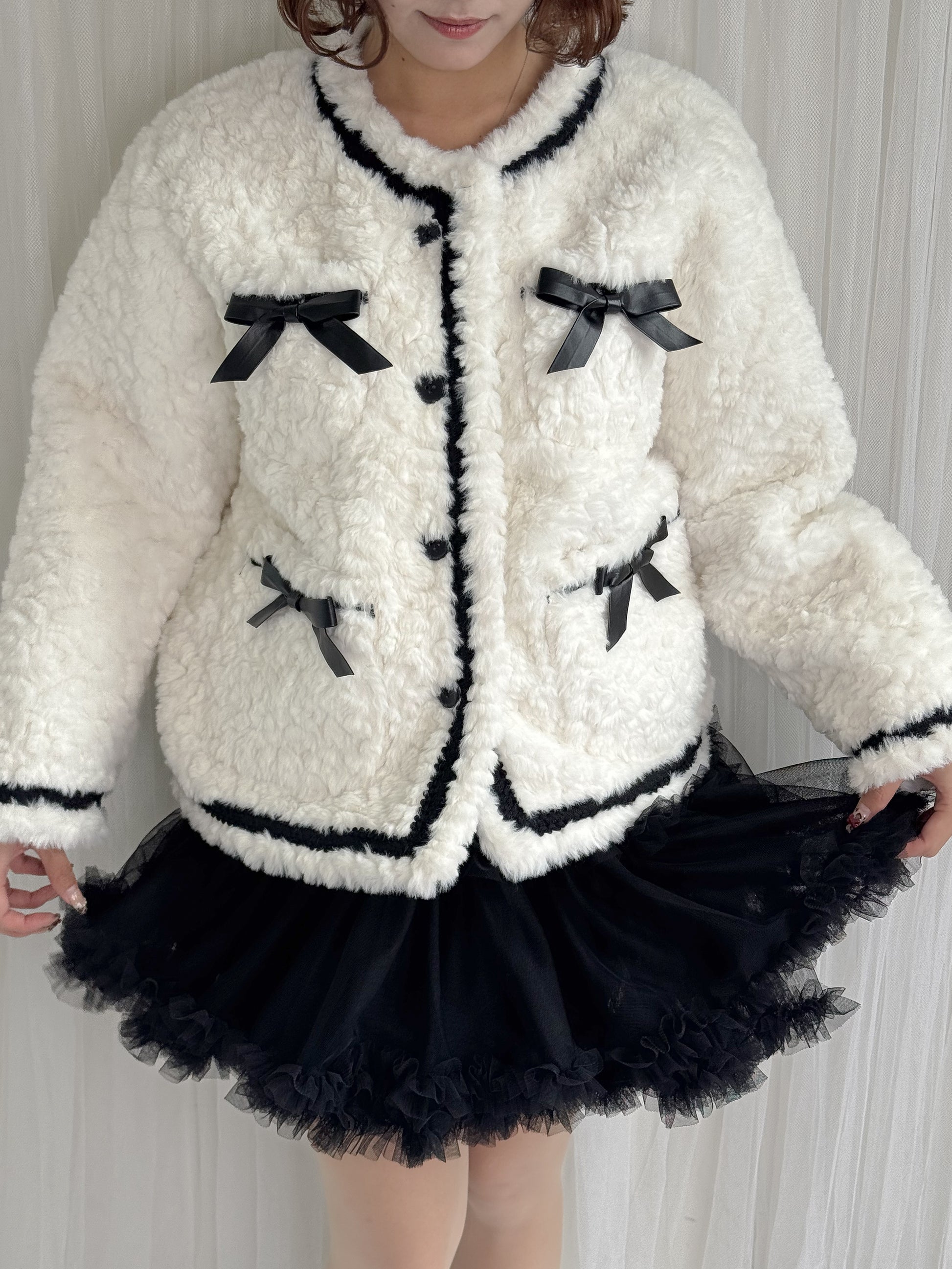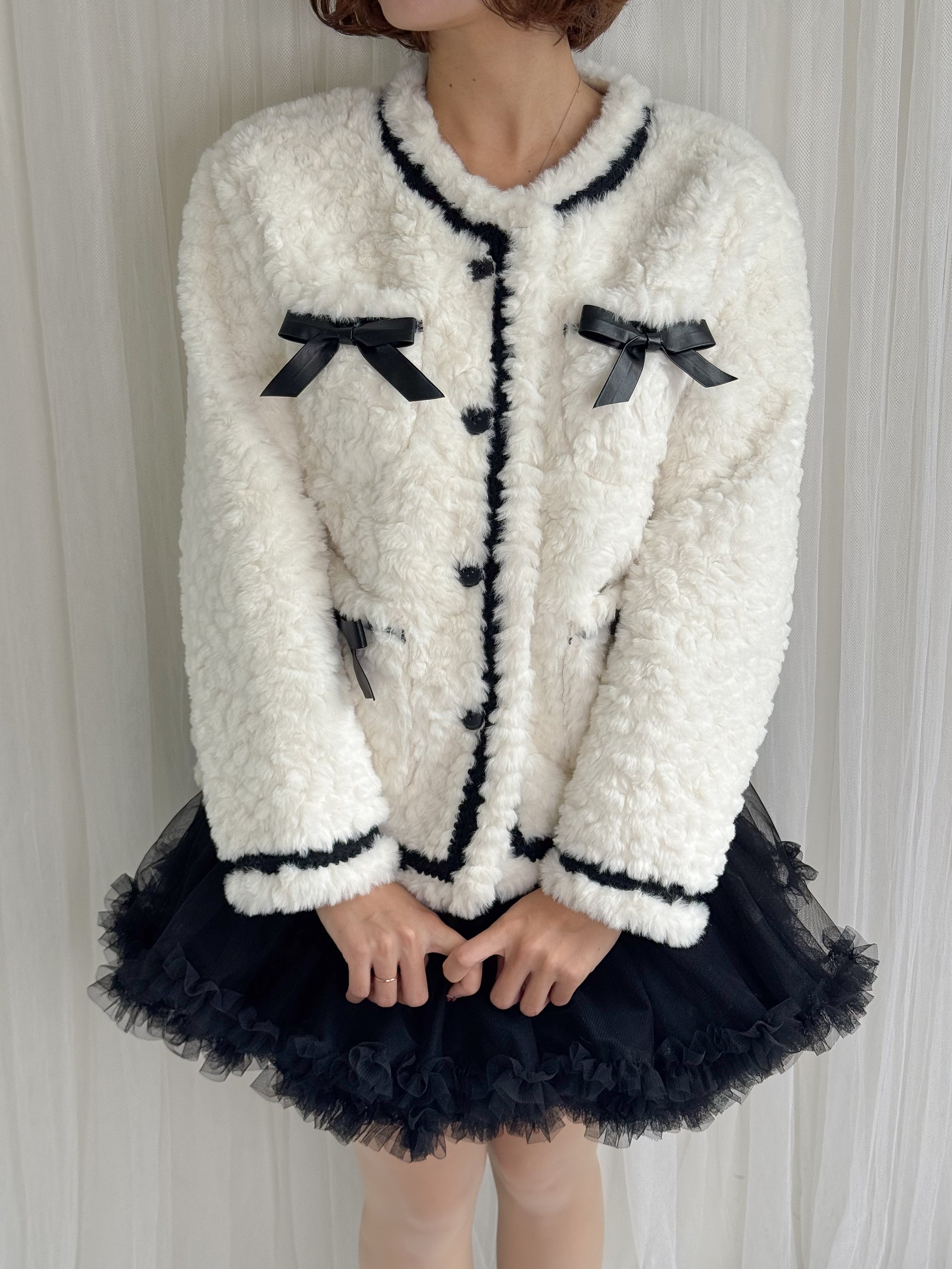 リボン付きガーリーファージャケット