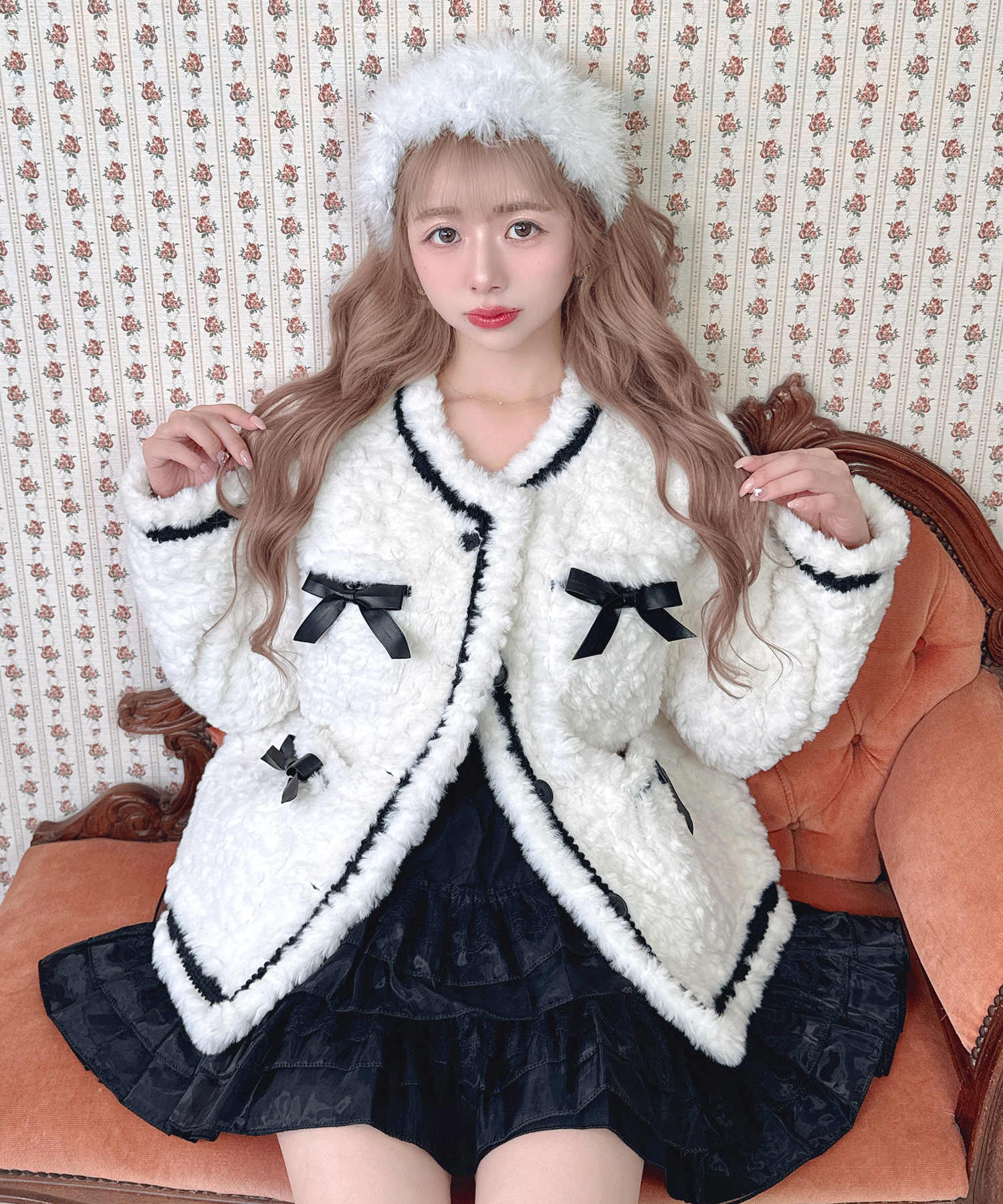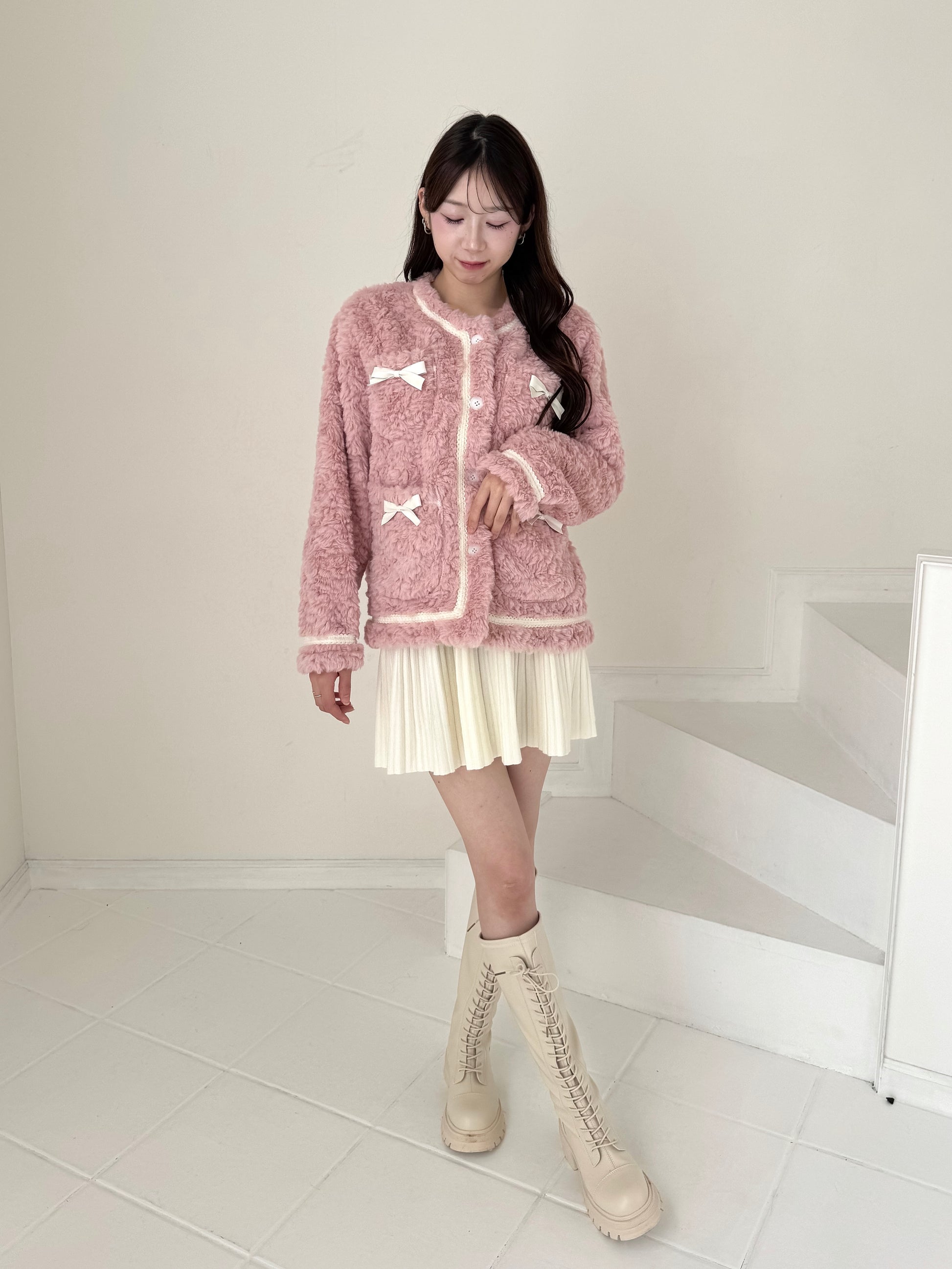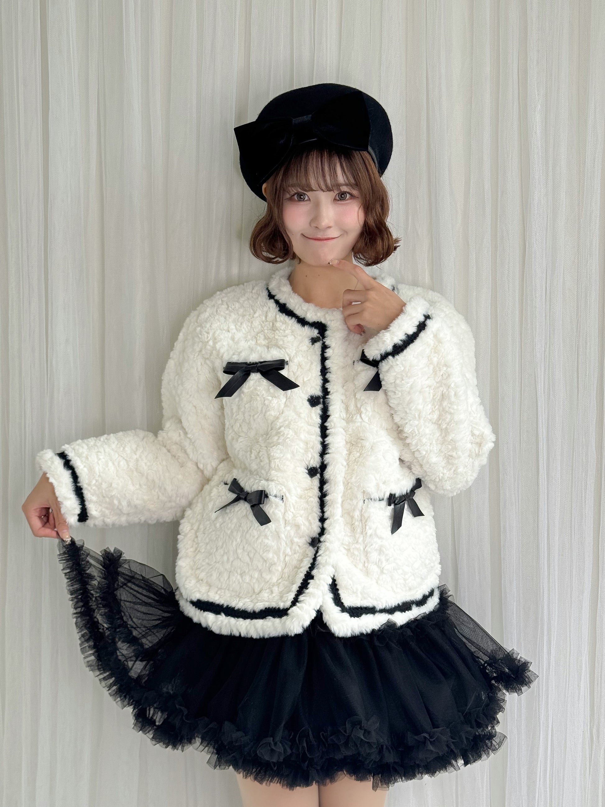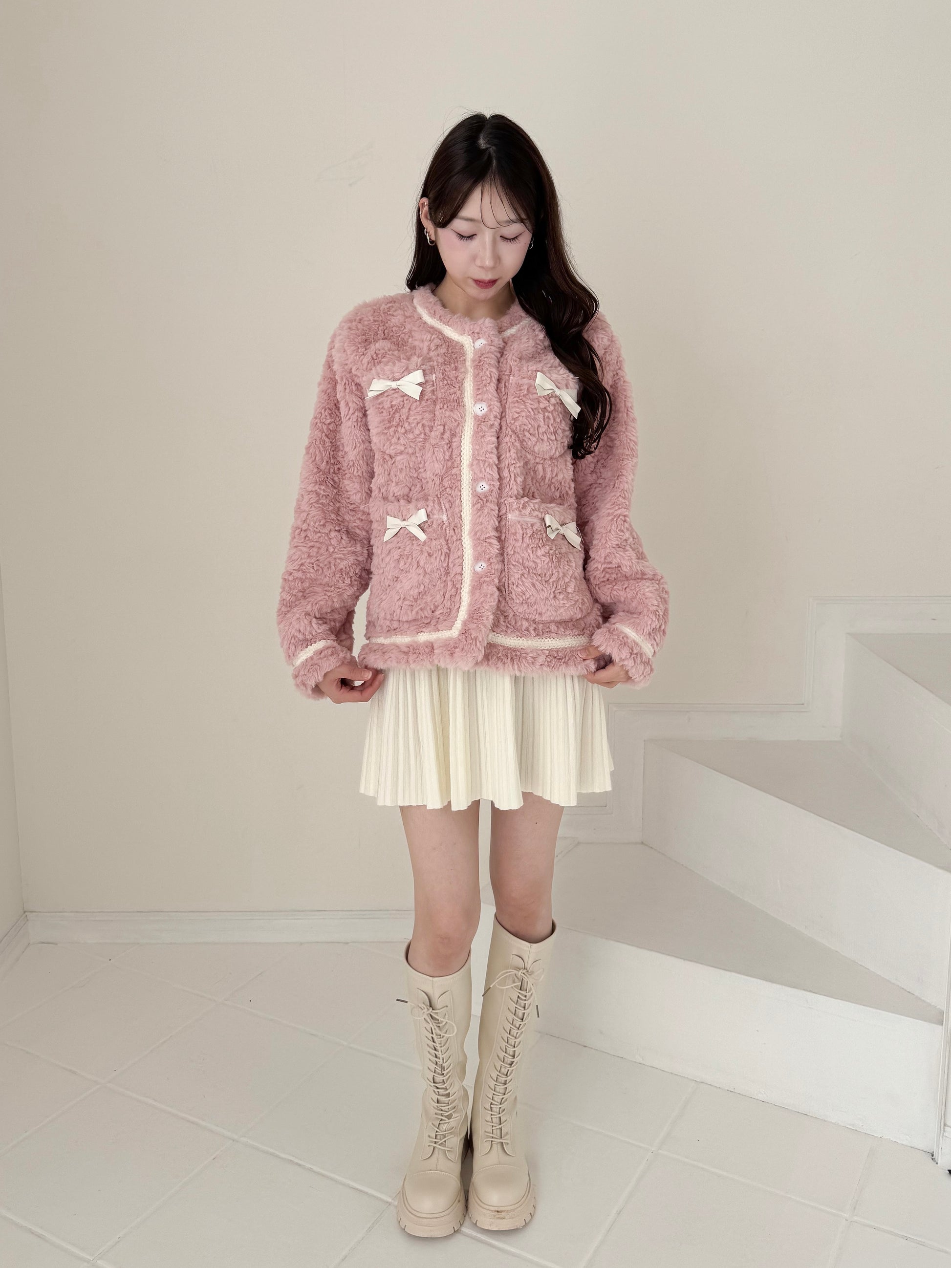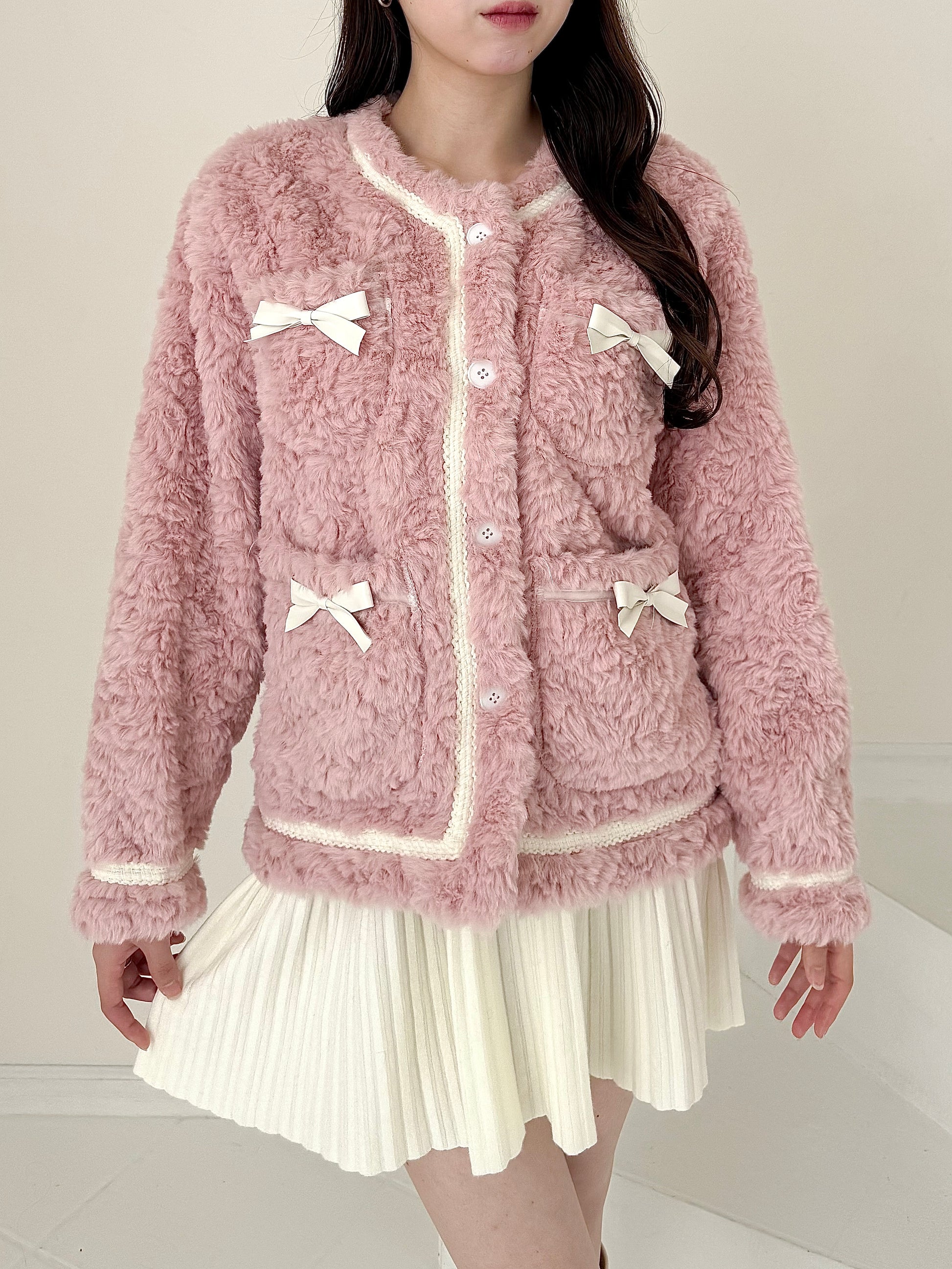 リボン付きガーリーファージャケット