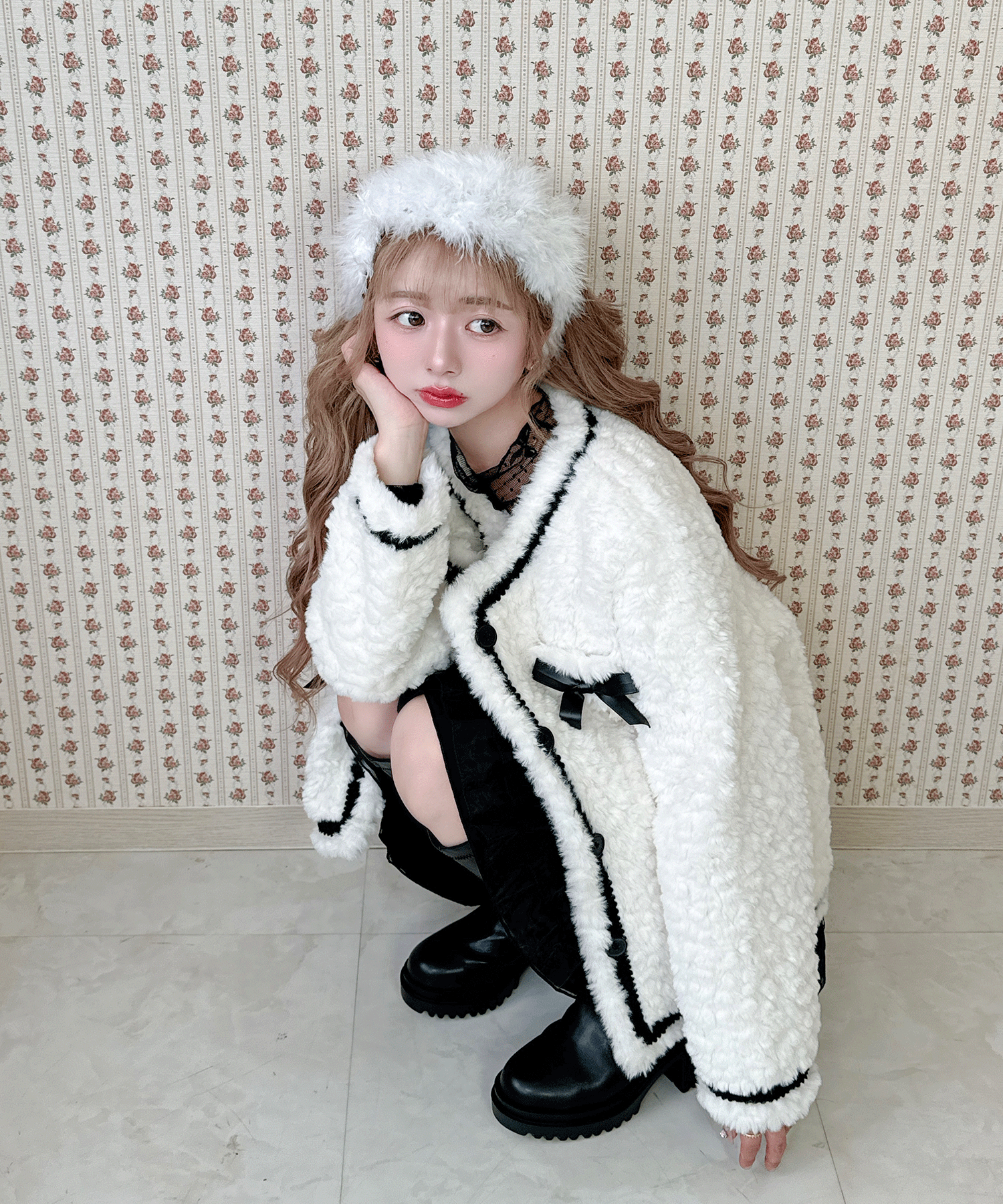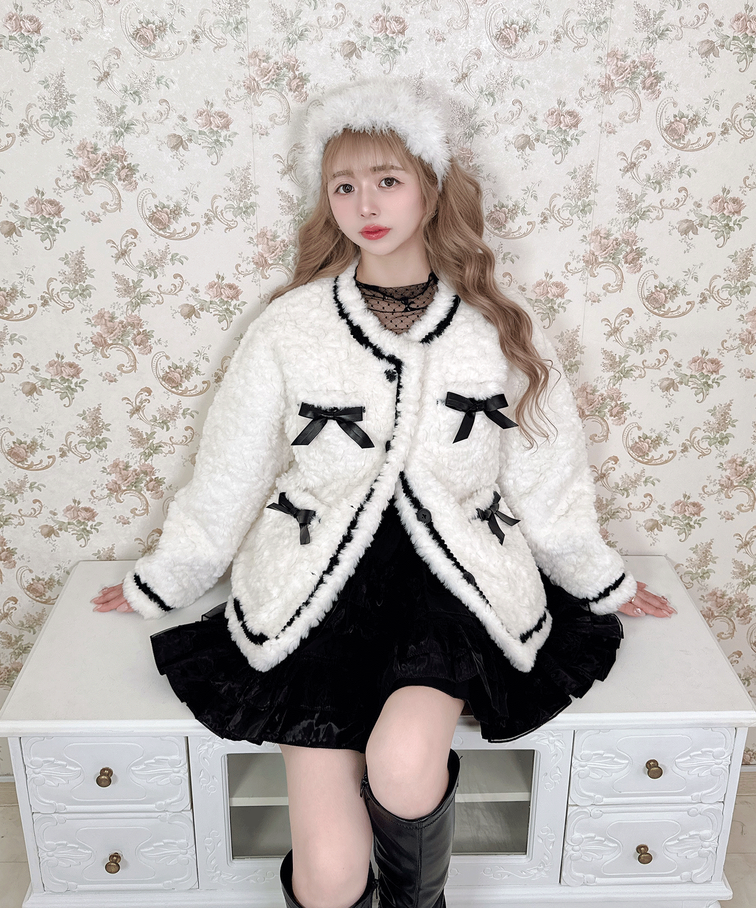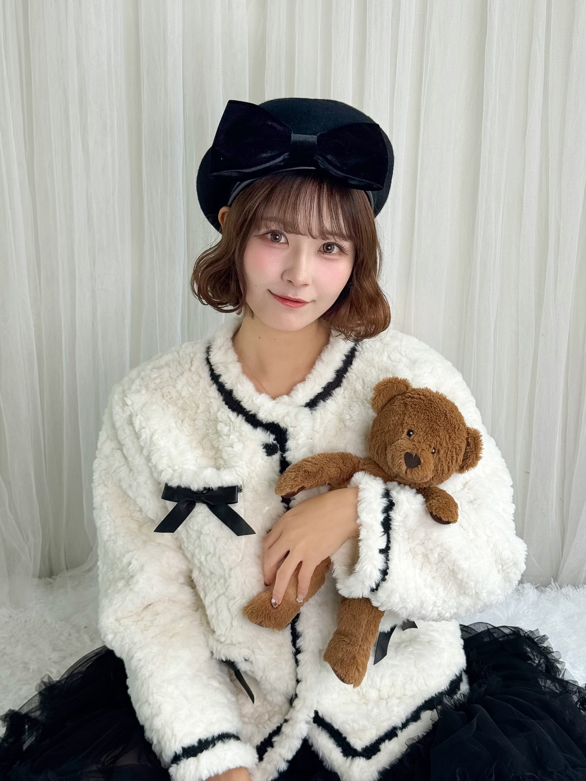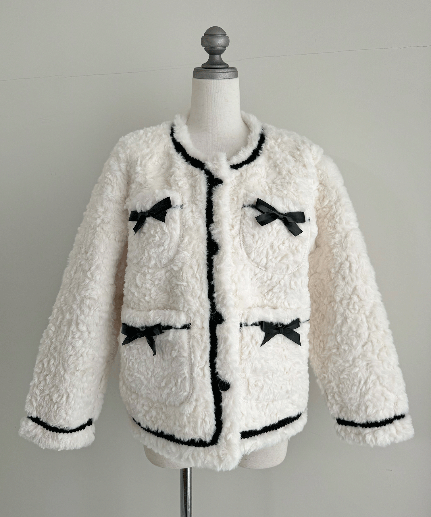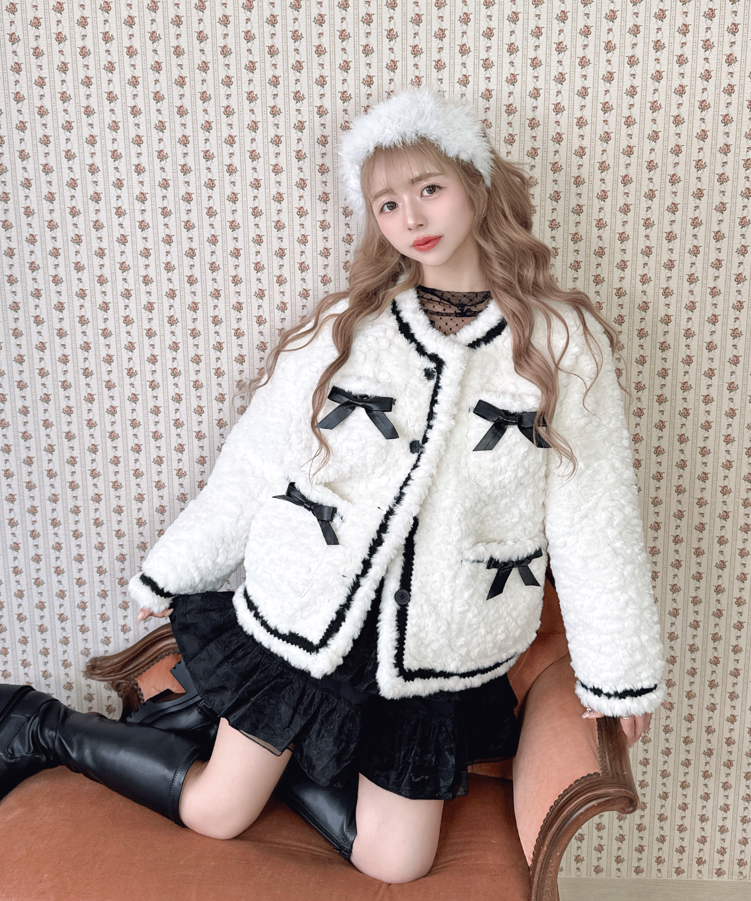 リボン付きガーリーファージャケット