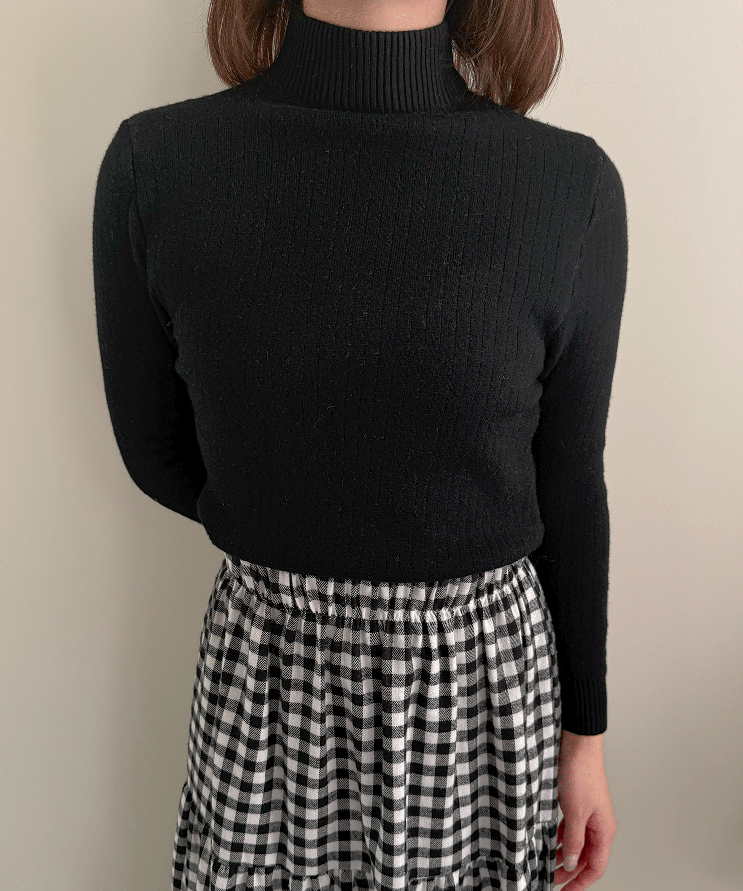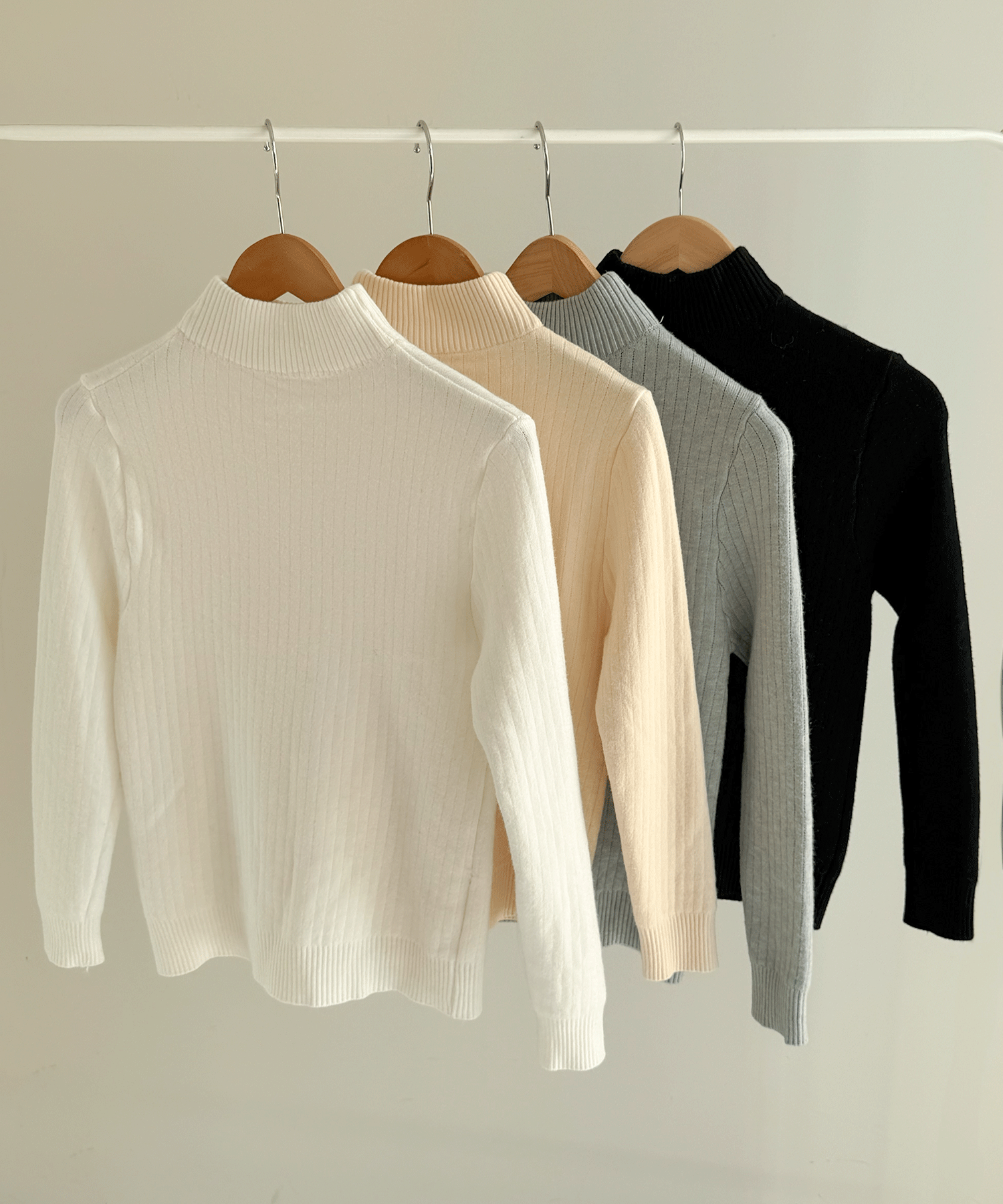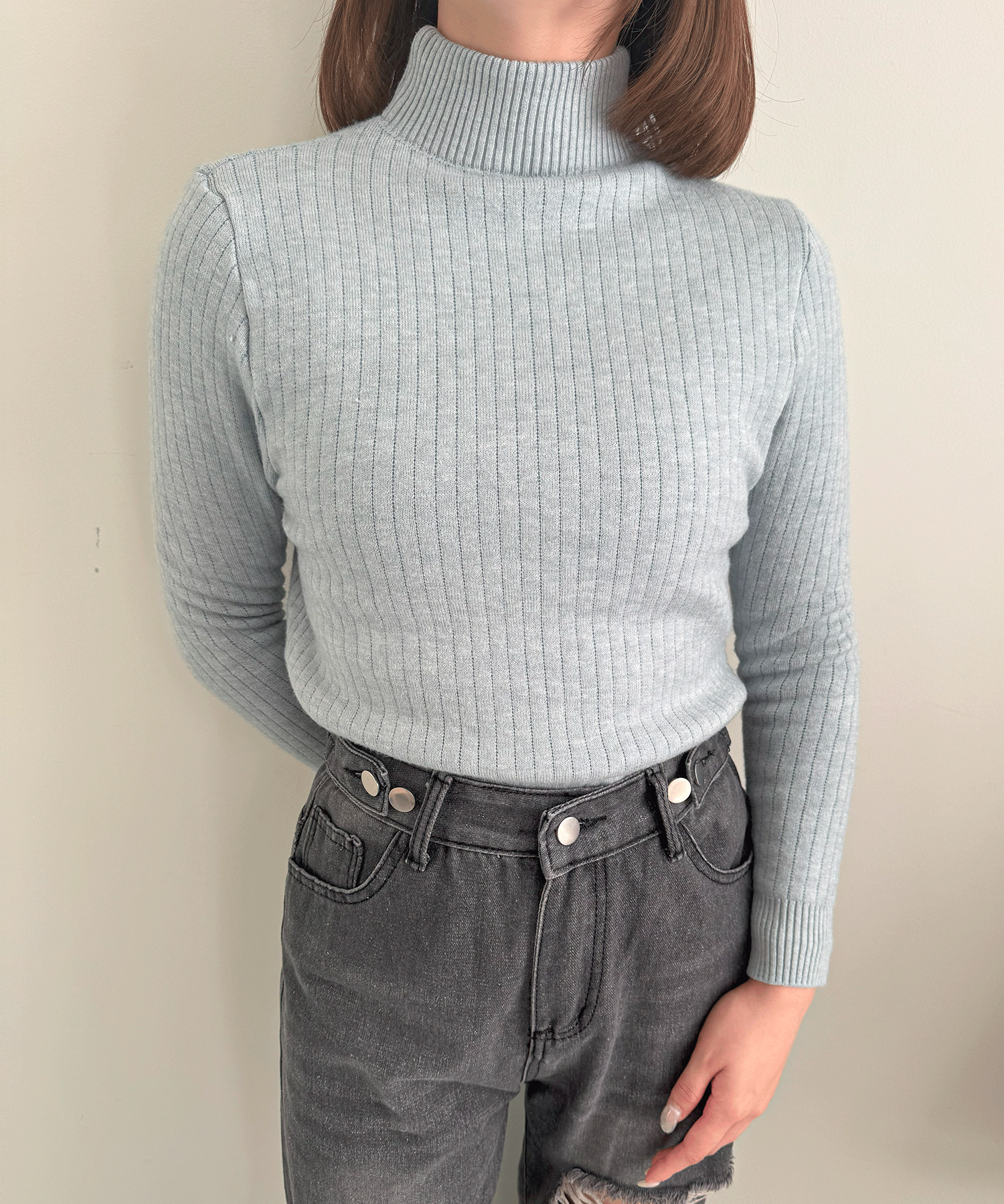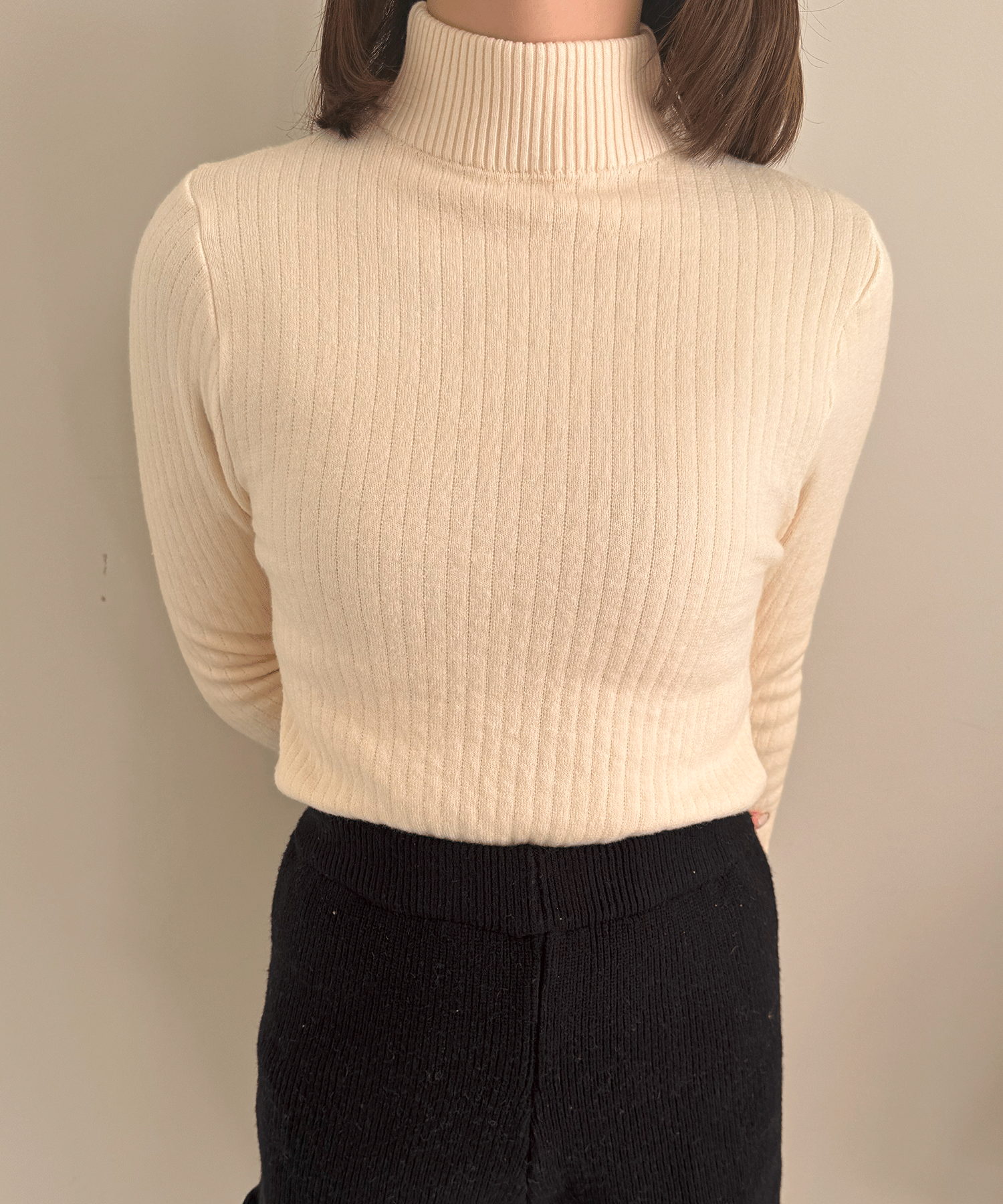 ハイネックのリブニット。