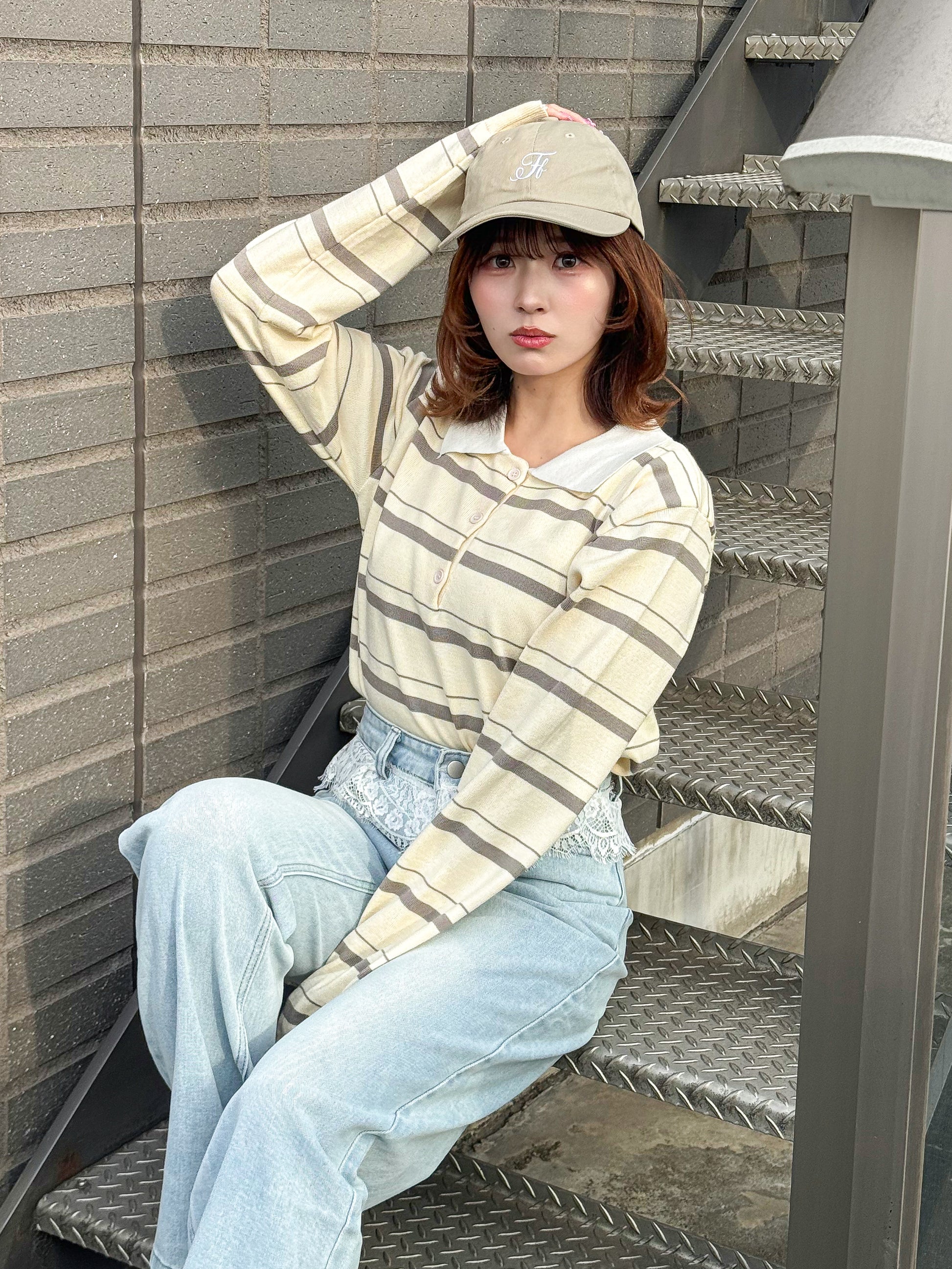 ストレートパンツで脚のラインを拾いにくいのがポイント。