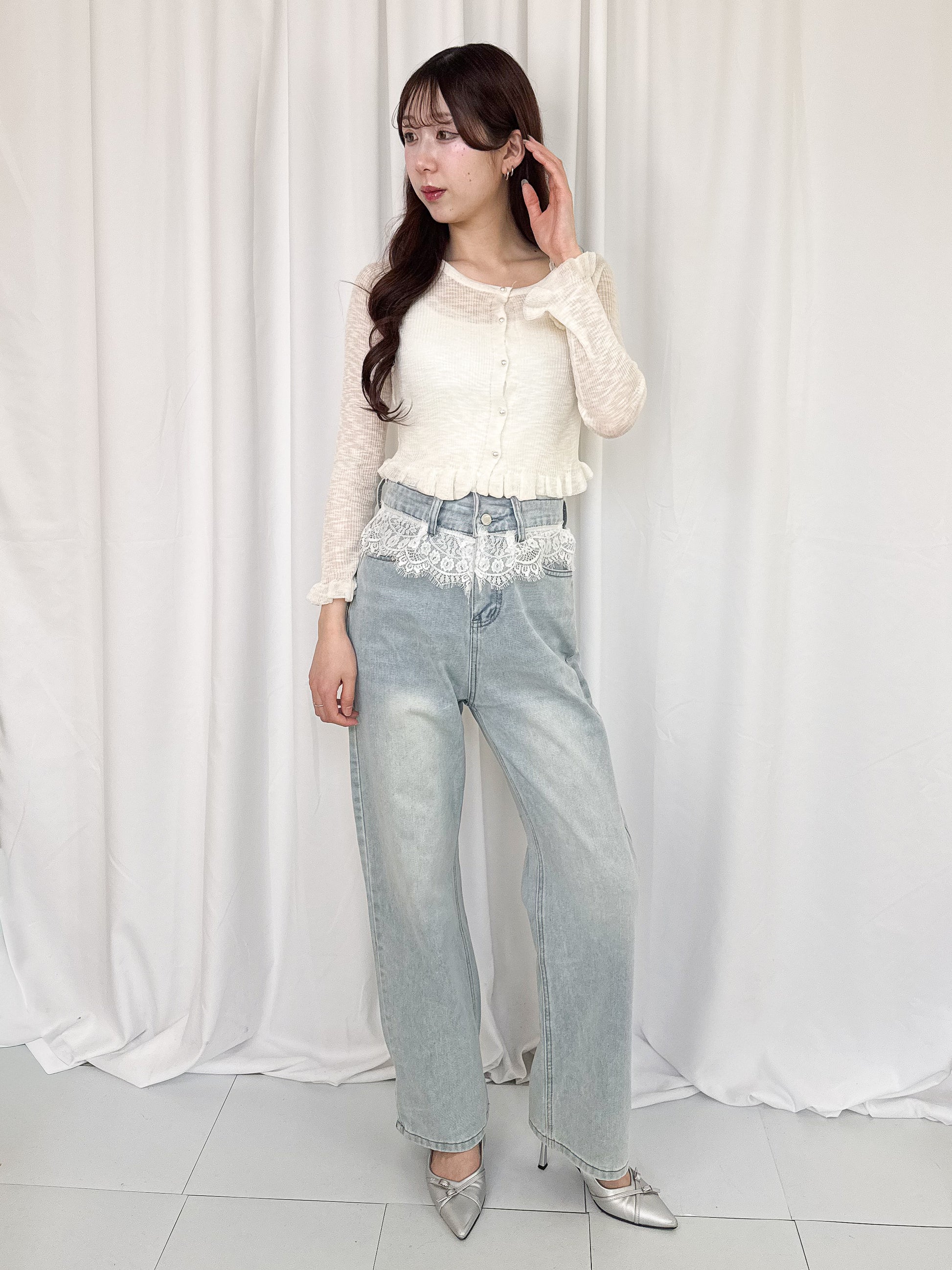 ウエストのレースがよりス細見えのアクセントにもなる。