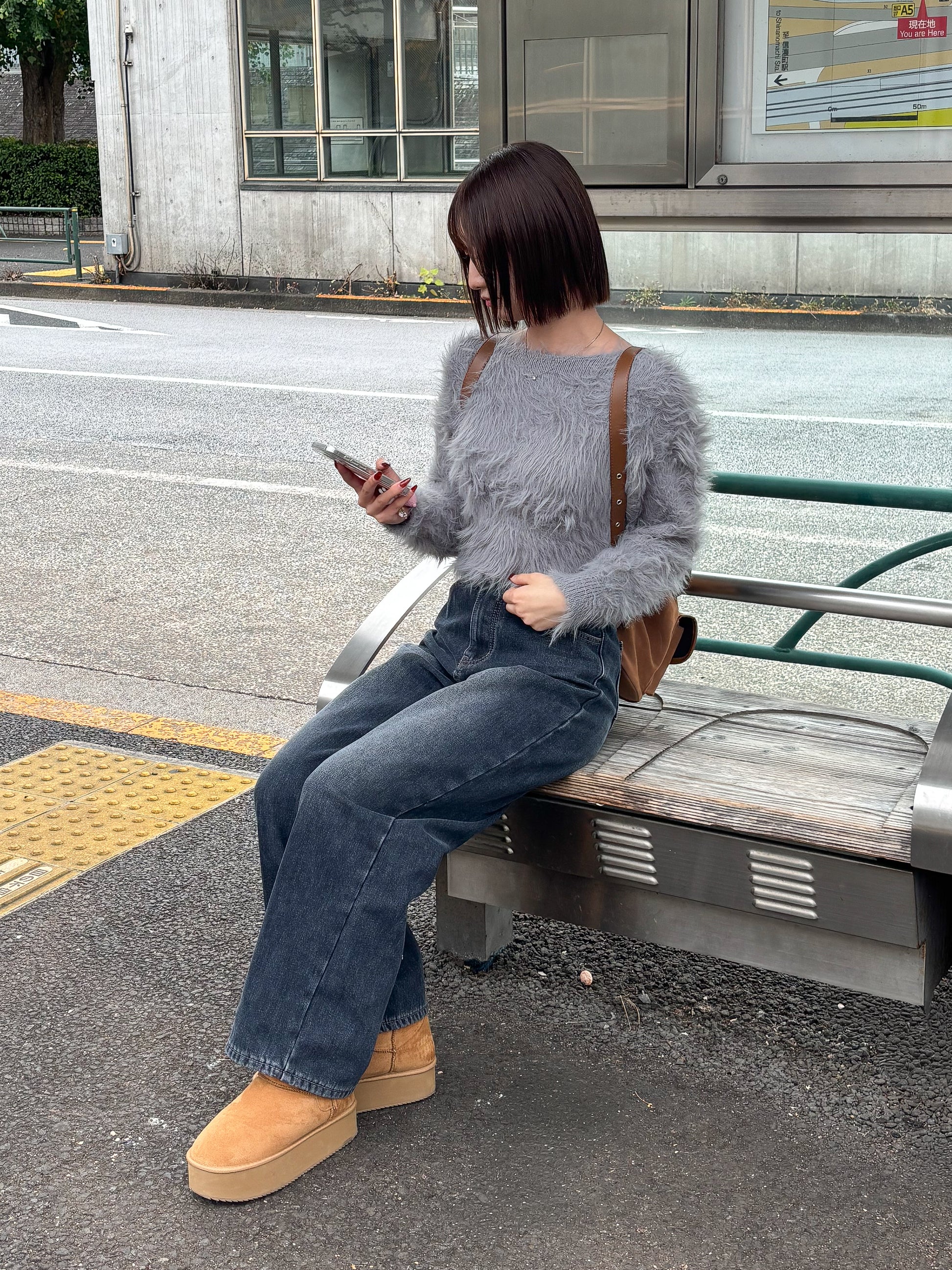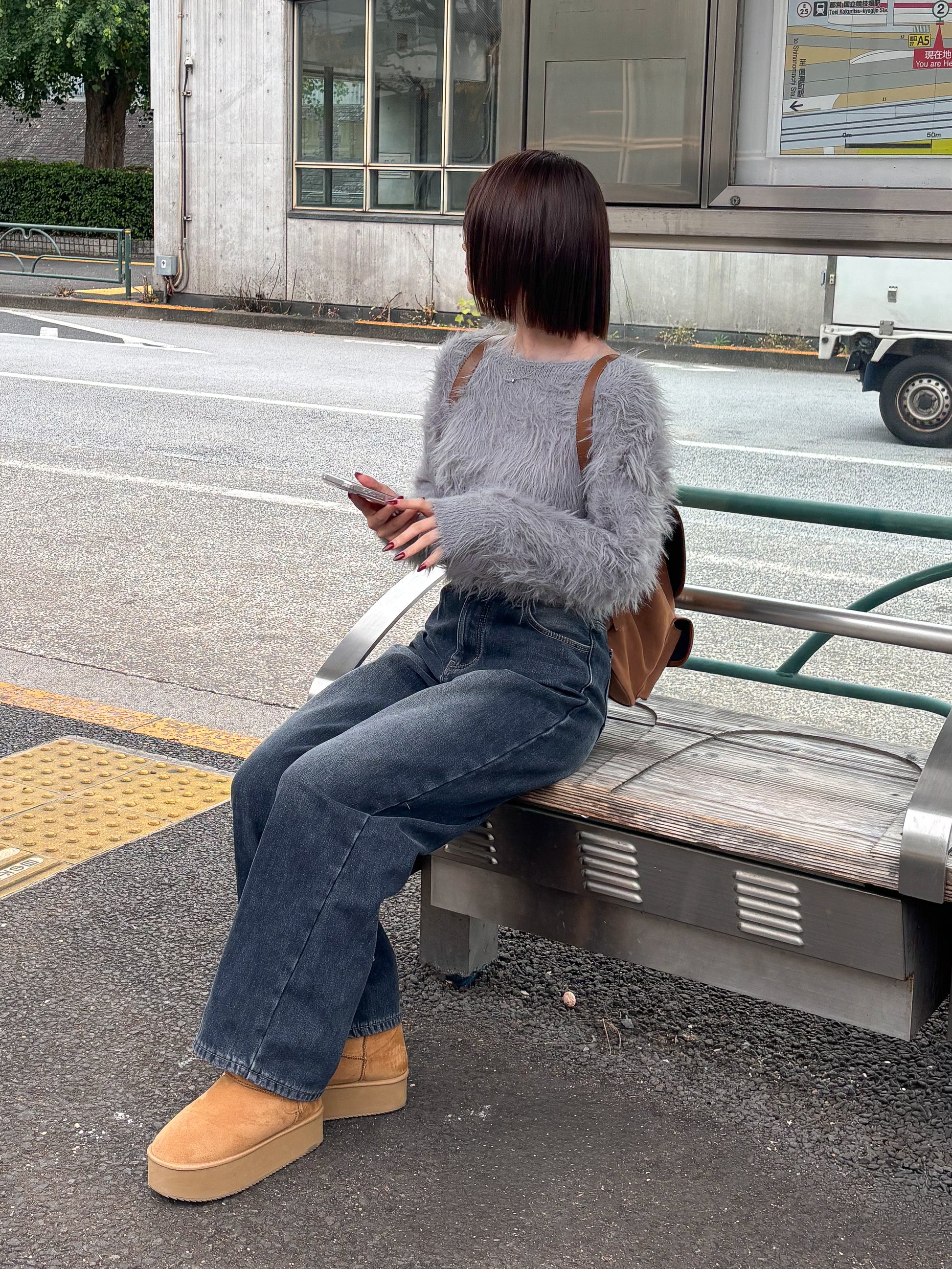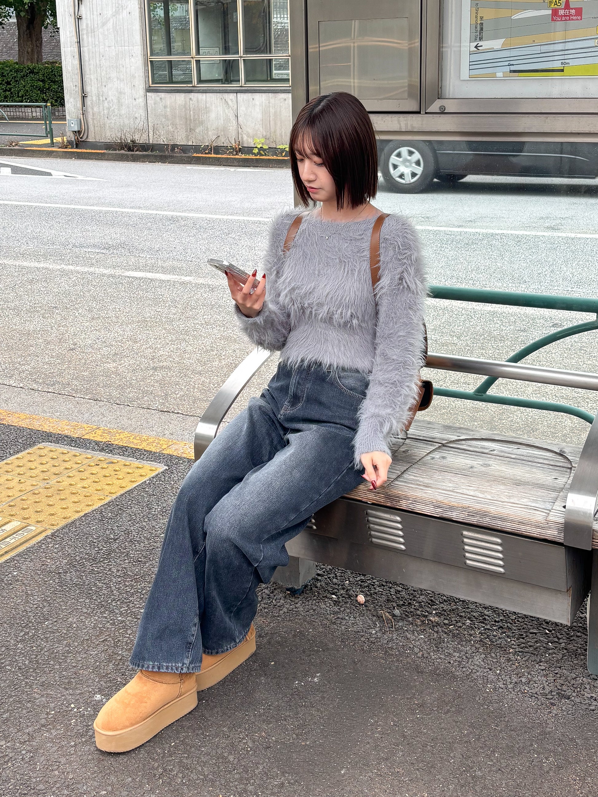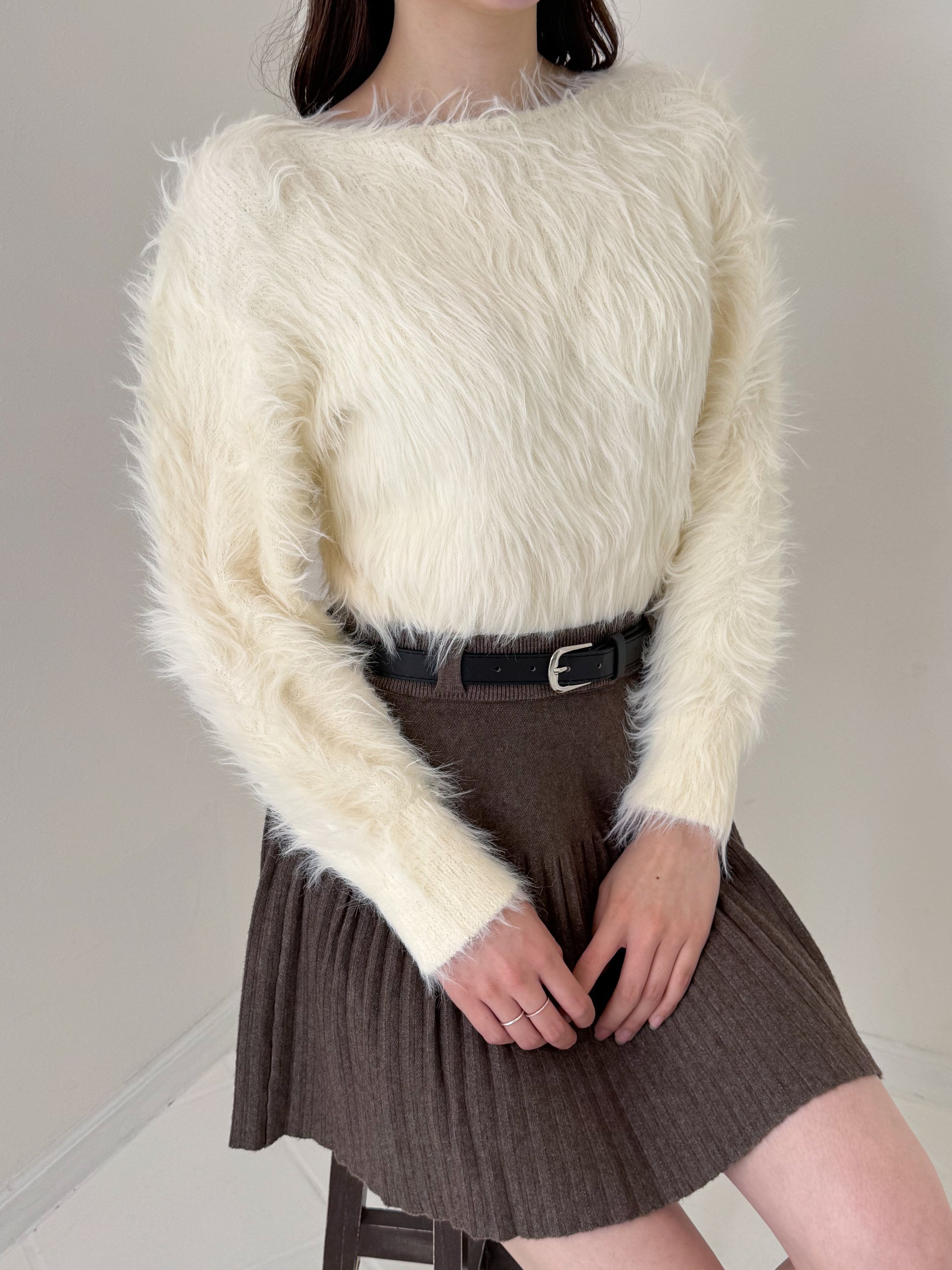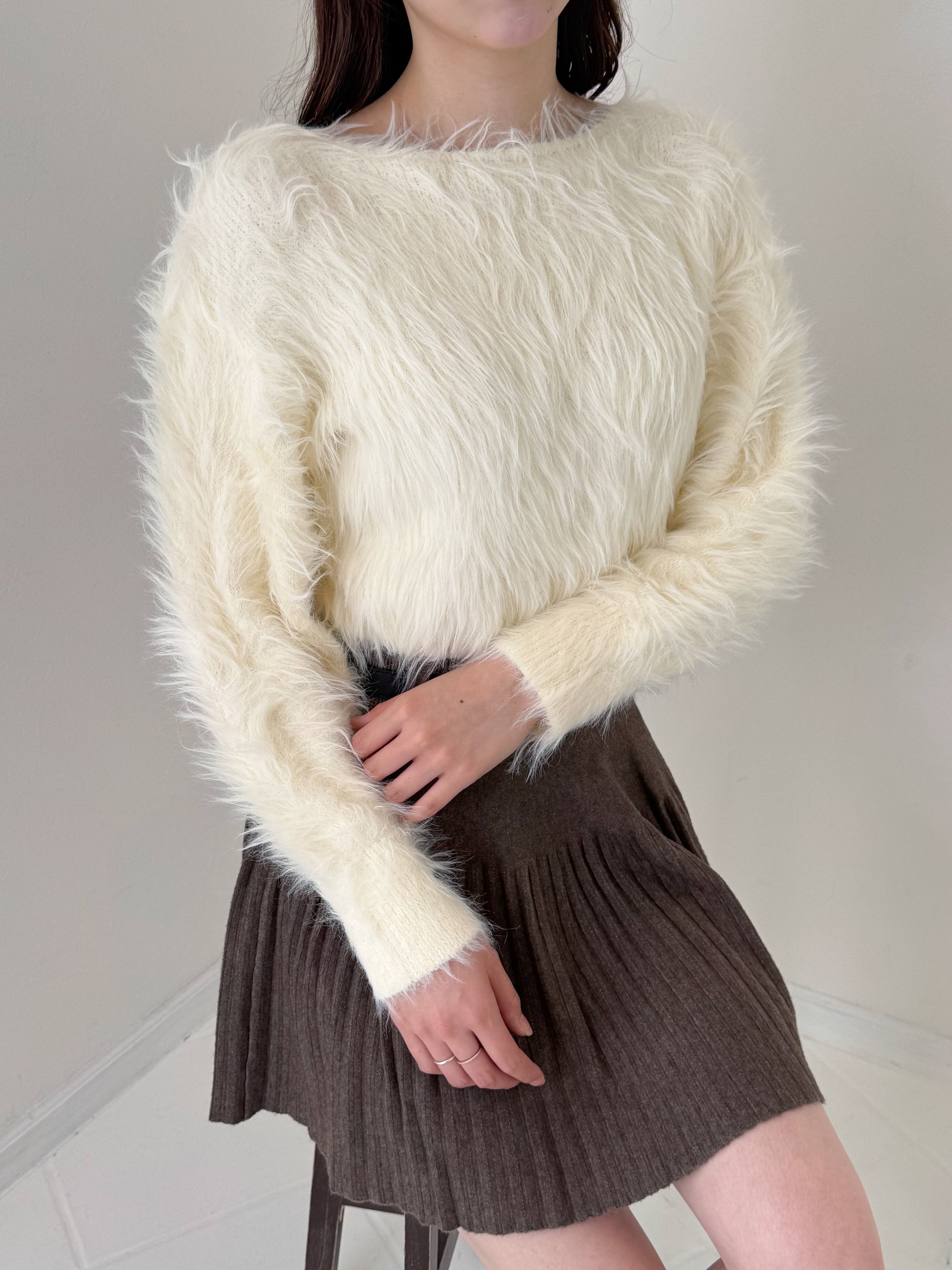毛足の長めのシャギーニットで