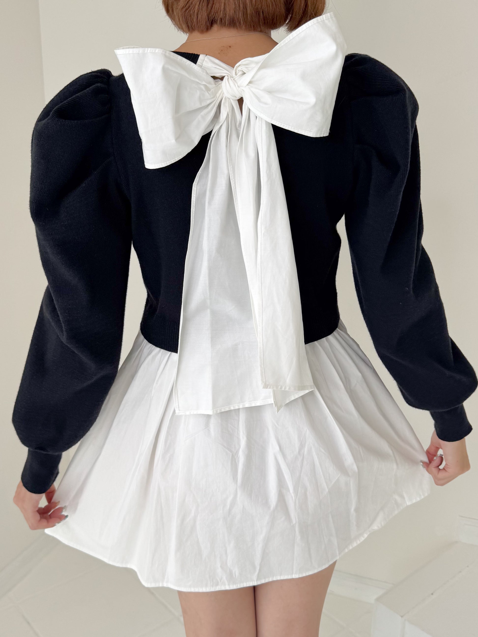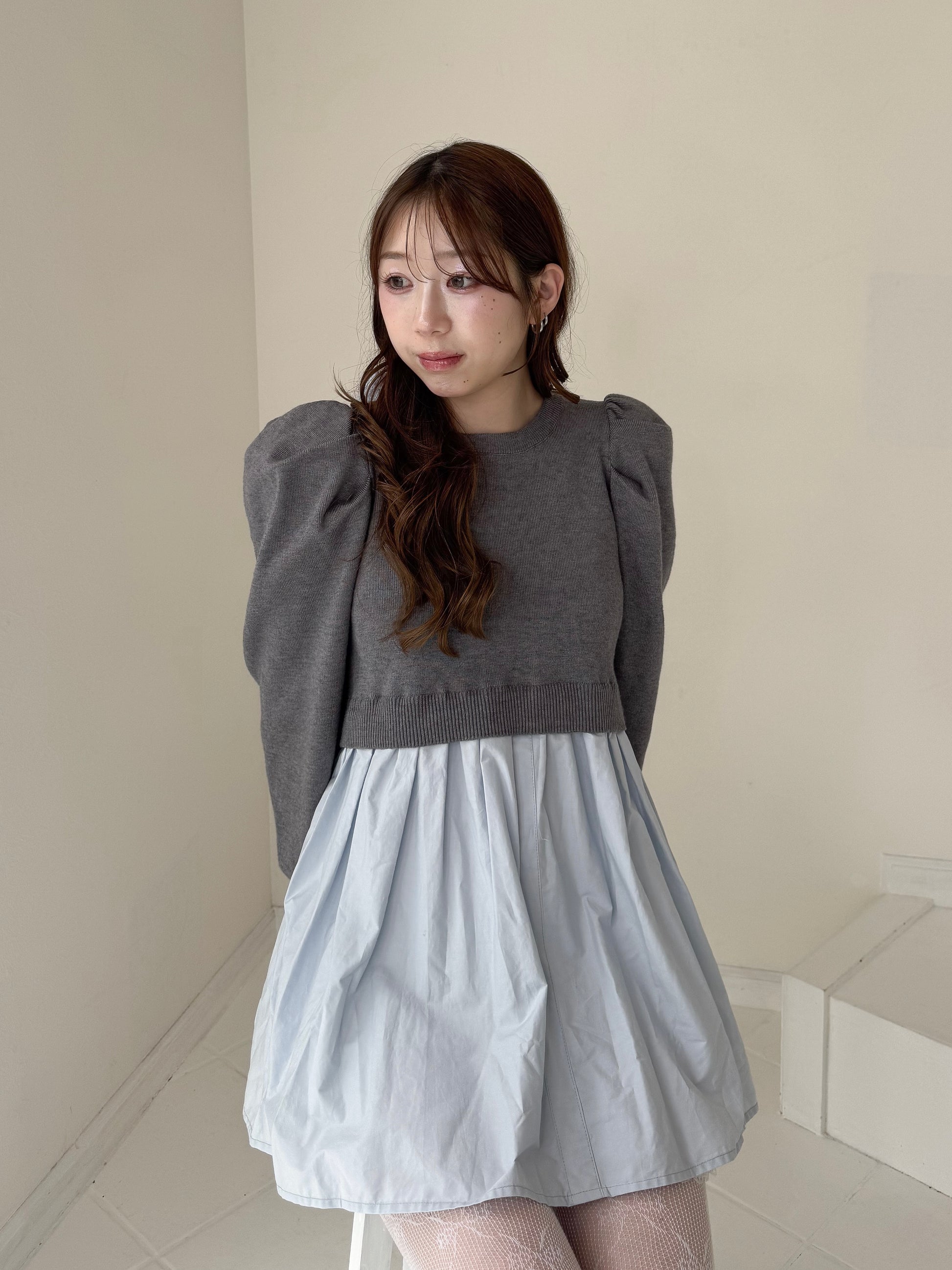 ニットとブラウスがドッキングしたデザインがお洒落で