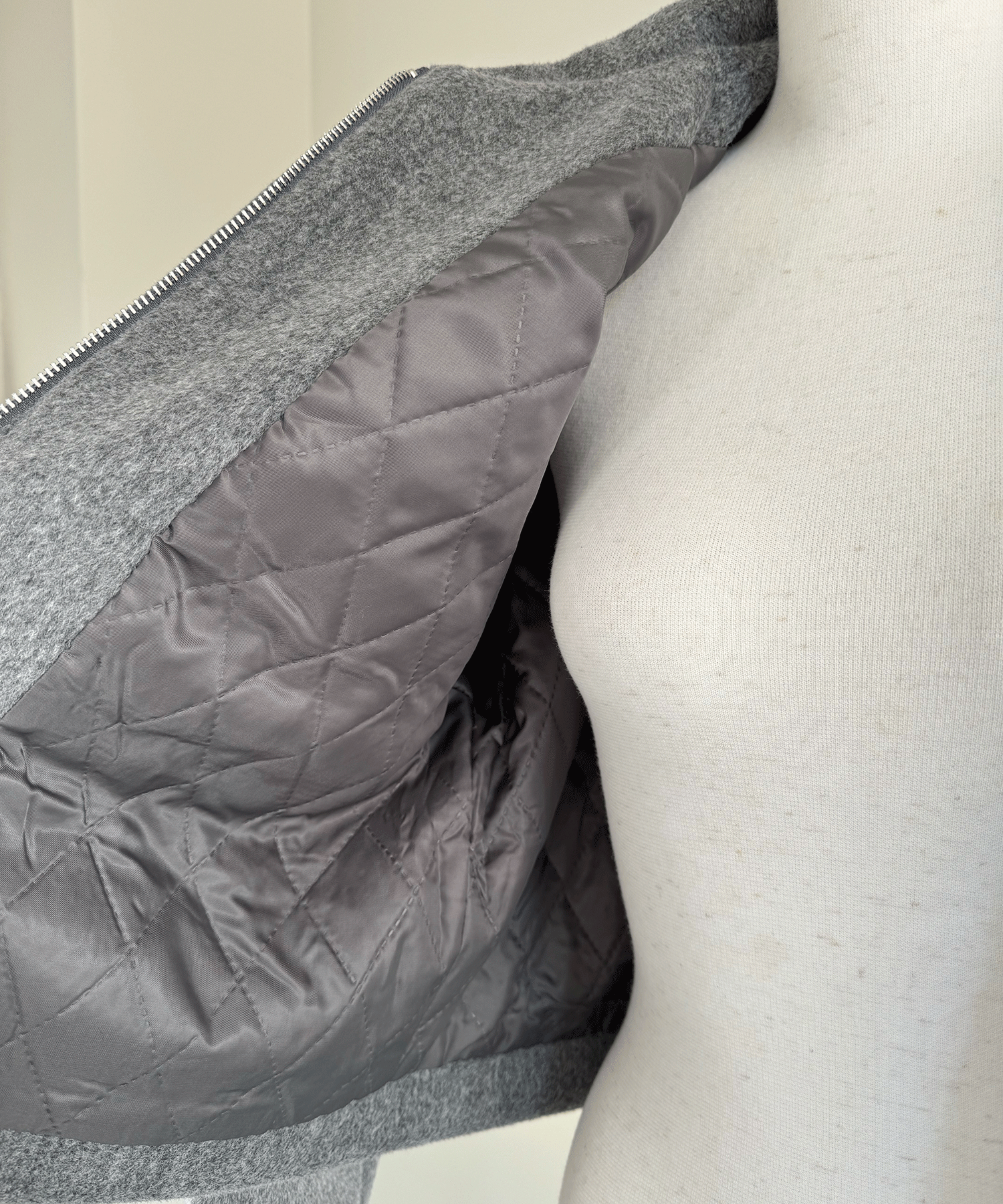 裏地がキルティングでブラッシュド生地の柔らかい新作ブルゾン。