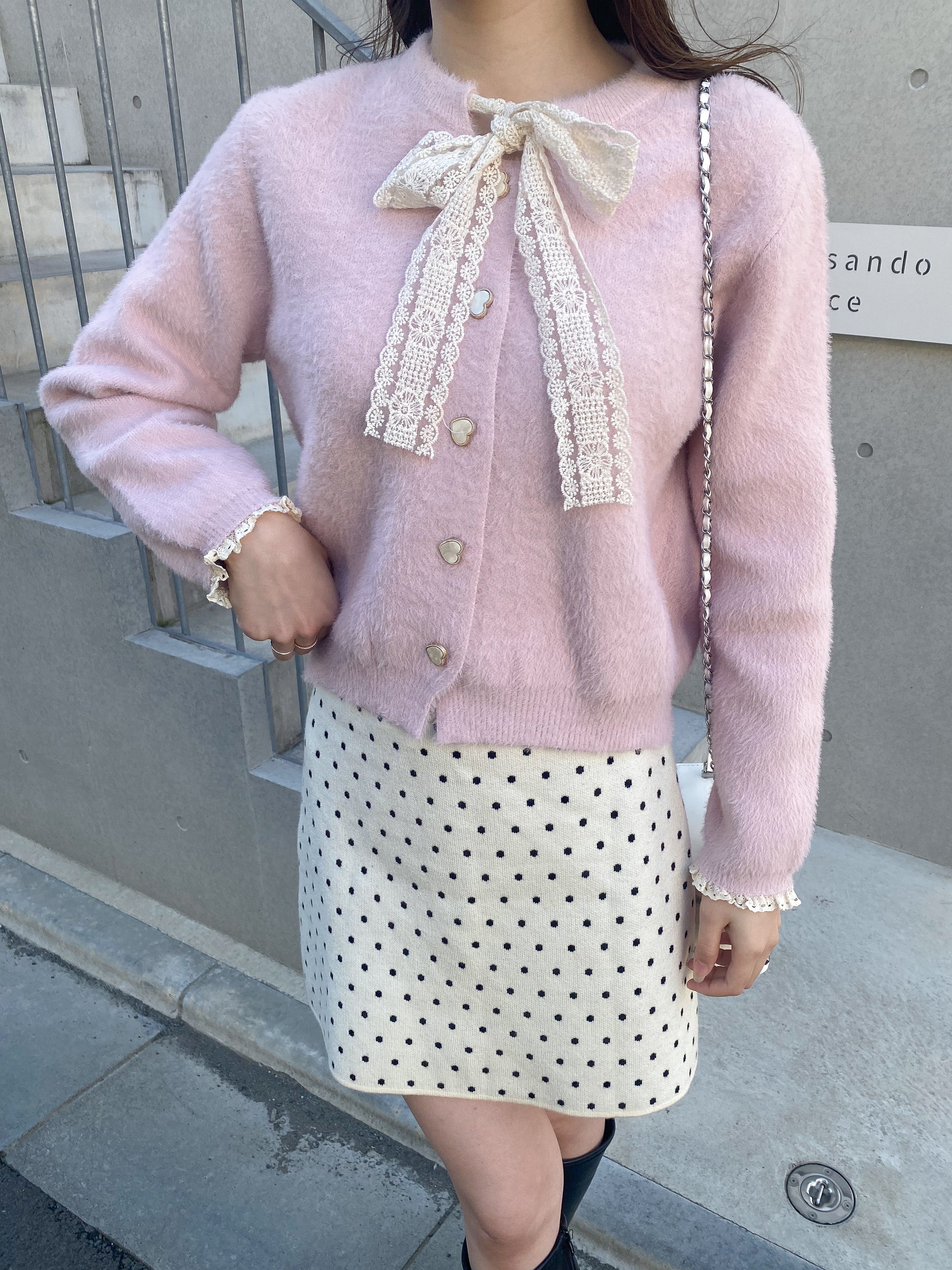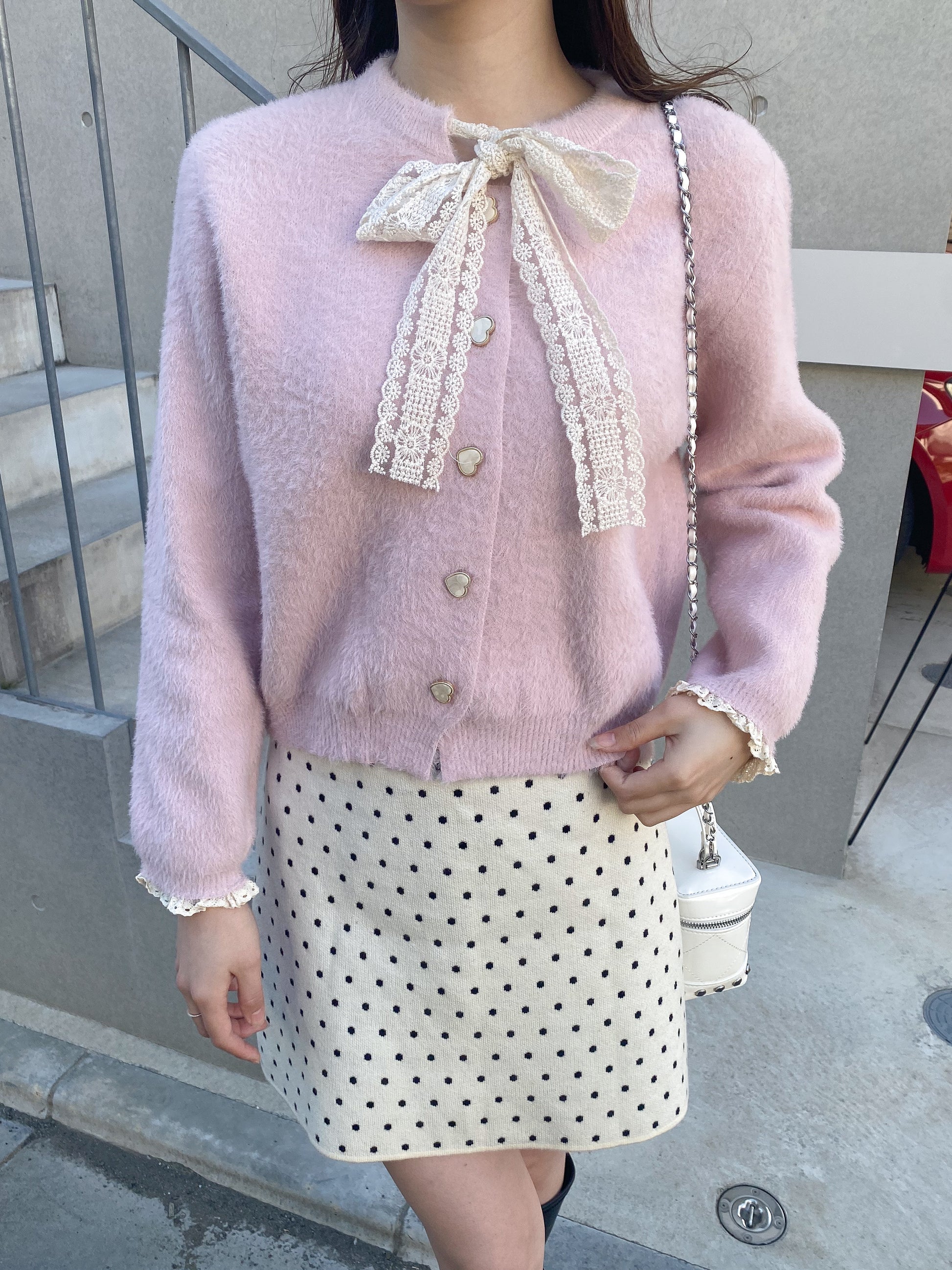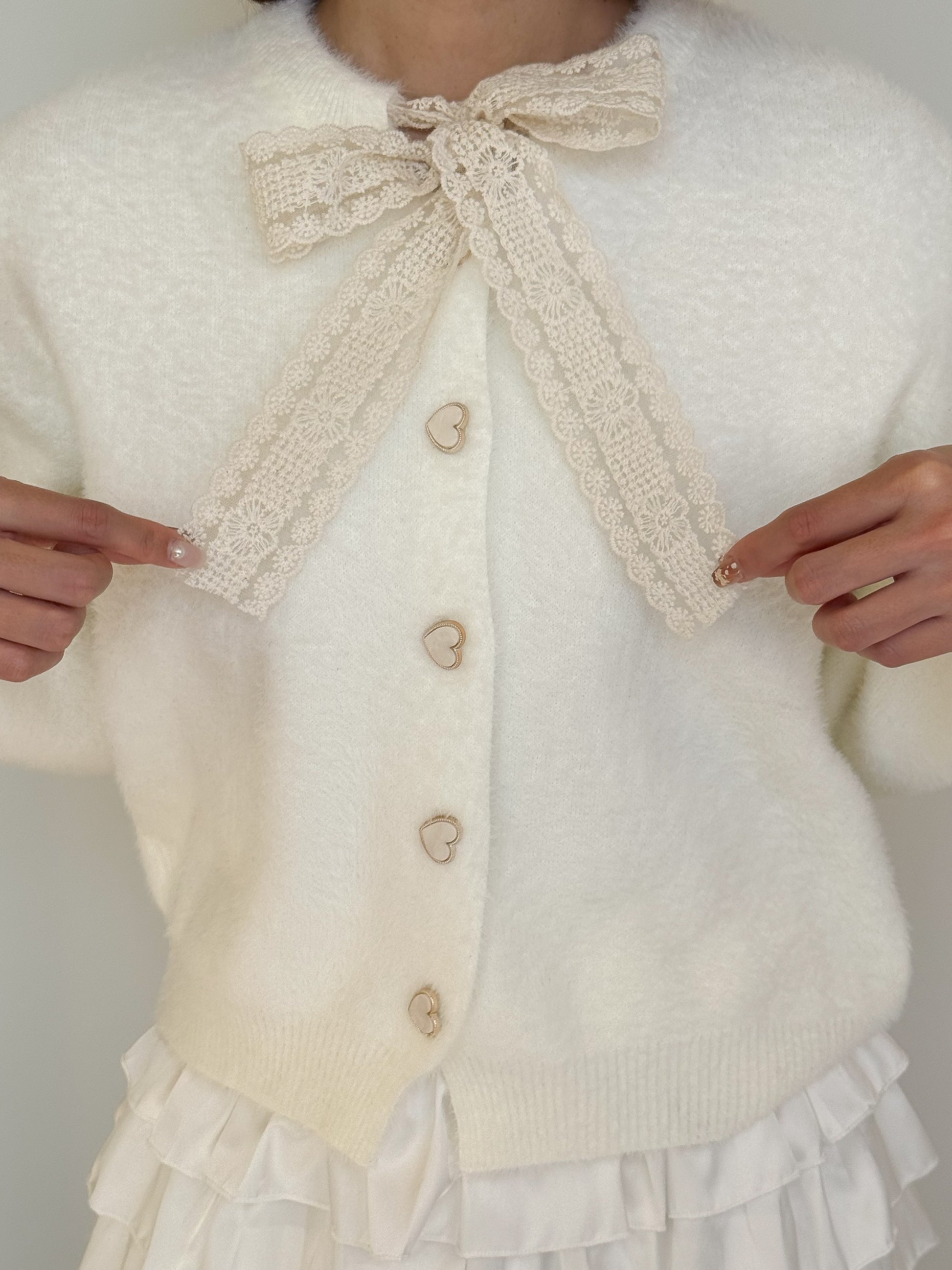 【Official限定価格】ボウタイハートボタンシャギーニット