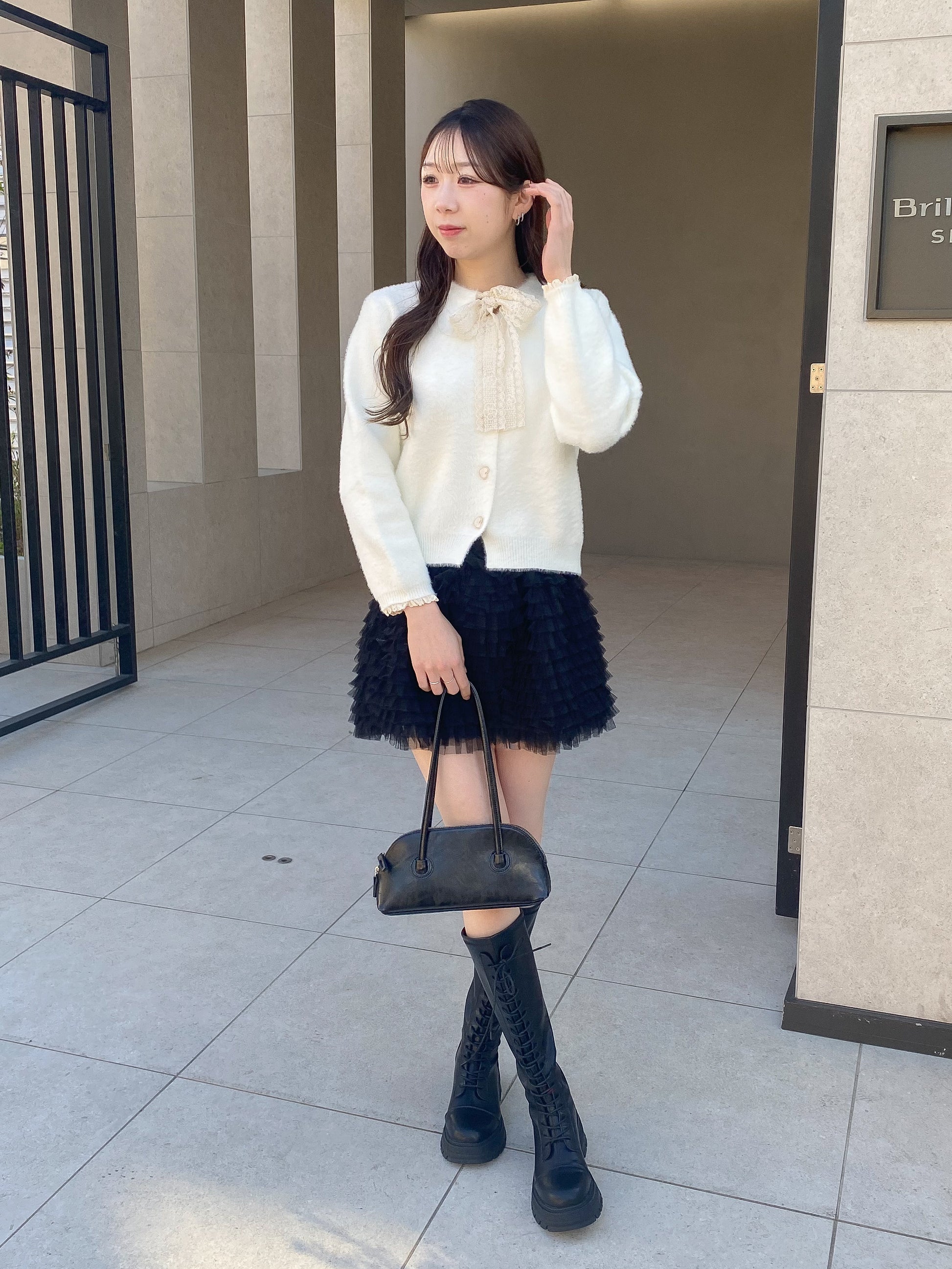 さらにボウタイレース付きでよりガーリーな雰囲気に。