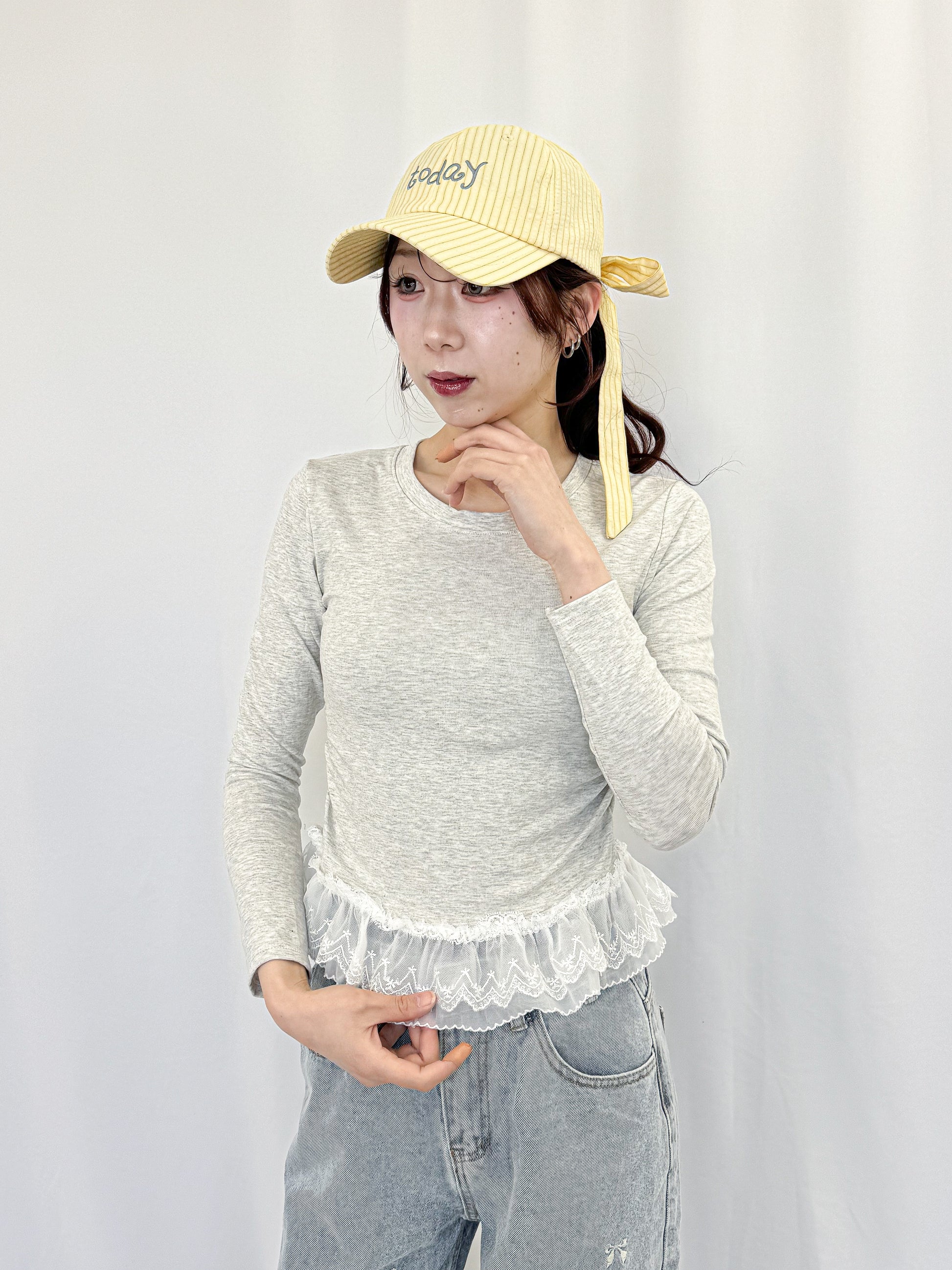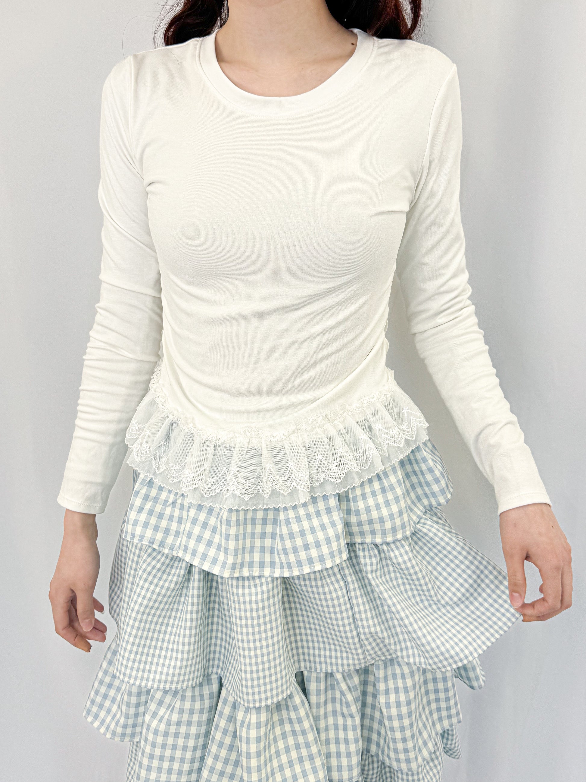 ウエストのフリル×レースが可愛いロンT。