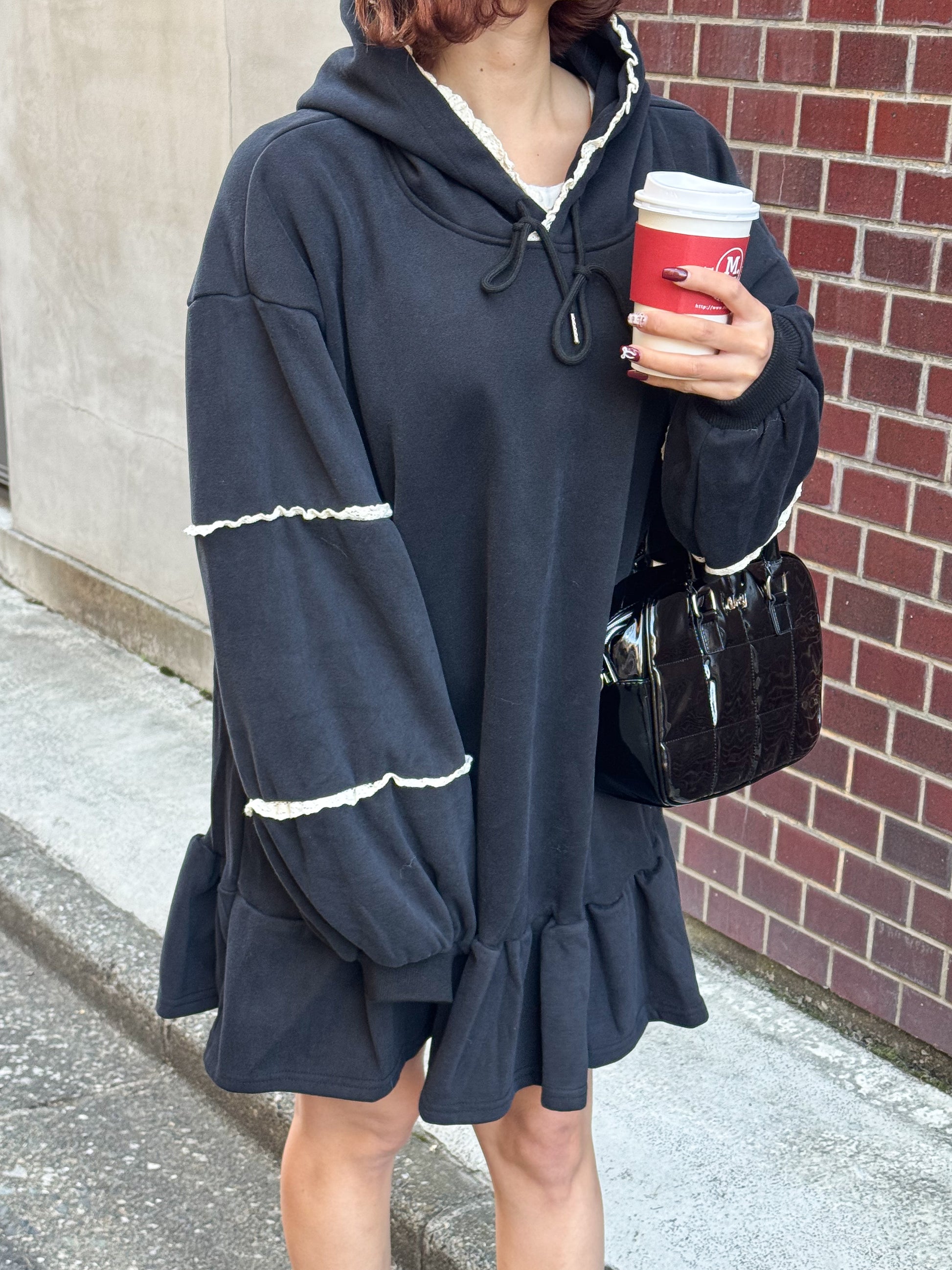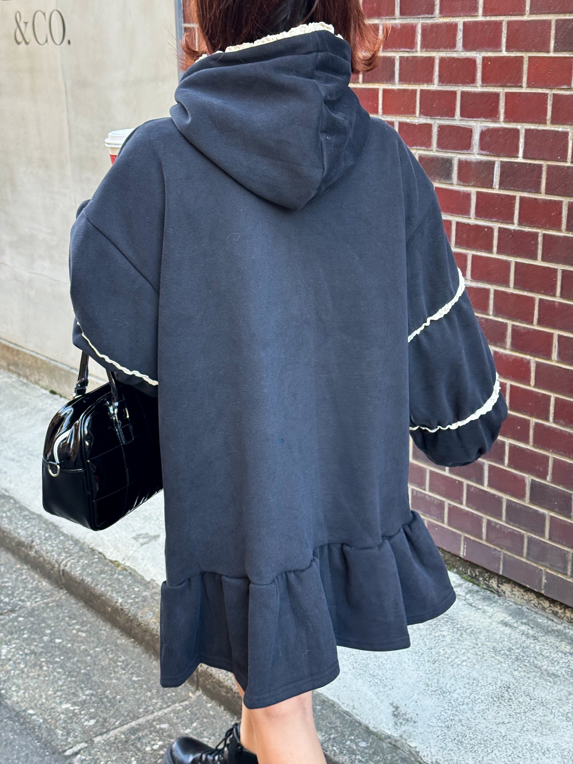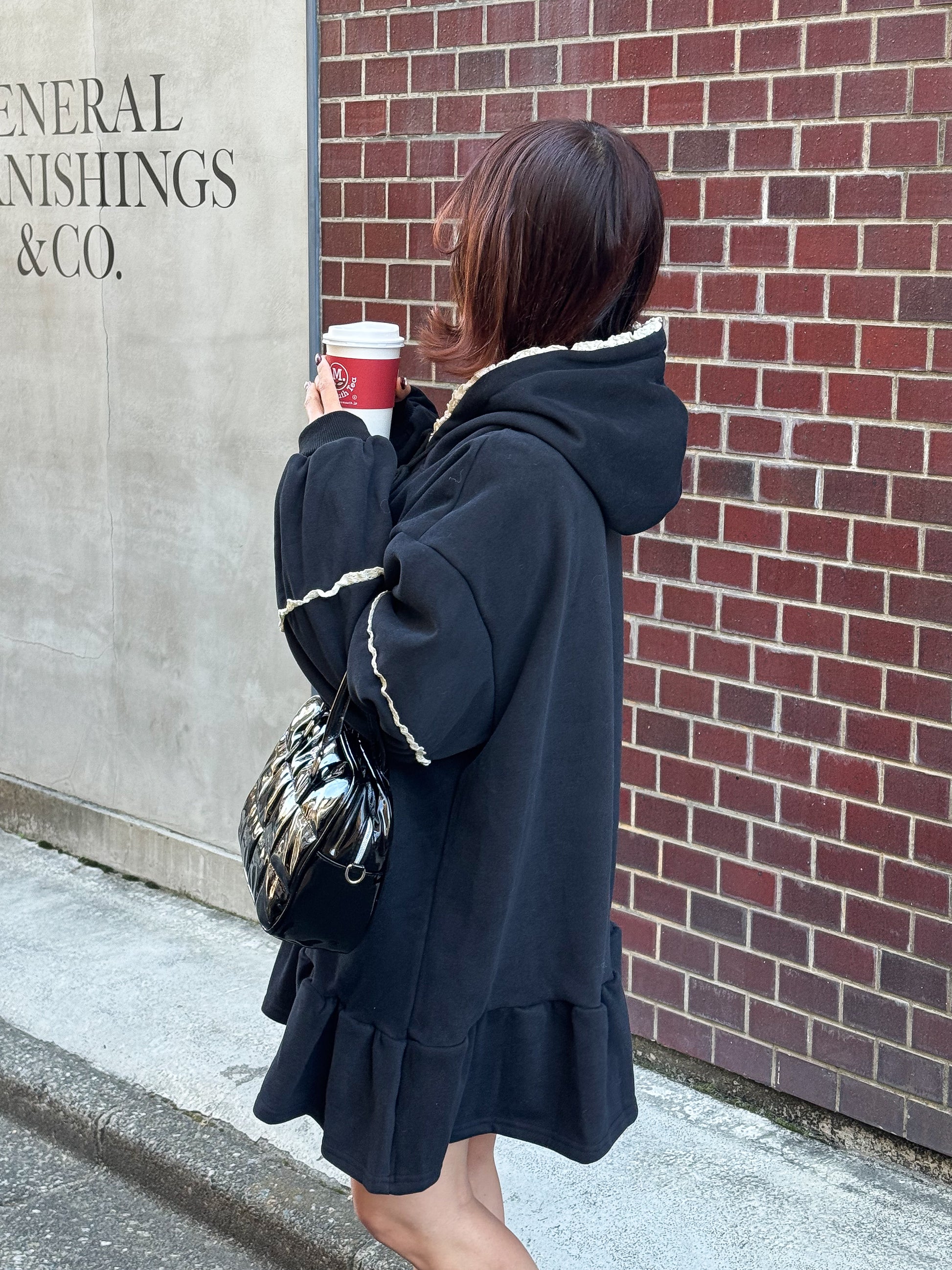 【Official限定価格】裏起毛フリルスエットパーカーワンピ