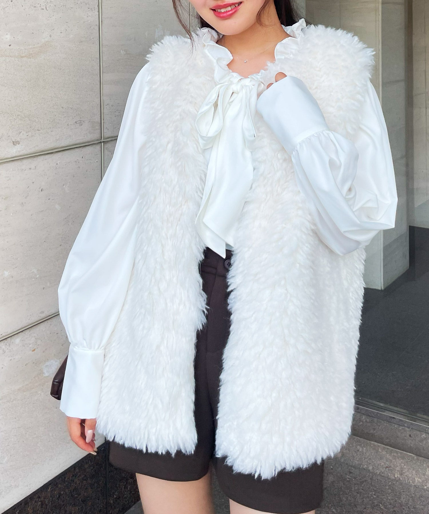 もこもこ感がかわいいプードルフェイクファーベスト♡