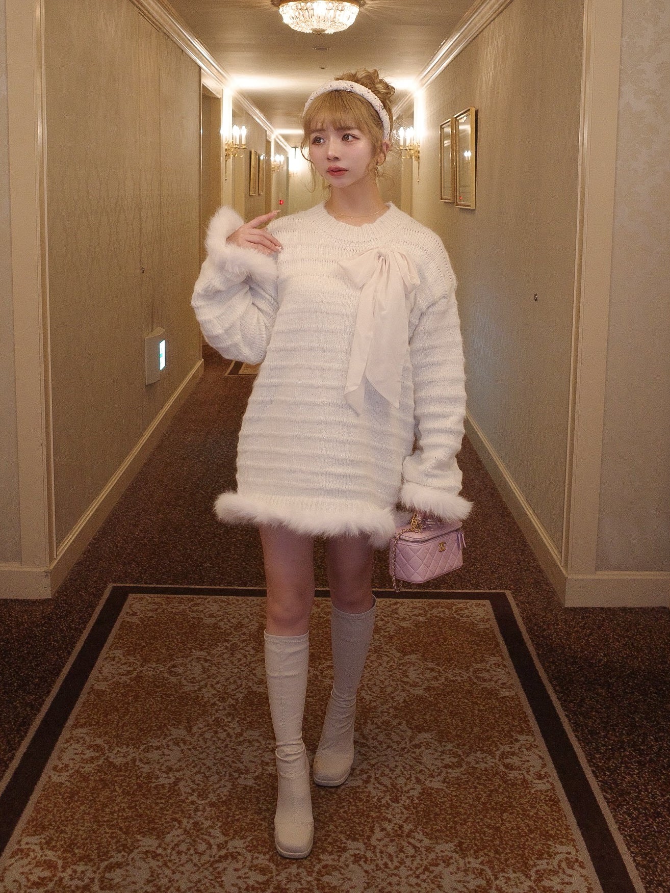 袖とスカートにファーが付いた