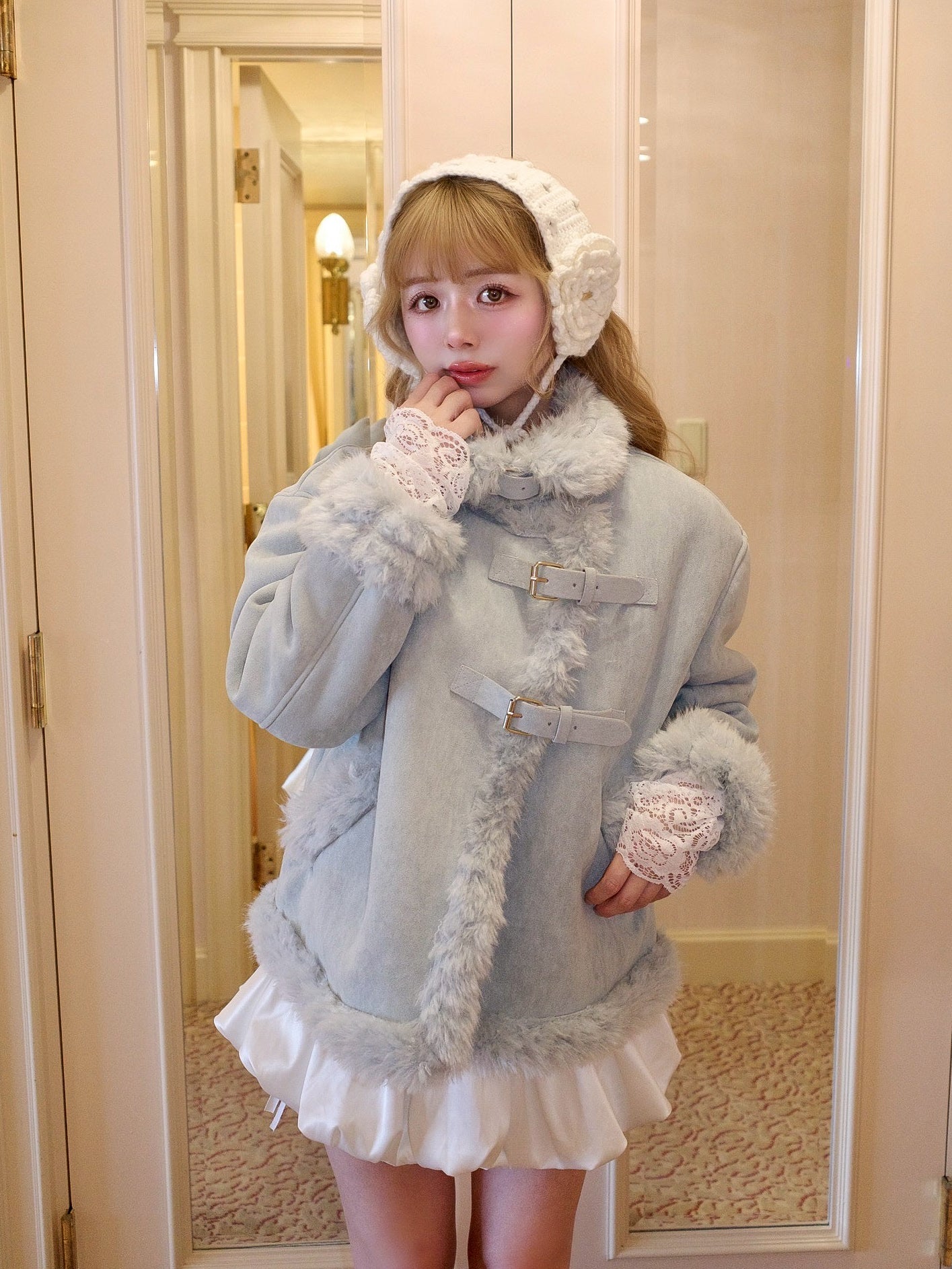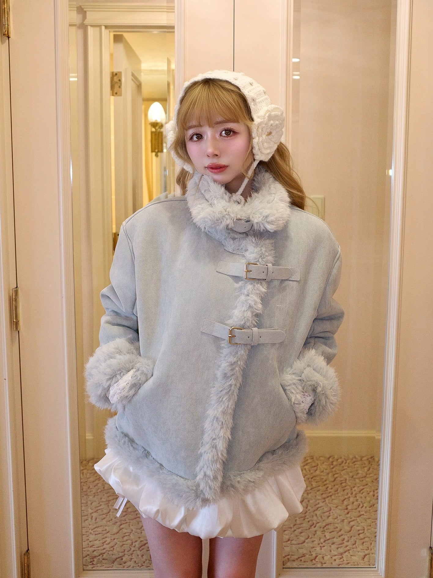 裏地が袖まで全てフェイクファーのデザインの