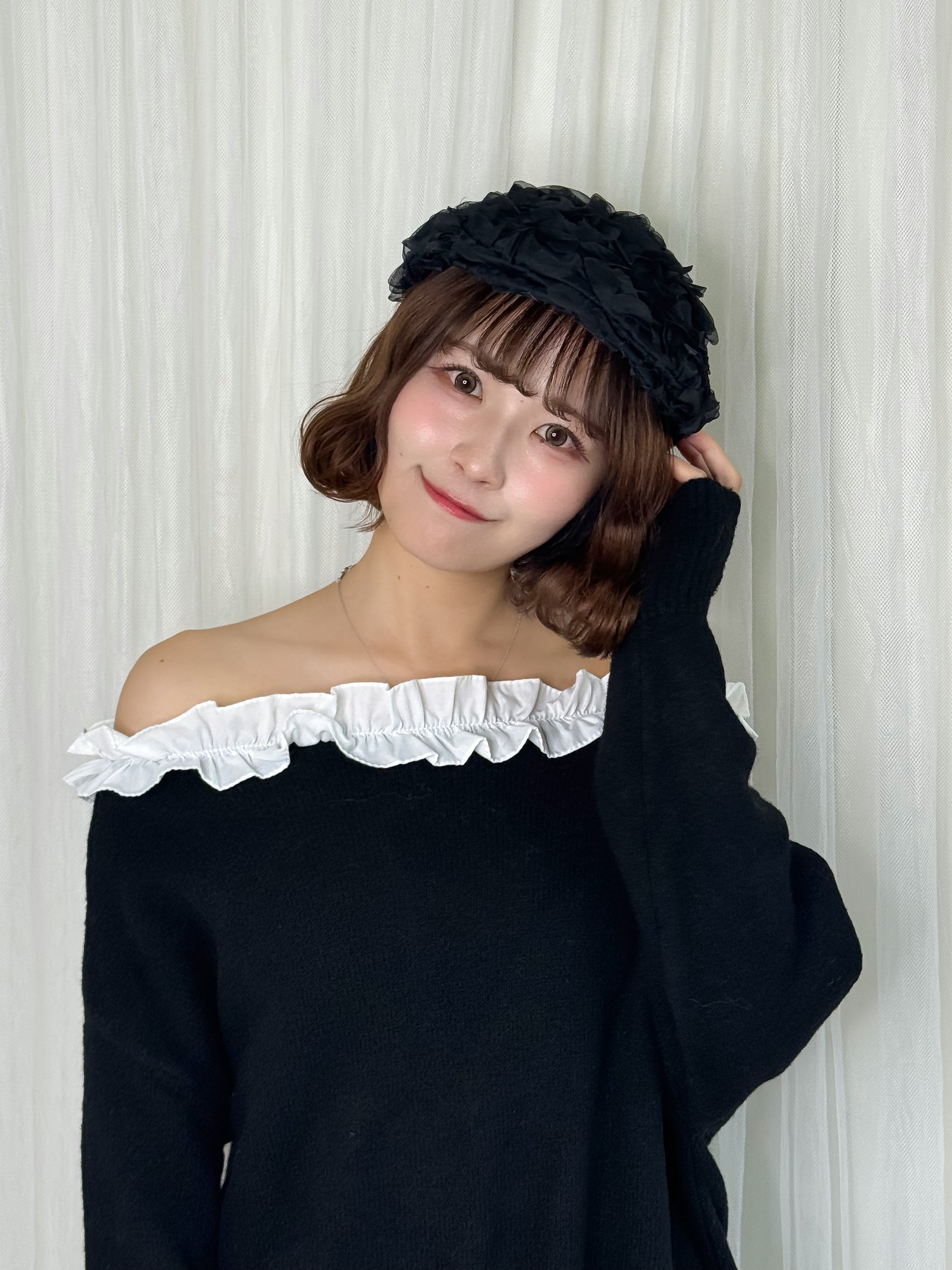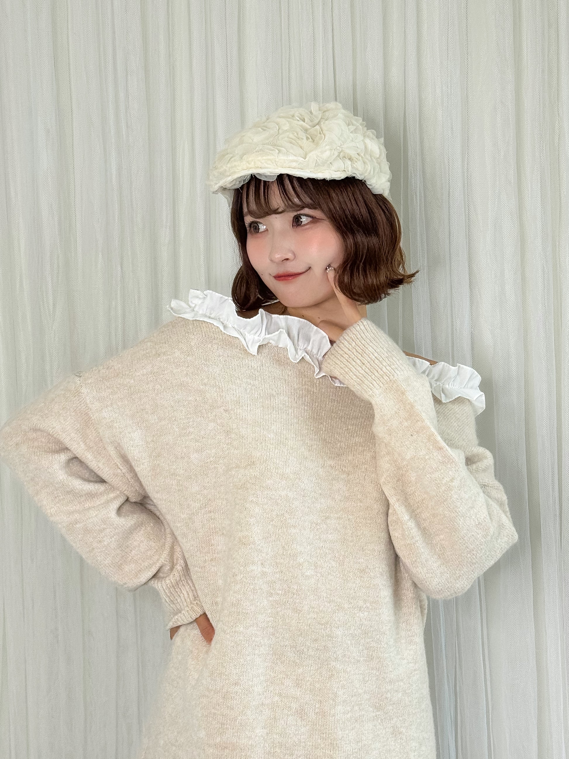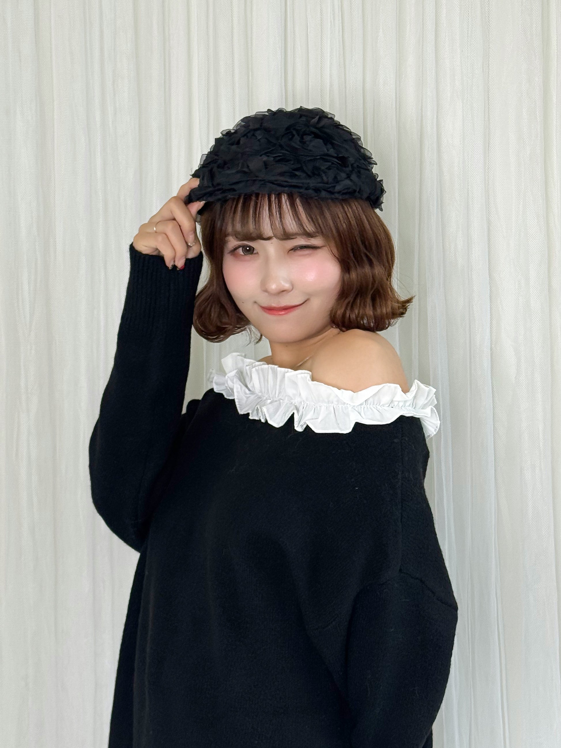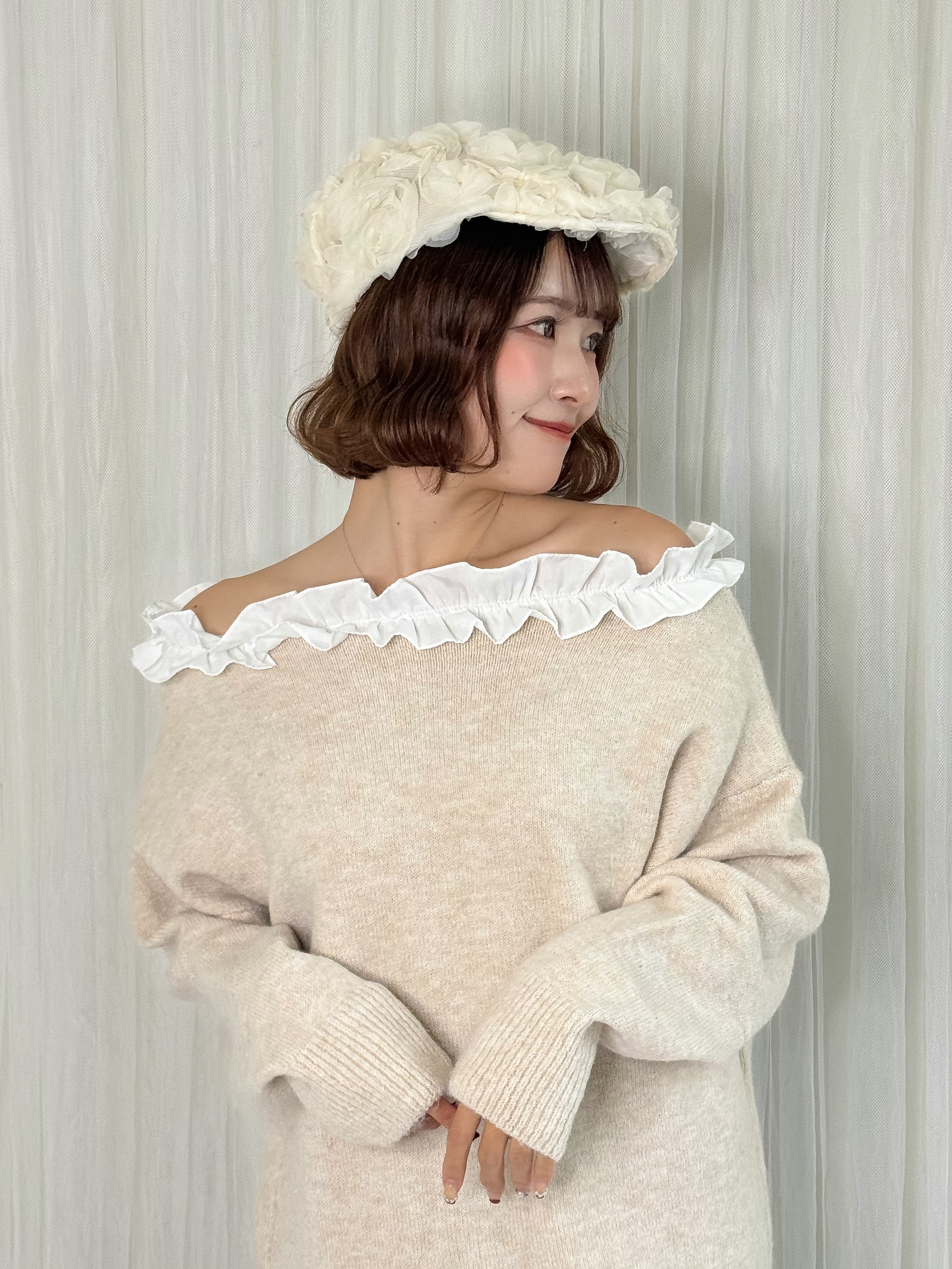 ローズレースで存在感があり、ハンチングデザインでいま旬のアイテム。
