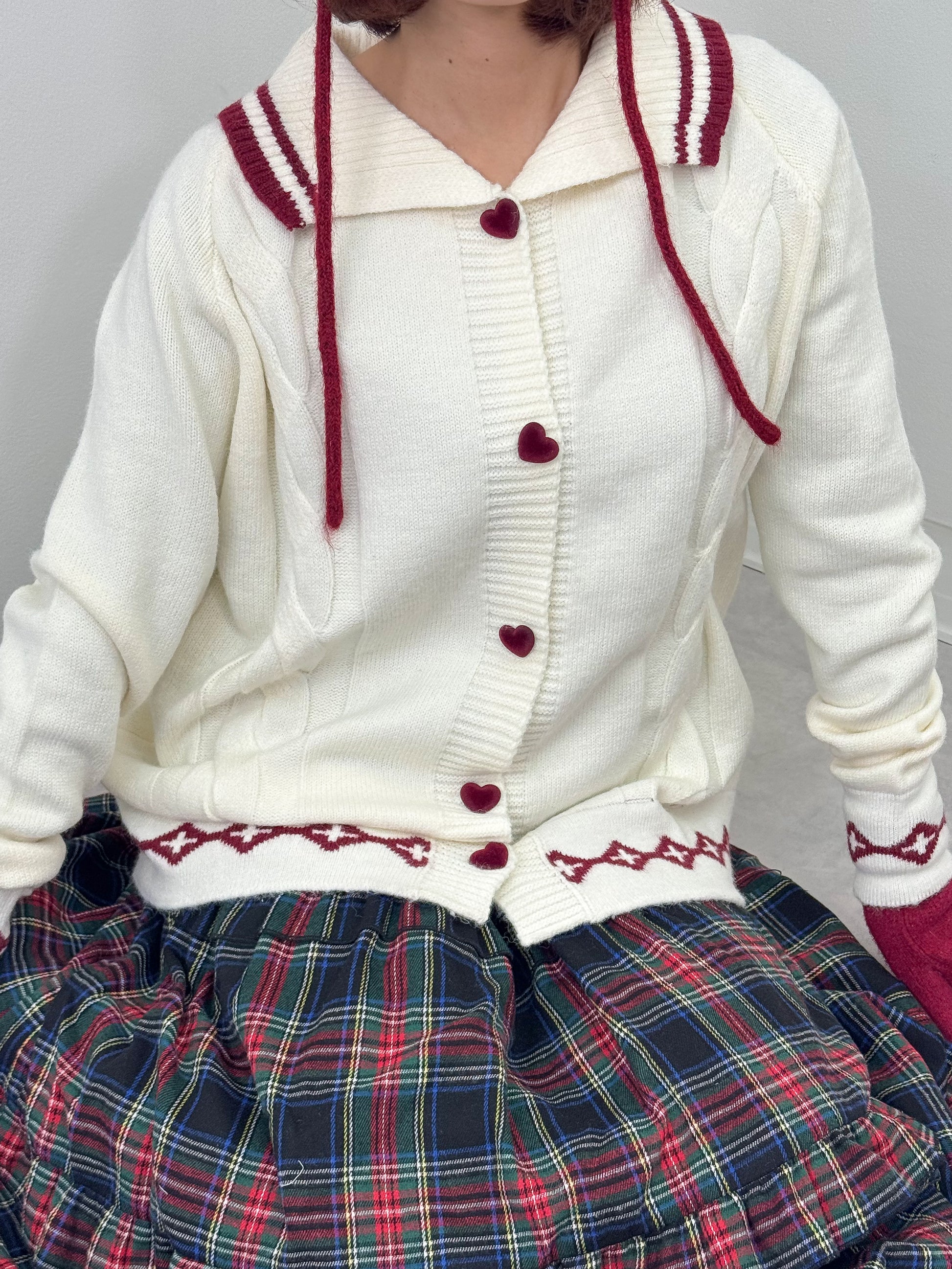 襟付きハートボタンオーバーサイズニット