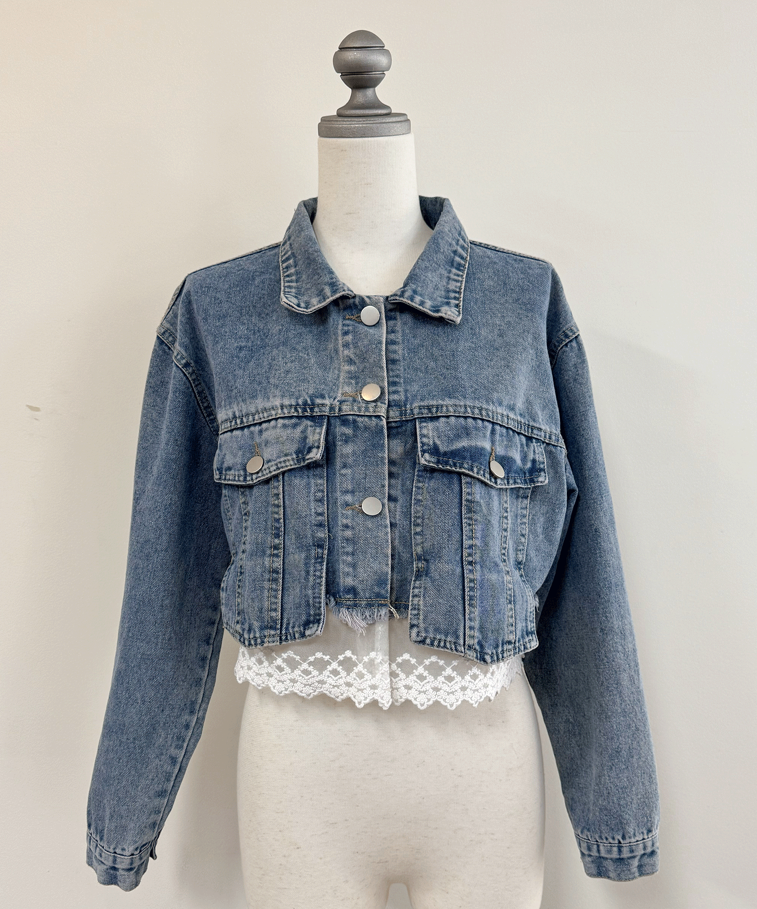 ●レース付きショートデニムジャケット